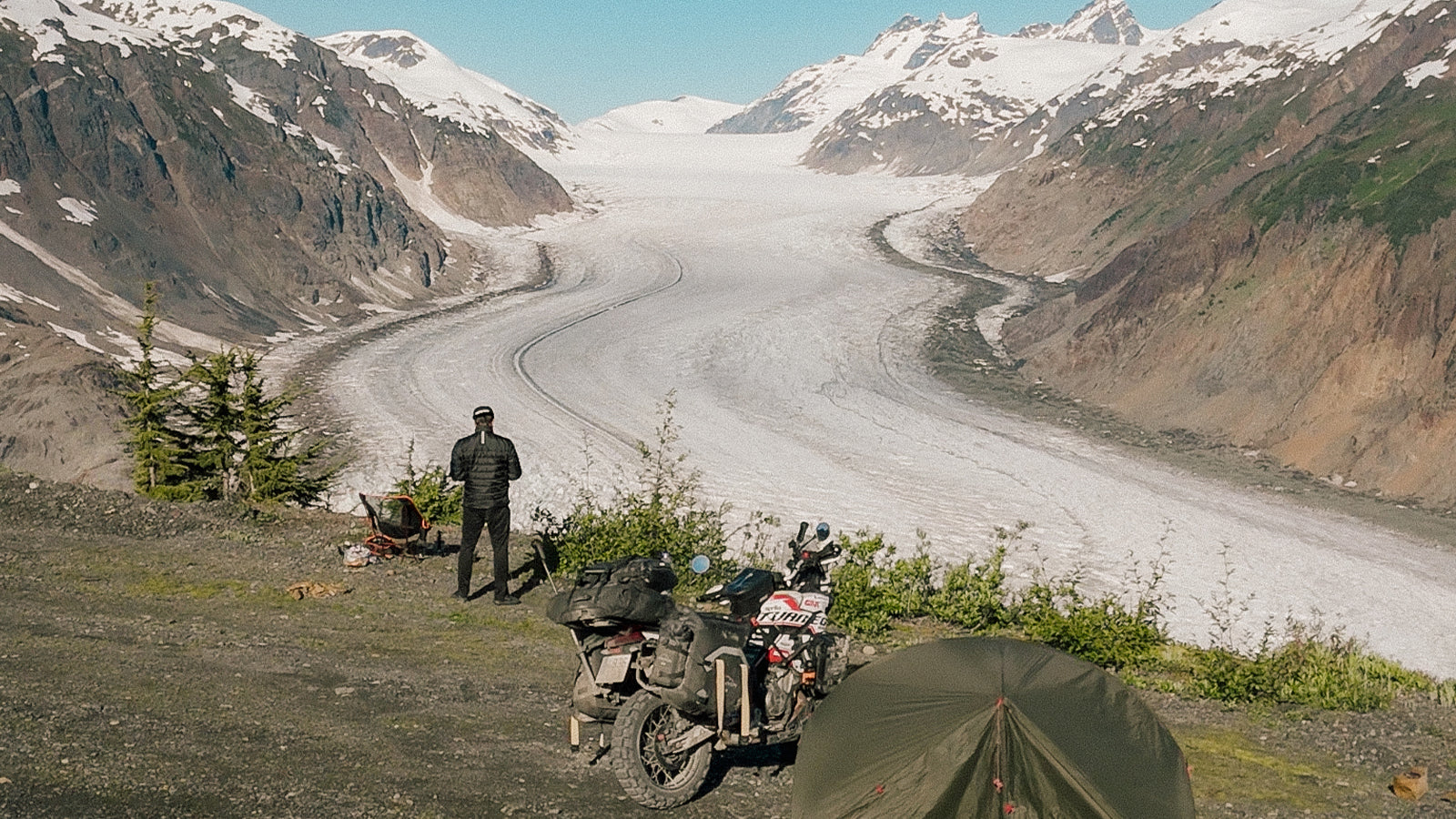 „Ich beschloss, mein Motorrad nach Kanada zu verschiffen, um Amerika zu durchqueren. Von der nördlichsten Spitze Alaskas – einer Stadt namens Deadhorse bis Puerto Williams in Chile, dem südlichsten Punkt Südamerikas, ja sogar der Welt “, erklärt er. „Ich kam auf diesem neuen Kontinent an und wusste, dass es Zeit war, mein Versprechen einzulösen: mein Vater musste mit mir mitkommen. Ich wollte, dass er die Erfahrung macht, mit dem Motorrad durch ein anderes Land zu reisen, und aus erster Hand sehen, wie glücklich mich die Entscheidung gemacht hat, zu der er mir geholfen hatte. Ich schlug ihm vor, mich ein paar Wochen später in Chicago zu treffen, damit wir gemeinsam die legendäre Route 66 befahren konnten.“