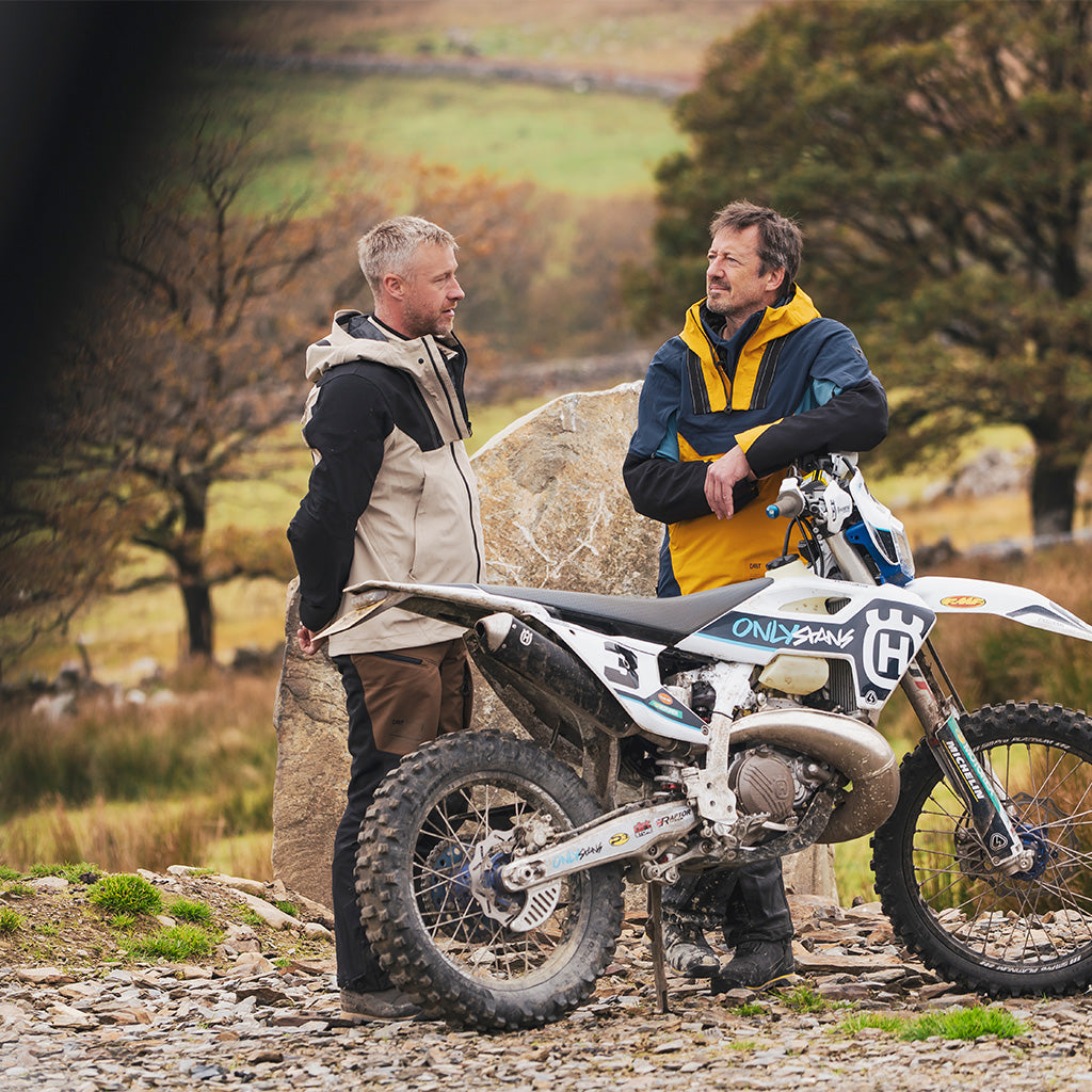 Als Motorräder für das Wochenende stehen dank OnlyStans Flotte Husqvarnas TE250 und 300 bereit. Paul konnte nicht anders, als seine alte GasGas mitzubringen. Was die Ausrüstung angeht, ist die Wahl einfach: die REV'IT! DIRT Series. Modular und in Schichten konzipiert für maximale Anpassungsfähigkeit. Ideal für unbekanntes Gelände, ideal für wechselnde Wetterbedingungen. Kurz gesagt, ideal für das, was kommen soll.