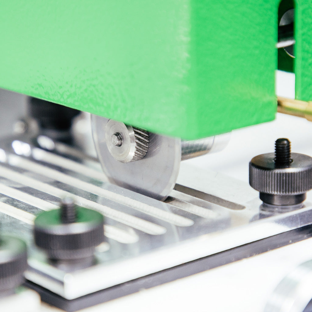 Um die Schnittfestigkeit unserer Handschuhe zu testen, legen wir das Material in eine Maschine, in der ein rotierendes, kreisförmiges Messer hin und her läuft, bis das Material zerschnitten wird. Die Anzahl der Umdrehungen der Klinge gibt Aufschluss über die Schnittfestigkeit der Handschuhe.
