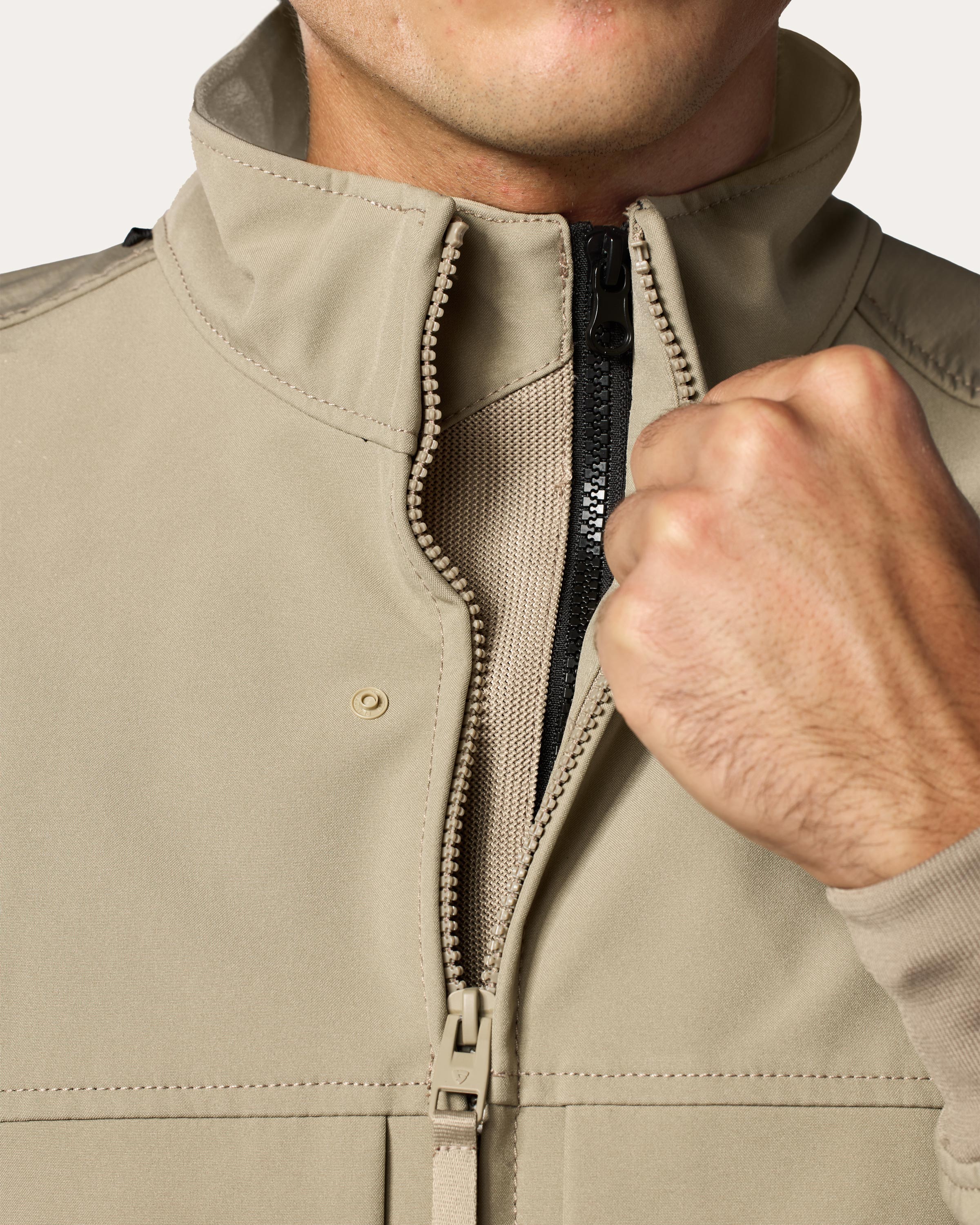 Die REV’IT! WindBarrier® Membran wird zwischen zwei verschiedene Stoffschichten laminiert: eine elastische Schicht außen und eine weiche Fleece-Schicht innen. Diese Kombination blockt Wind ab und hilft, Wasser abzuweisen. Wind und Regen zu stoppen, heißt Unterkühlung zu verhindern und erhöht das Komfort- und Wärmeniveau des Fahrers.