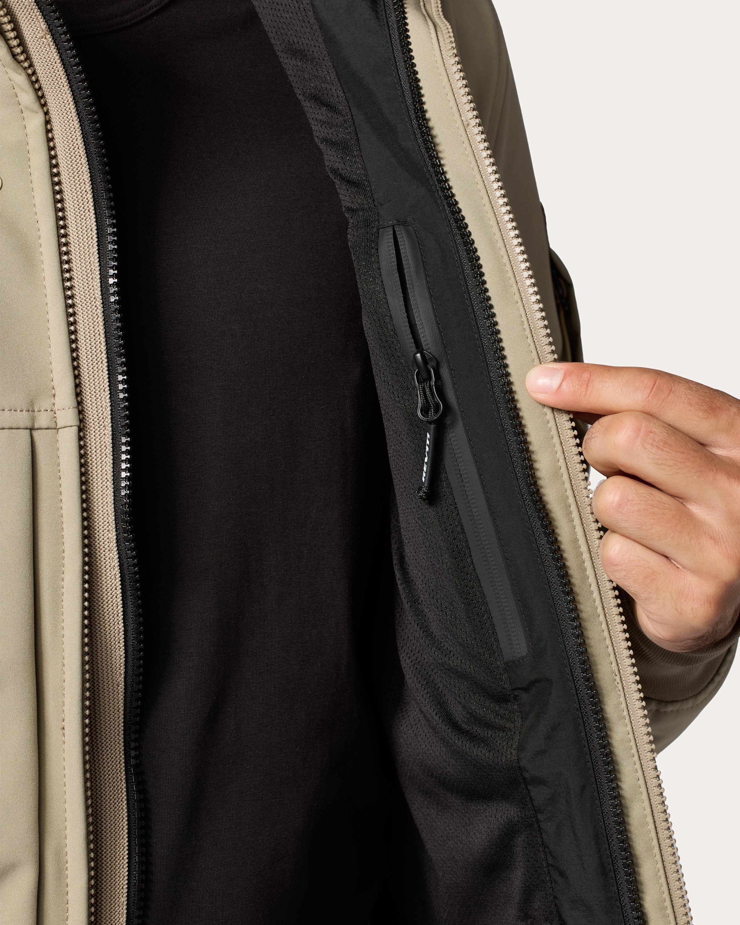 Mit mehr Taschenvolumen als vergleichbare modische Motorradjacken im Casual-Stil und einem belüfteten Windfänger hinter dem Hauptreißverschluss sieht die Atwater-Jacke im Windblocker-Stil nicht nur zweckmäßig aus, sie ist es auch. Große Reißverschlusstaschen auf der Vorderseite und eine leicht zugängliche Tasche am Oberarm sorgen für zusätzliche Funktionalität und einen unverwechselbaren Stil. Ähnlich viel Wert wurde auf funktionale Details gelegt, wie die gerippten Strickbündchen, die eine flexible Passform für zusätzlichen Komfort bieten. Das Thema Stauraum findet sich auch im Inneren wieder: Eine große Innentasche im Futter und eine wasserdichte Tasche vorne sind leicht zugänglich – selbst wenn die Jacke vollständig geschlossen ist.