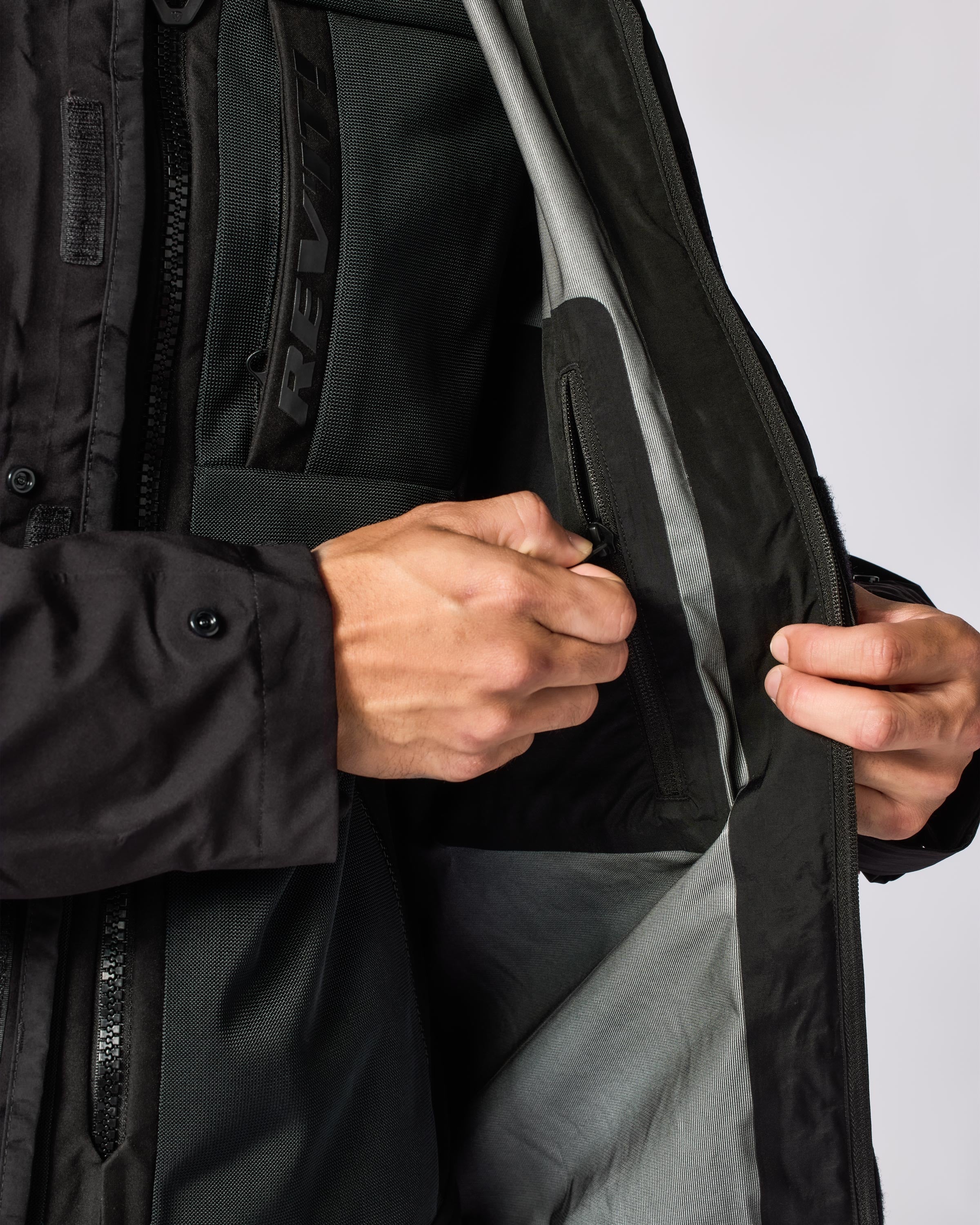 Als Dreilagen-Konstruktion verfügt die Membrane über beidseitig auflaminierte, schützende Trikotstoff-Schichten. So entsteht eine wasserdichte, atmungsaktive Membrane, die gleichzeitig sehr widerstandsfähig ist. Dieser Membran bietet außerdem höchste Flexibilität, weil sie aus dem Kleidungsstück entnommen werden kann: Drin lassen, wenn es das Wetter erfordert, oder herausnehmen, wenn maximale Belüftung gefragt ist.