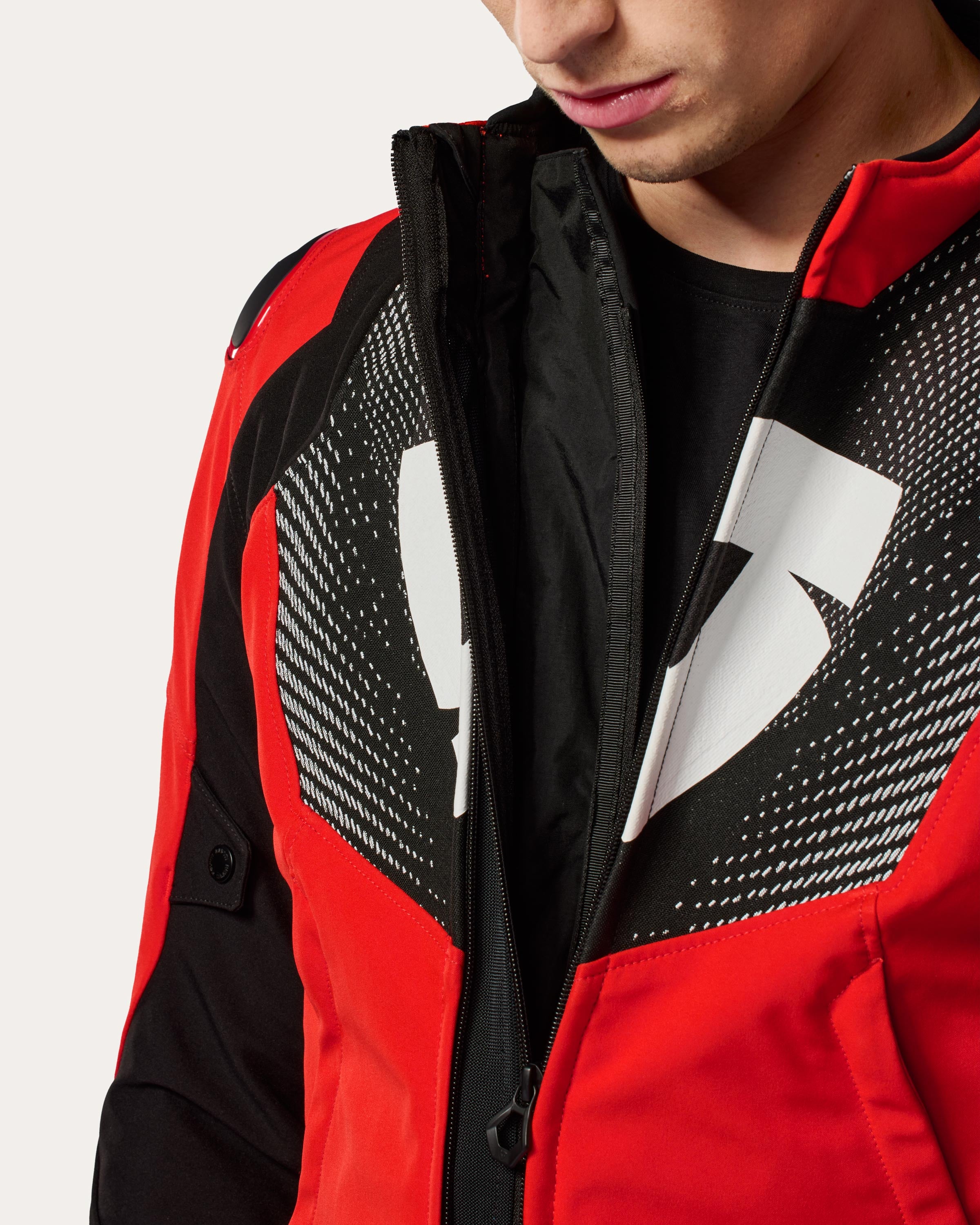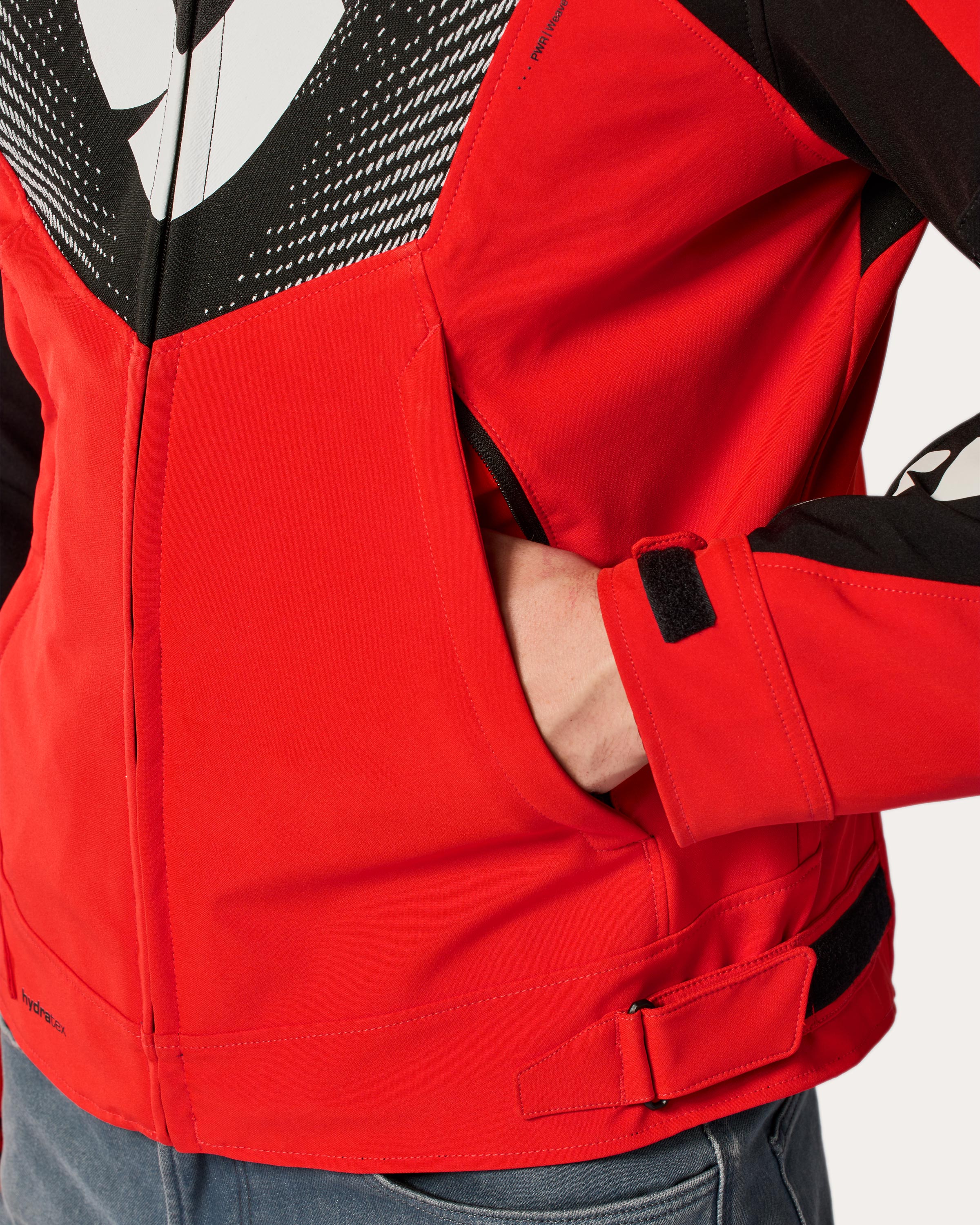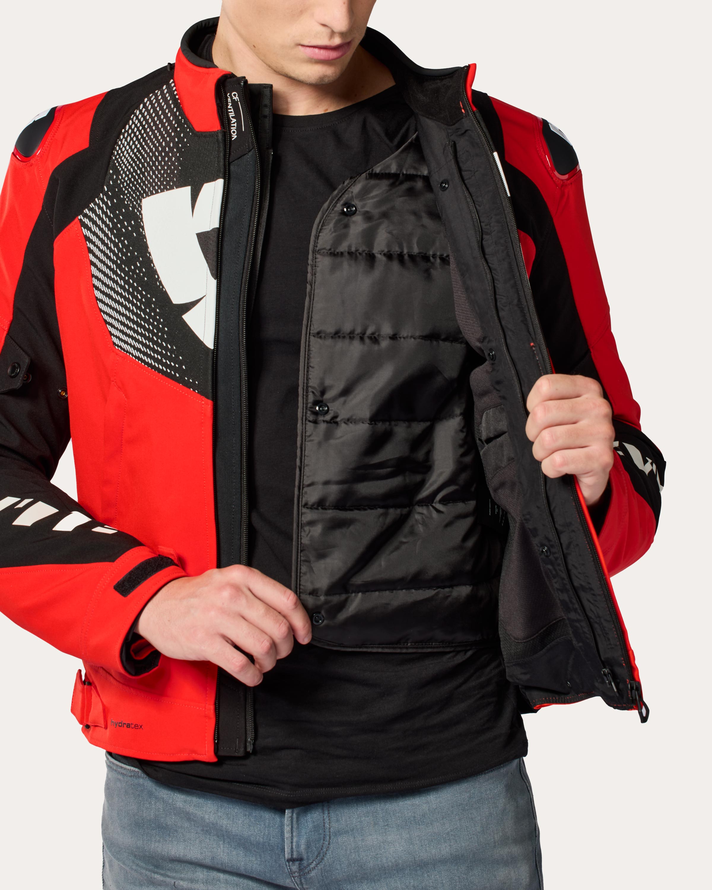 Die Hyperspeed 3 H2O-Jacke beweist, dass sportliche Performance und Wasserdichtigkeit sich nicht gegenseitig ausschließen. Diese Sportjacke aus Textil verfügt über eine integrierte wasserdichte hydratex-G-Liner-Konstruktion, kombiniert mit einem großen, direkt hinter dem Hauptreißverschluss angeordneten Belüftungseinsatz. Verschiedene Designelemente wurden direkt von den Anzügen unserer Fahrer in der MotoGP und WorldSBK übernommen.