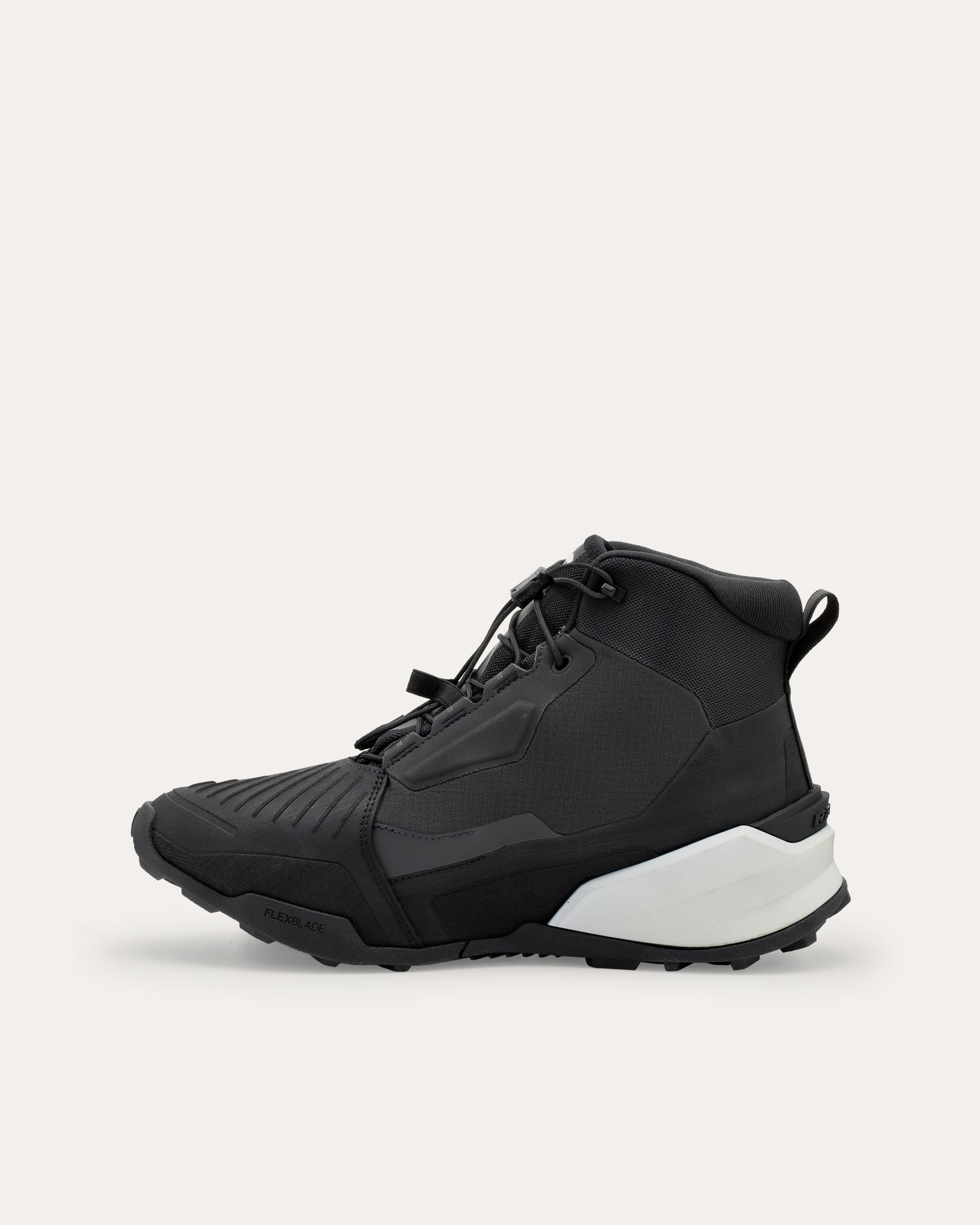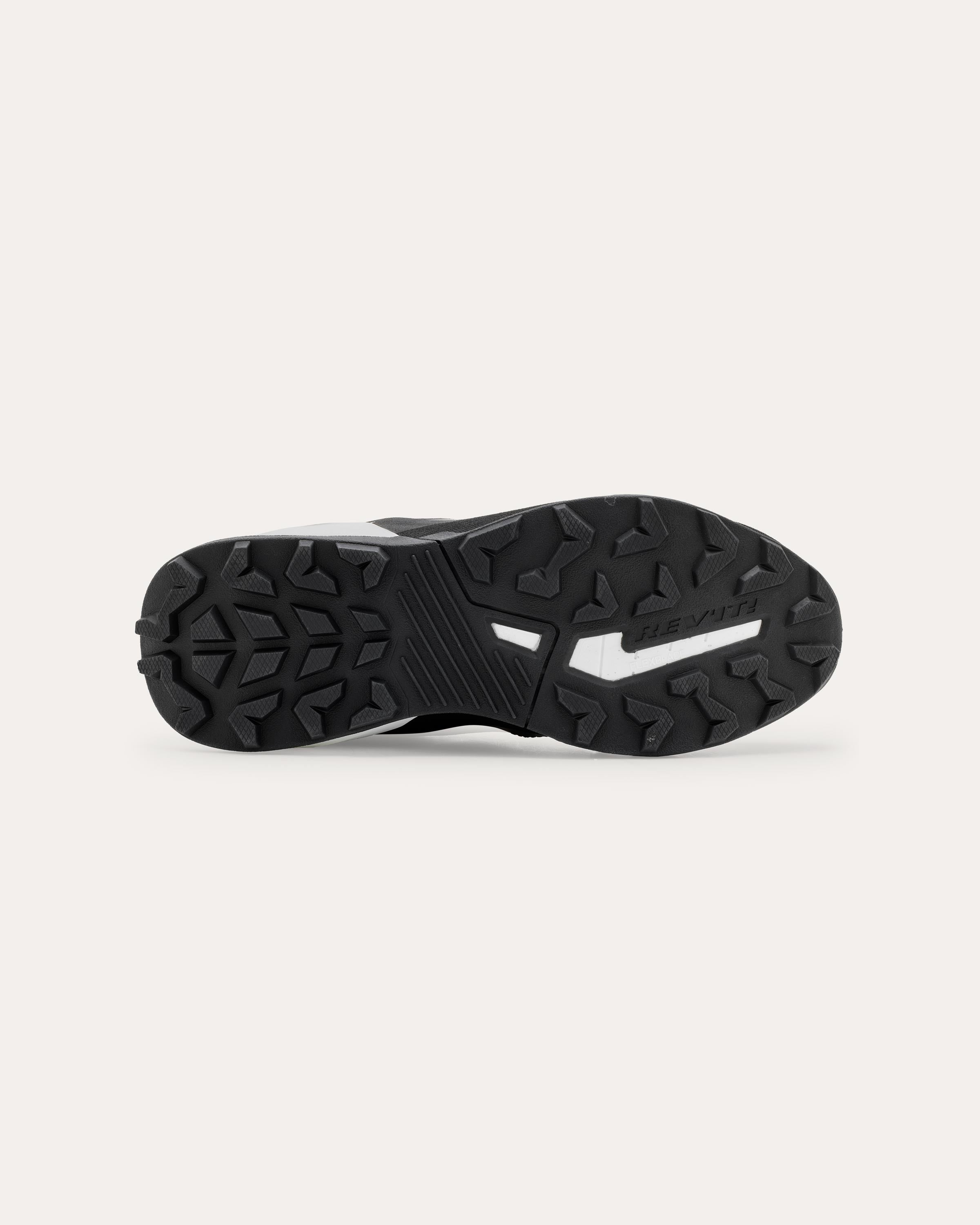 Unsere eigene Schuhtechnologie, die die Flexibilität und Dämpfungseigenschaften von leistungsstarken Laufschuhen mit der Quersteifigkeit von Motorradschuhen verbindet. Passform, Gefühl und Funktion in einem – sichtbar durch den Sohlenausschnitt.