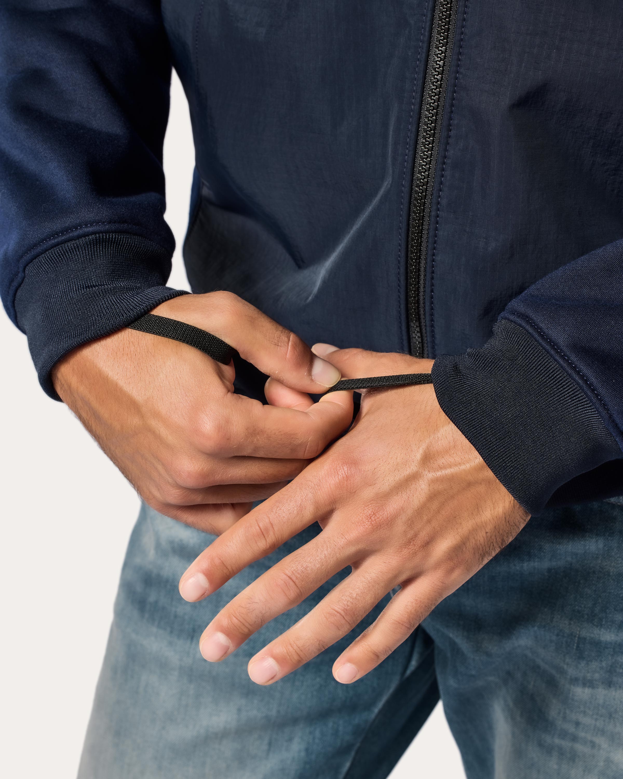The loop at the back of this jacket enables you to attach it to your jeans, which prevents the jacket from creeping up: no more exposed back when riding your bike.