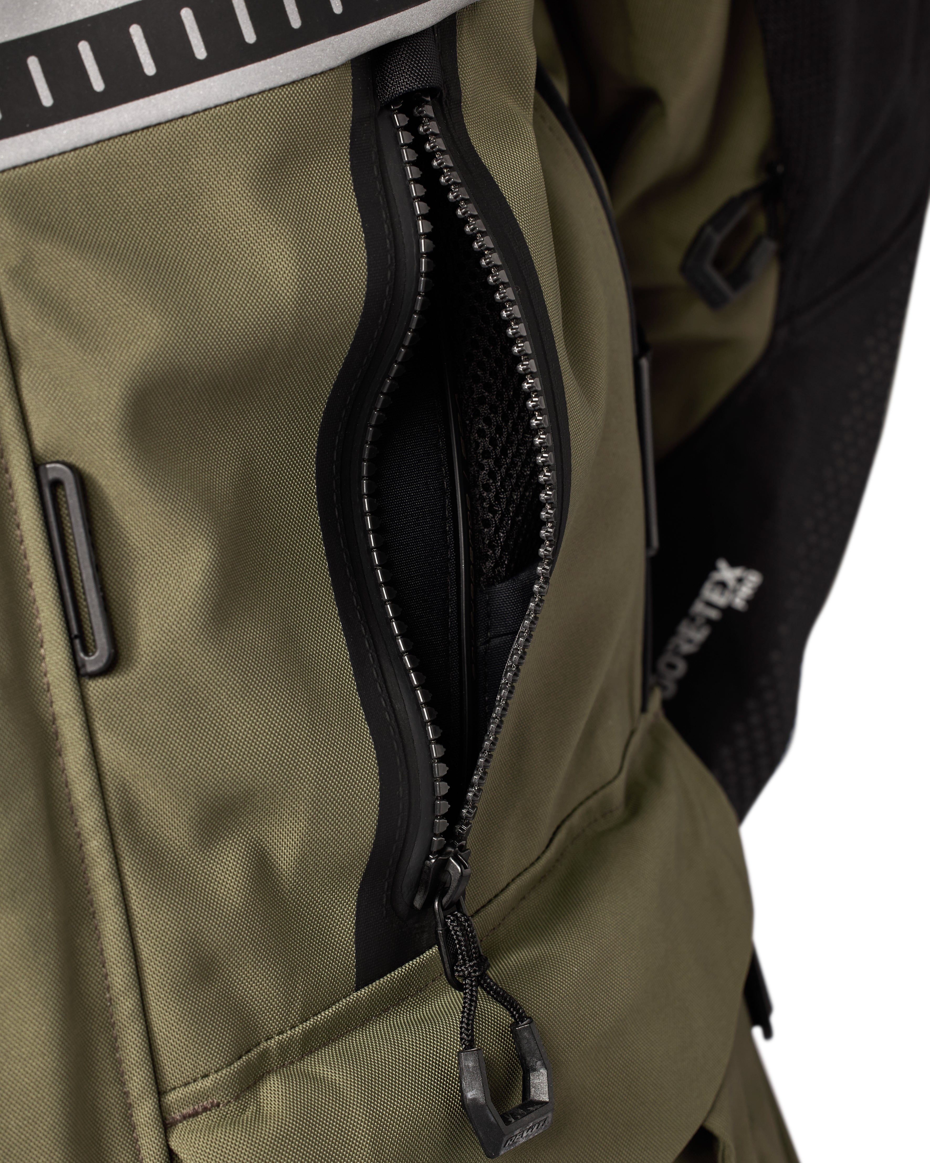 It’s a daunting task when trying to improve upon the pinnacle motorcycle jacket of our adventure collection, but we made it happen. The Dominator 3 GTX motorcycle jacket has enhanced ventilation, waterproofing, and refinements to every element of the construction to upgrade performance and comfort for the rider. The fully waterproof motorcycle jacket features the tried and tested 3L GORE-TEX laminate with an updated, clean design. The detachable storm collar - which protects the neck of the rider against the elements - can be stored in the back pocket when not needed.