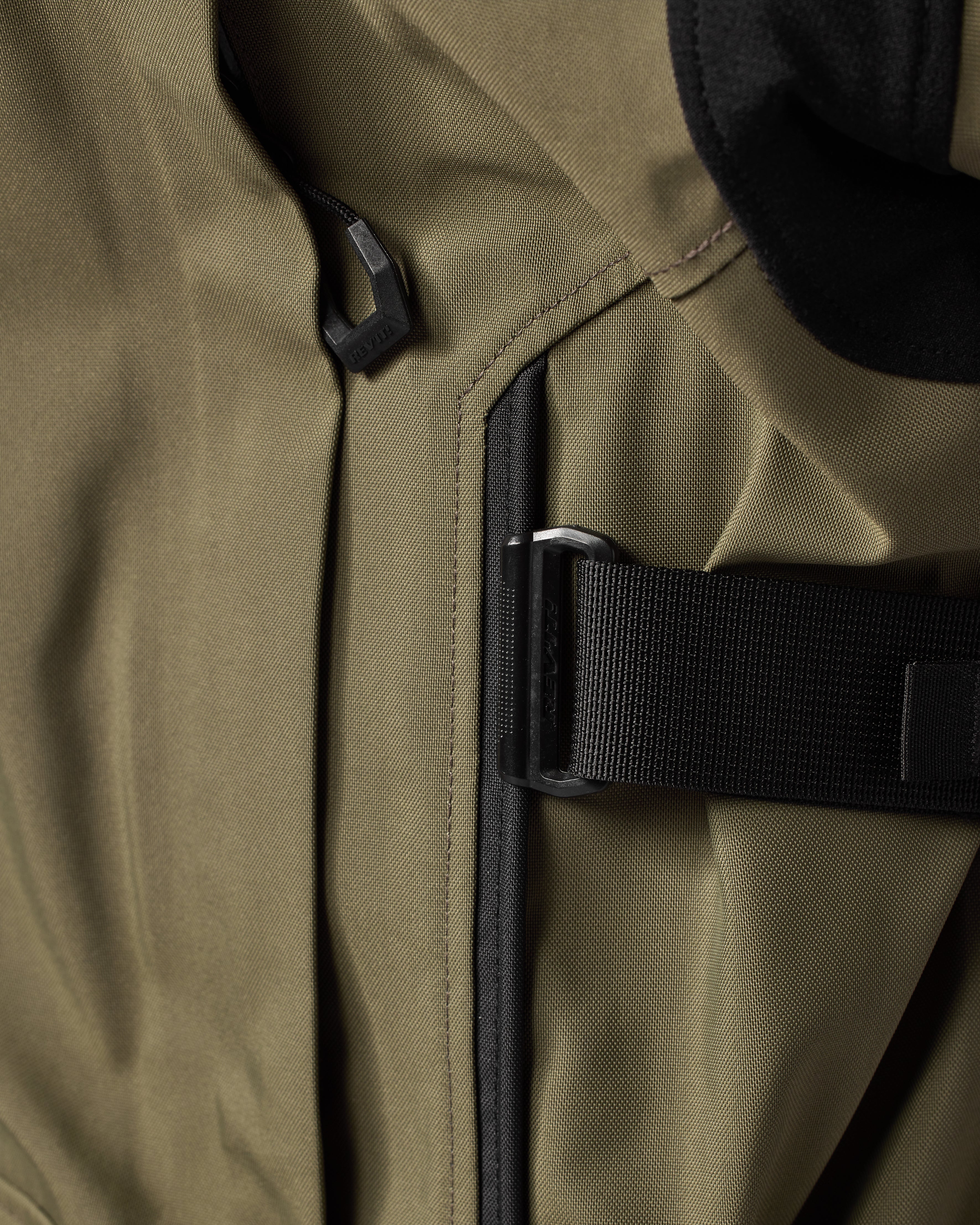 The kidney belt provides stability and protection to the lower back area. This garment comes standard equipped with a detachable kidney belt which can be easily attached to the jacket with a strong Velcro connection.