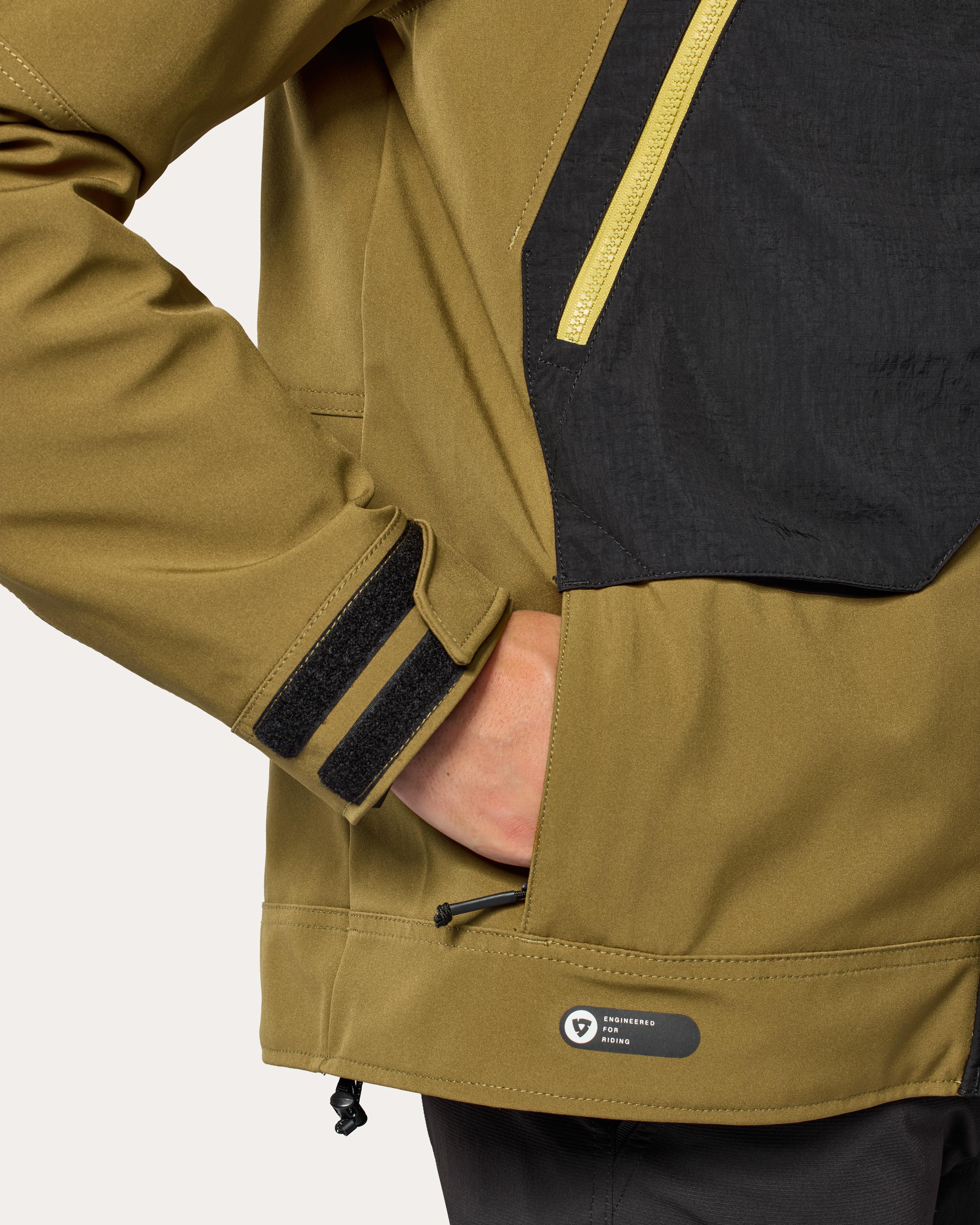 The loop at the back of this jacket enables you to attach it to your jeans, which prevents the jacket from creeping up: no more exposed back when riding your bike.