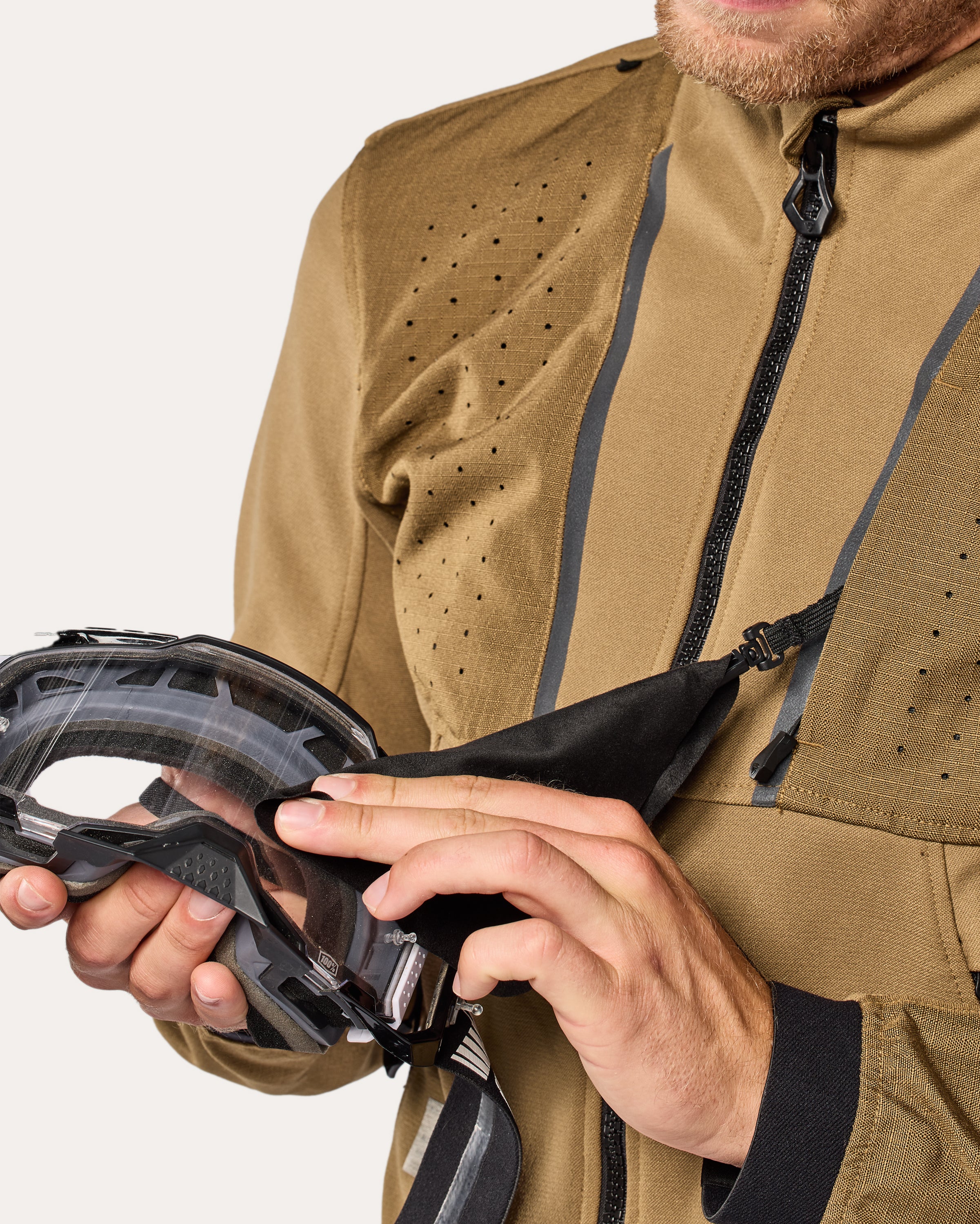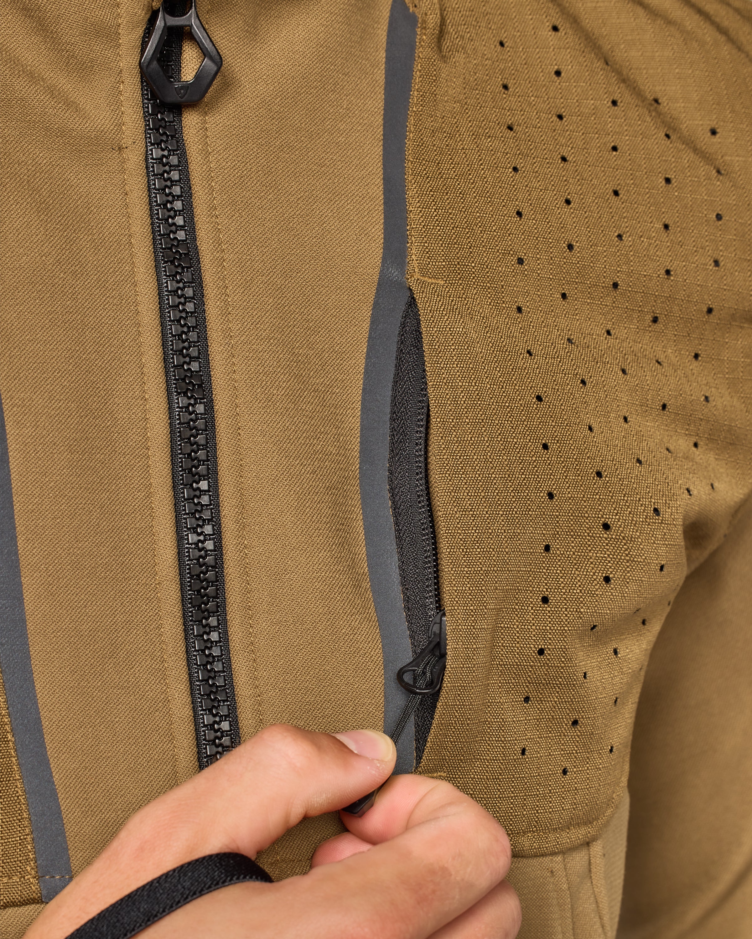 The impetus behind its creation was to engineer a jacket with as much stretch as possible using an open-knit construction, in this case, PWR|Stretch, to maximize comfort when moving around. CORDURA® ripstop was then added to reinforce its structural stability, along with the inclusion of SEESMART armor at the elbows and shoulders (with the possibility to add the back protector if desired) to give it a AA safety rating.