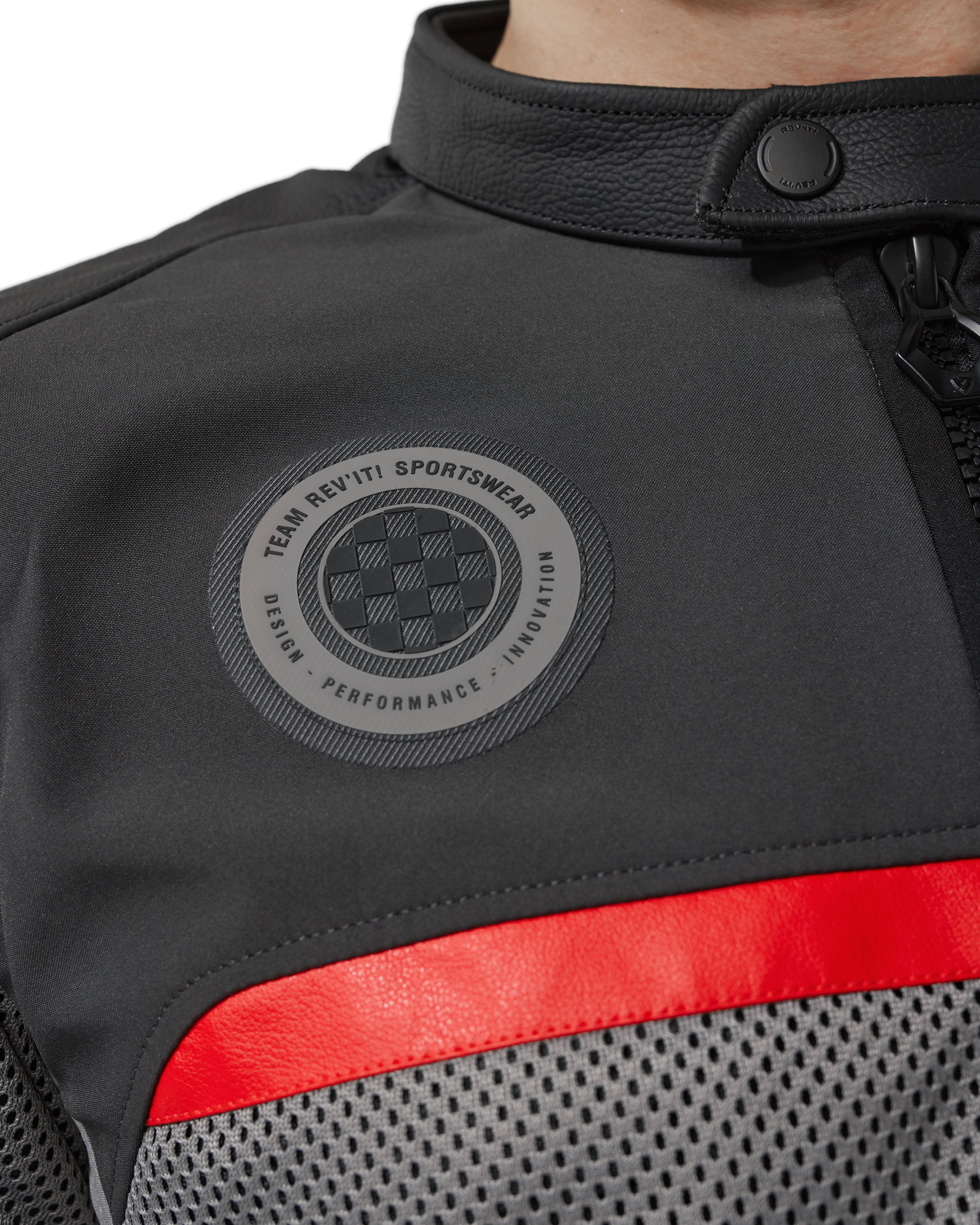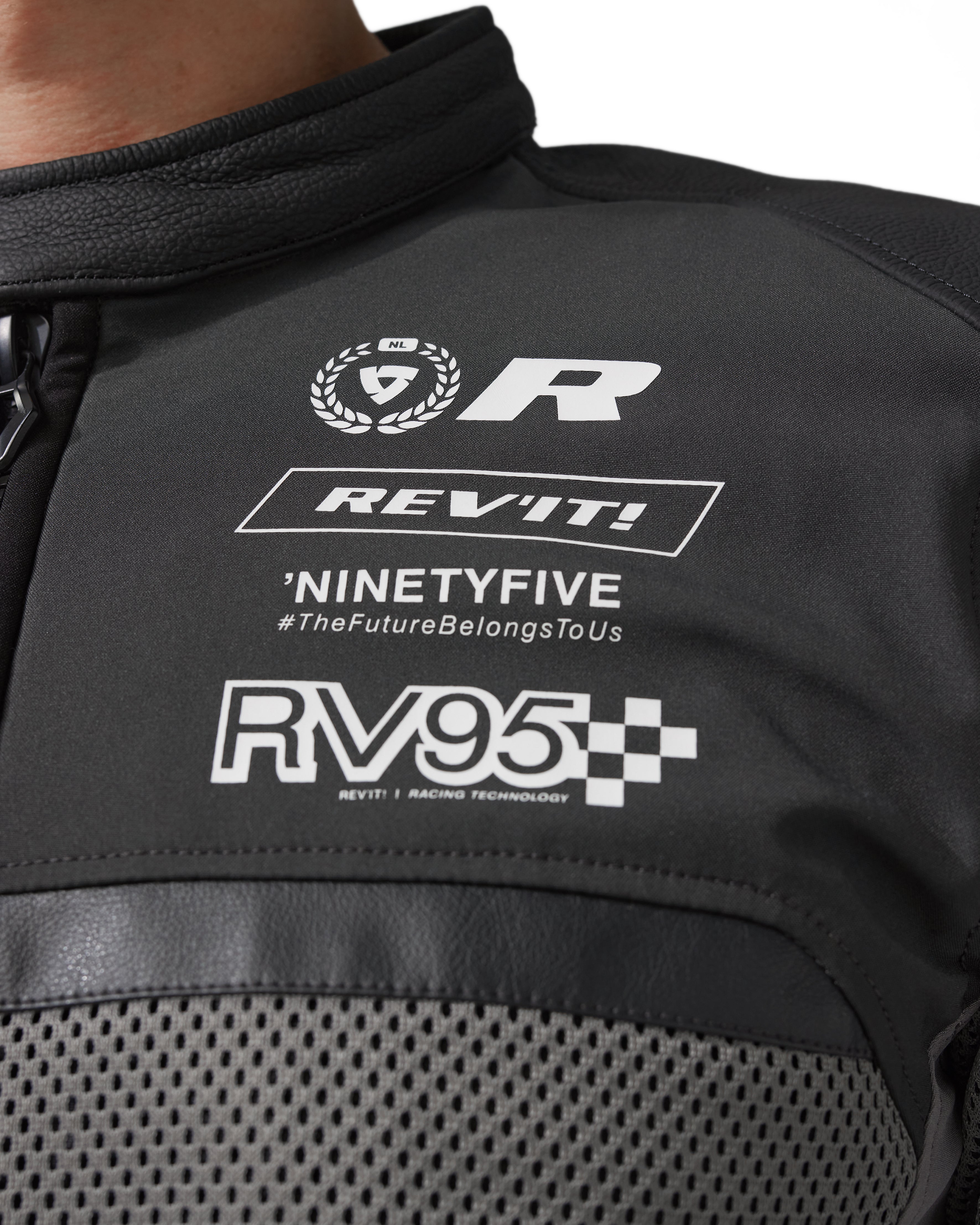 At the upper chest of the left side, race-inspired laminated prints including RV95 - the year of REV’IT!’s birth, 1995 - #thefuturebelongstous, and our Shield logo, make it immediately recognizable as something that sets it apart from the rest of the collection. You’ll also see the text, “Ready and willing to ignite,” because that’s what we are and that’s what this jacket does. It’s ready to play. Subtle branding is also found at the upper backside of the jacket.