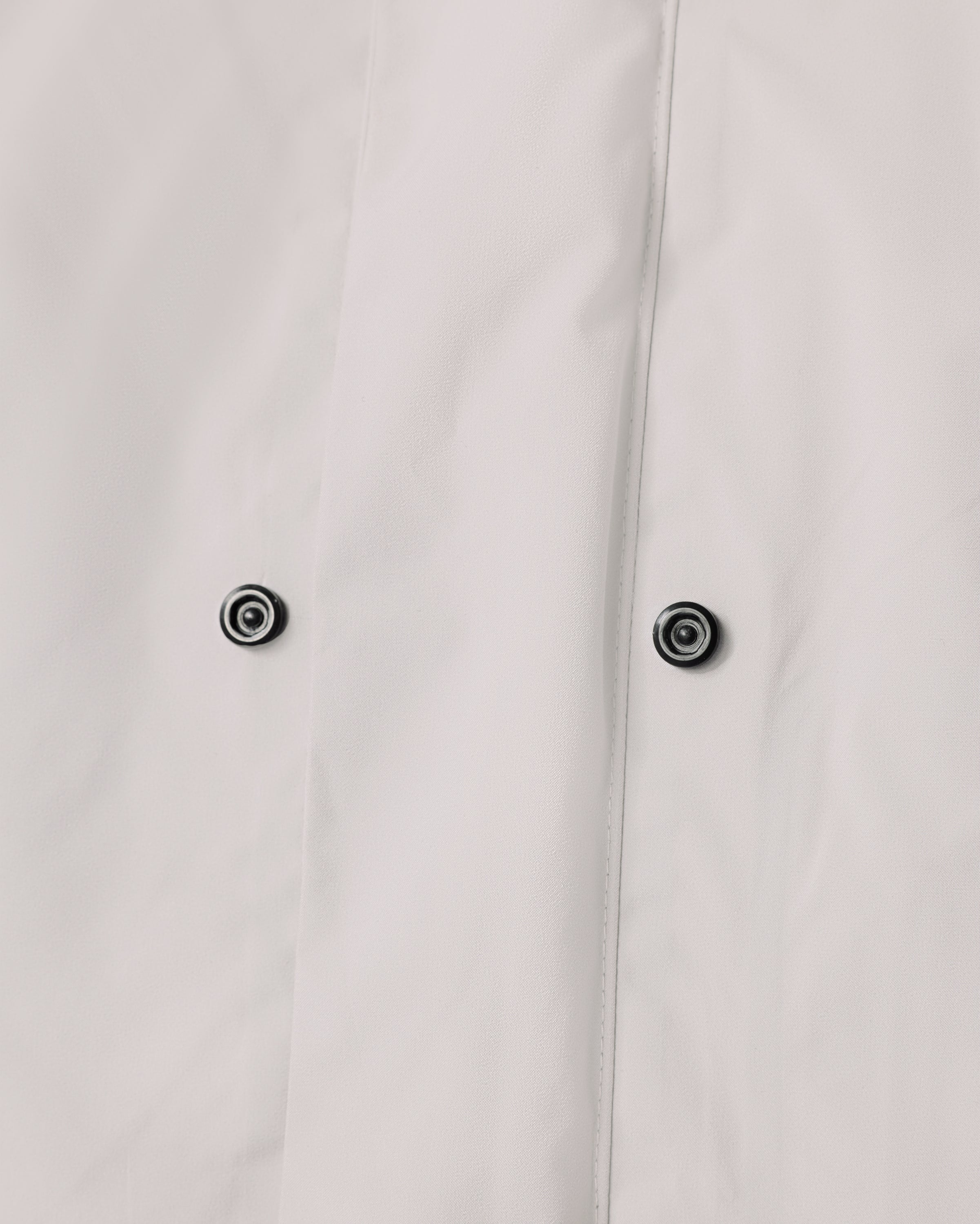 The two-way collar snap closure system works to close the collar in inclement weather and also flips back and reverses to use the same snap closure to keep the collar open and out of the way to allow in fresh air.