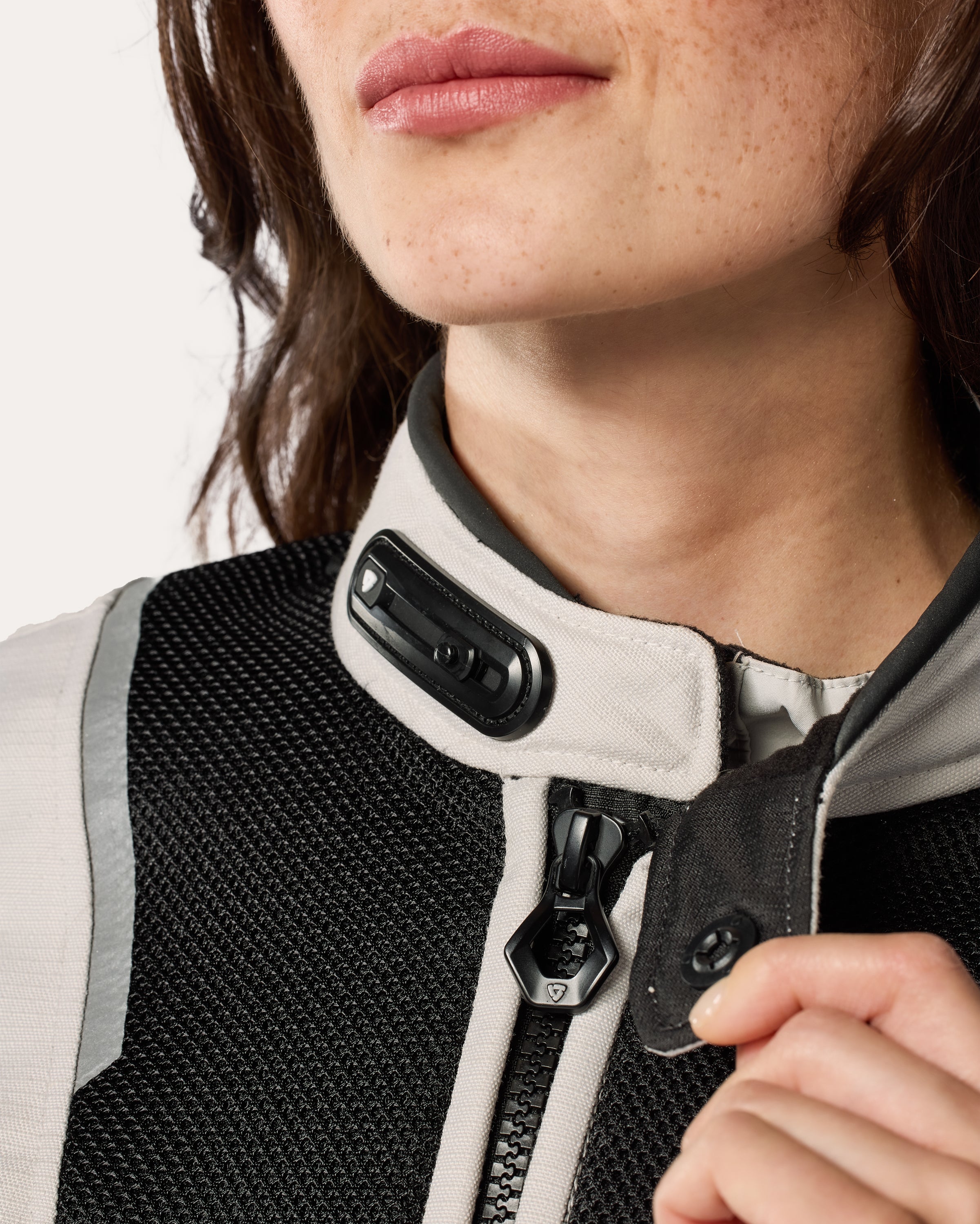 The REV’IT! flexisnap makes it possible to adjust the collar circumference easily and personalize its fit to each rider. A jacket is often worn in more then one season, and the flexisnap makes it possible to adjust the collar within seconds. During winter a wider collar circumference accommodates combining the jacket with a balaclava or wind collar, while during summer, a wider circumference lets an all-important cooling wind into the collar.