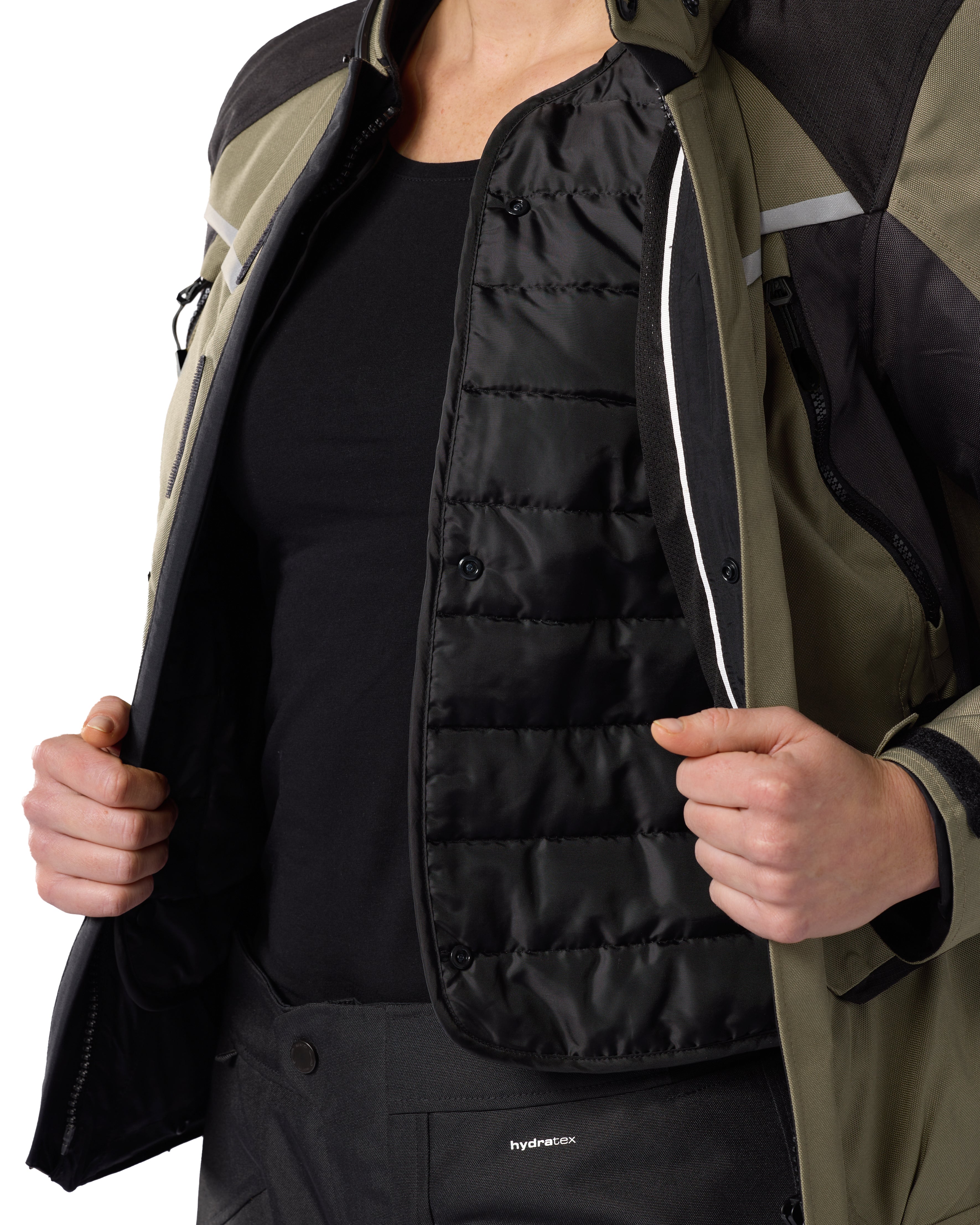 The 100% waterproof hydratex|G-liner coating is applied to the mesh inner lining of the garment. The seams are sealed for maximum waterproofness. This makes the wearing comfort optimal, while the functional properties of the G-liner construction are preserved.