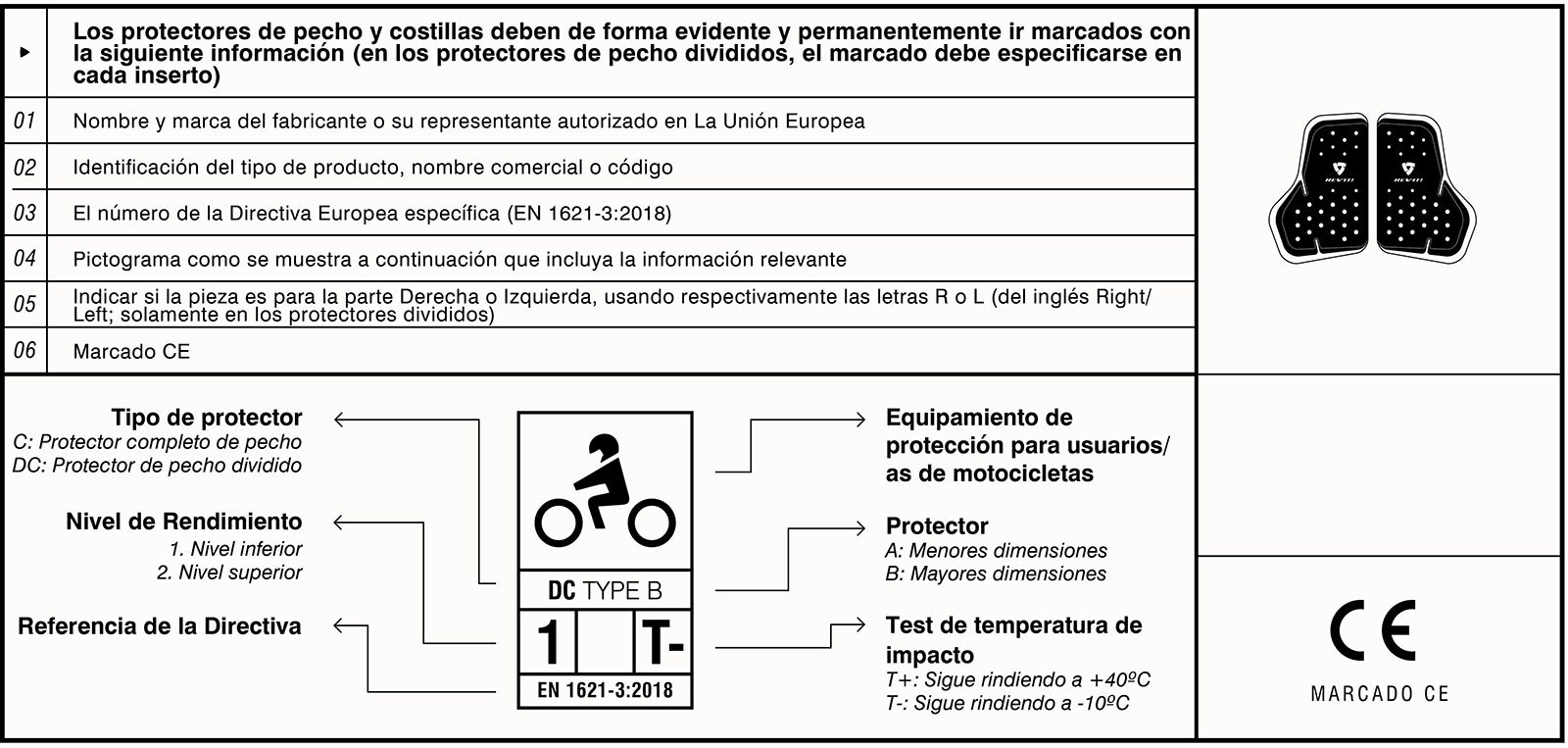 Aunque el enfoque de este artículo se centra en la ropa para moto, queremos destacar que las botas se ajustan a las normas de la Directiva EN 13634:2017; los guantes a la EN 13594:2015; los protectores para codos, rodillas, caderas y hombros a la EN 1621-1:2012; las espalderas a la EN 1621-2:2014, y los protectores de pecho a la N 1621-3:2018. Por su parte, la Directiva EN 1621-4:2013 cubre los airbag que se activan con cordón, mientras que la EN 14021:2013 trata del escudo protector específico para la práctica del motocross.