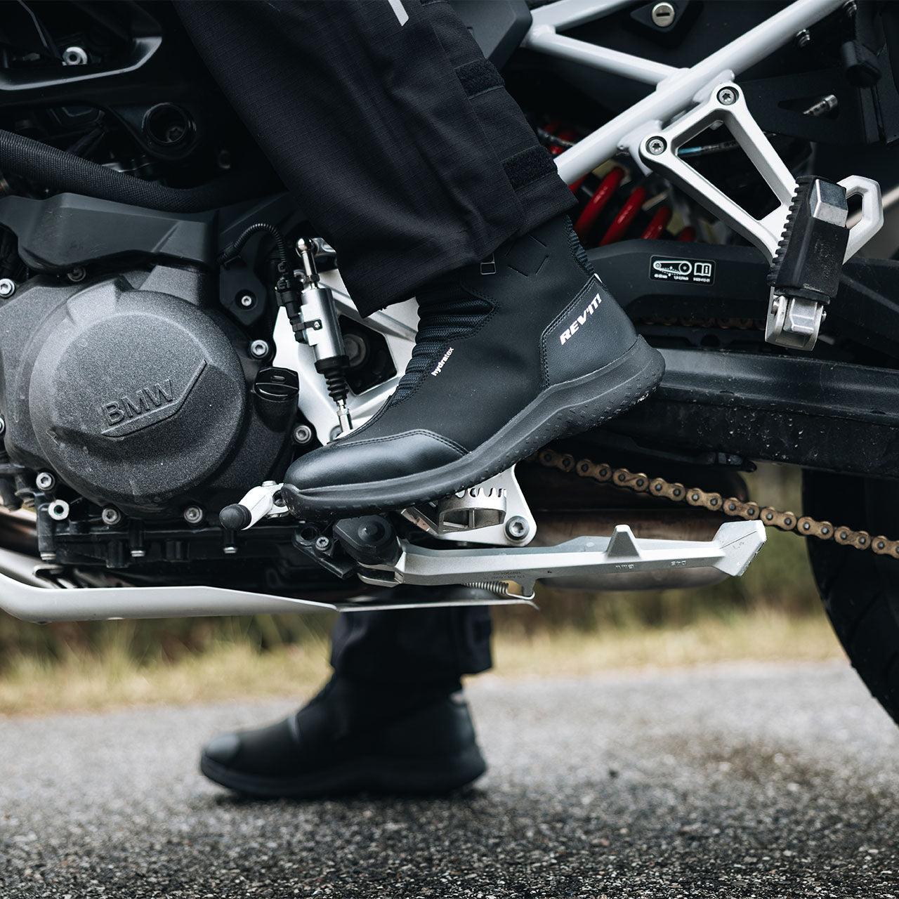 No temas a las condiciones meteorológicas adversas y ve más lejos en tu próxima aventura porque las botas de moto Risco H2O te respaldan con comodidad y estilo.