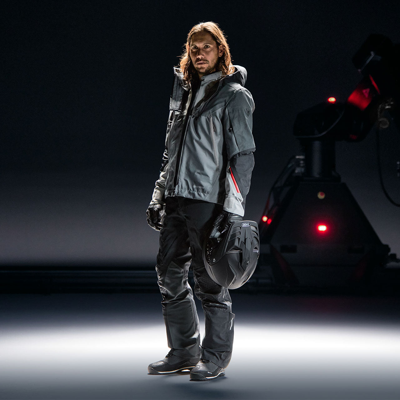 Ahora bien, cuando el tiempo cambia y empieza a molestar, o cuando intencionadamente te preparas para salir en moto con tiempo frío o húmedo, puedes ponerte una capa laminada impermeable 3L GTX. Su protección contra la lluvia es máxima. Esta capa cuenta con certificación CE nivel B, y en combinación con la capa de rejilla clase AA, ofrece el más alto nivel de protección dentro de nuestra colección de aventura. Las cremalleras de ventilación en el frontal, la espalda y la zona alta de los brazos dirigen el aire directamente a nuestro cuerpo cuando el sol aprieta. La capucha protege tu cuello durante la conducción. La puedes desmontar y guardar en el gran bolsillo trasero.