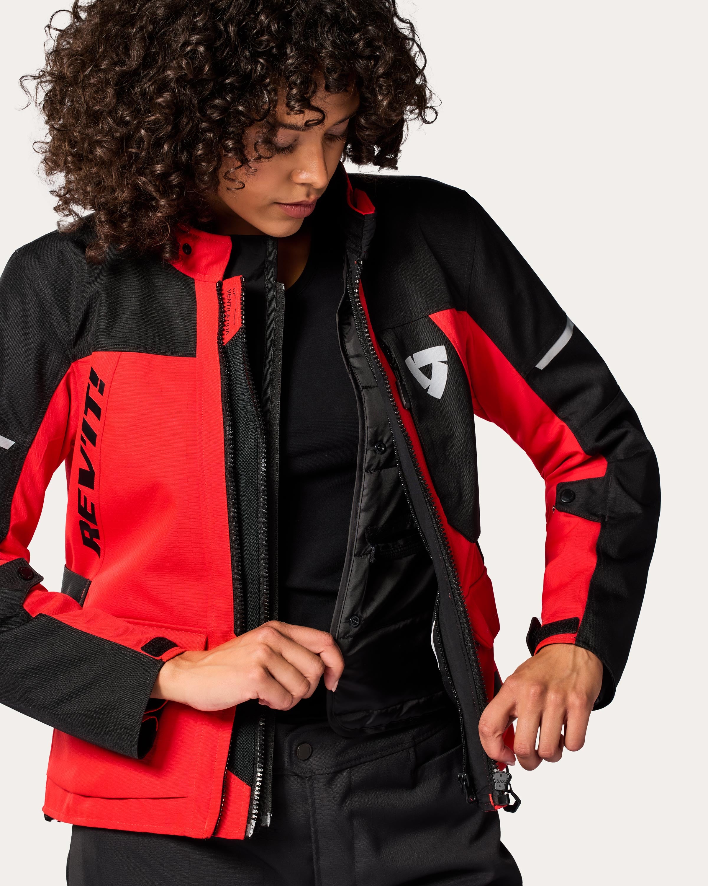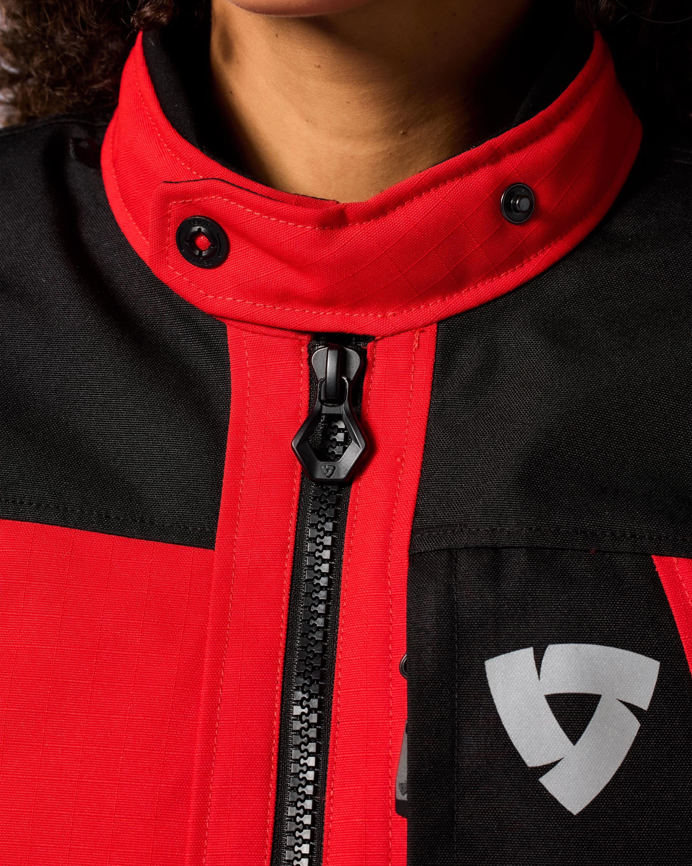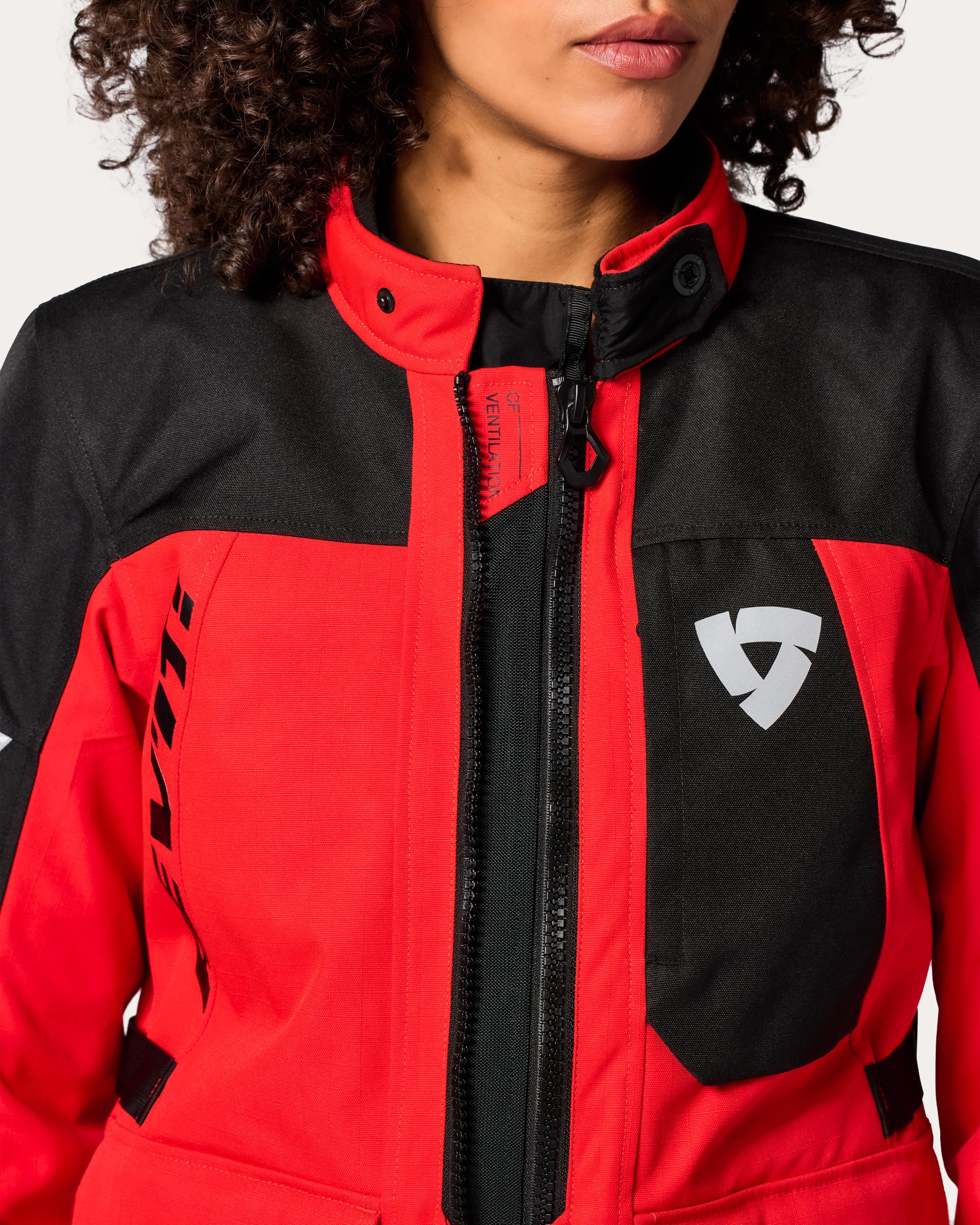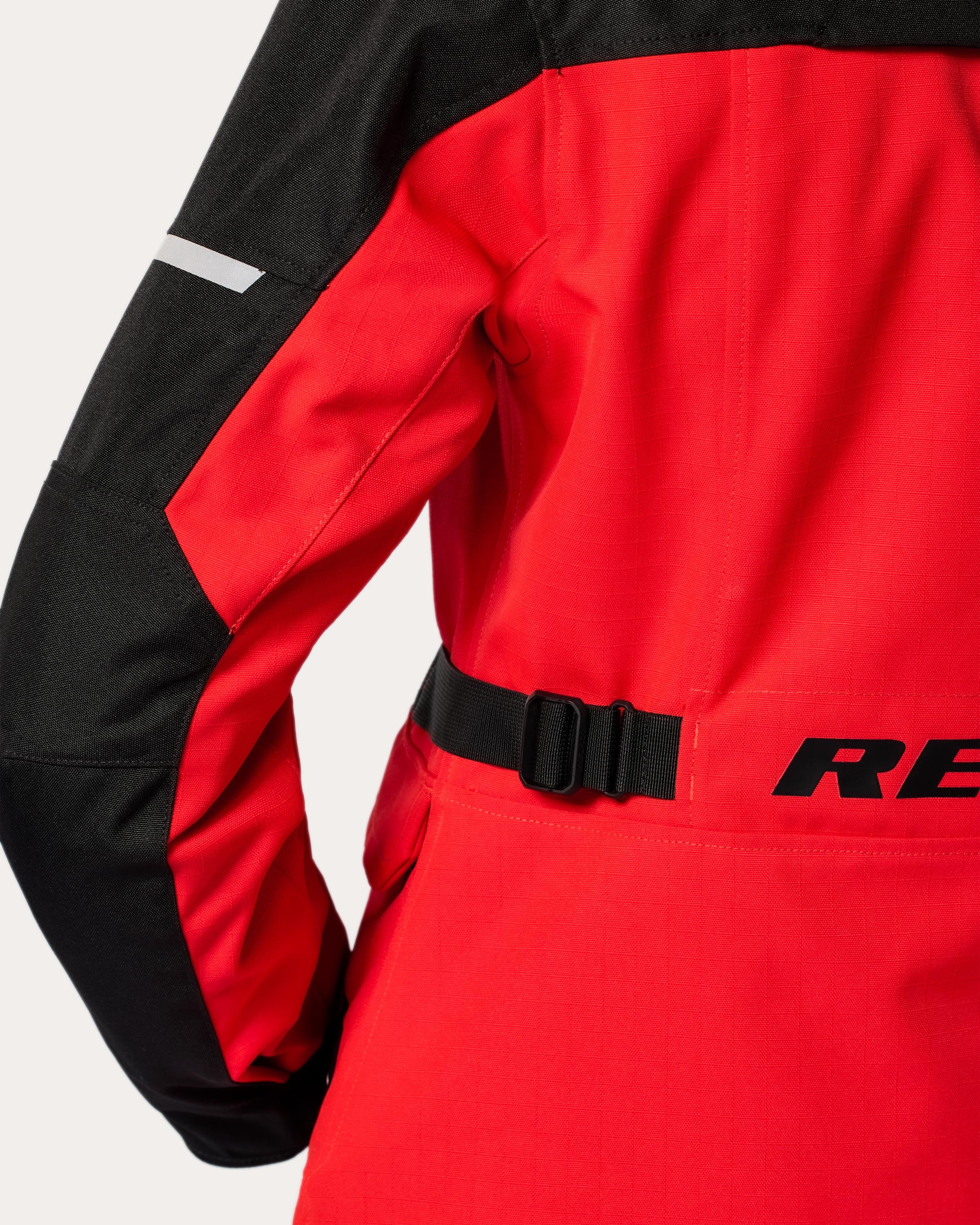 La poche arrière de ce blouson REV’IT! est conçue pour y insérer une protection dorsale SEESOFT CE-niveau 2 de type RV – un moyen simple de maximiser la sécurité.