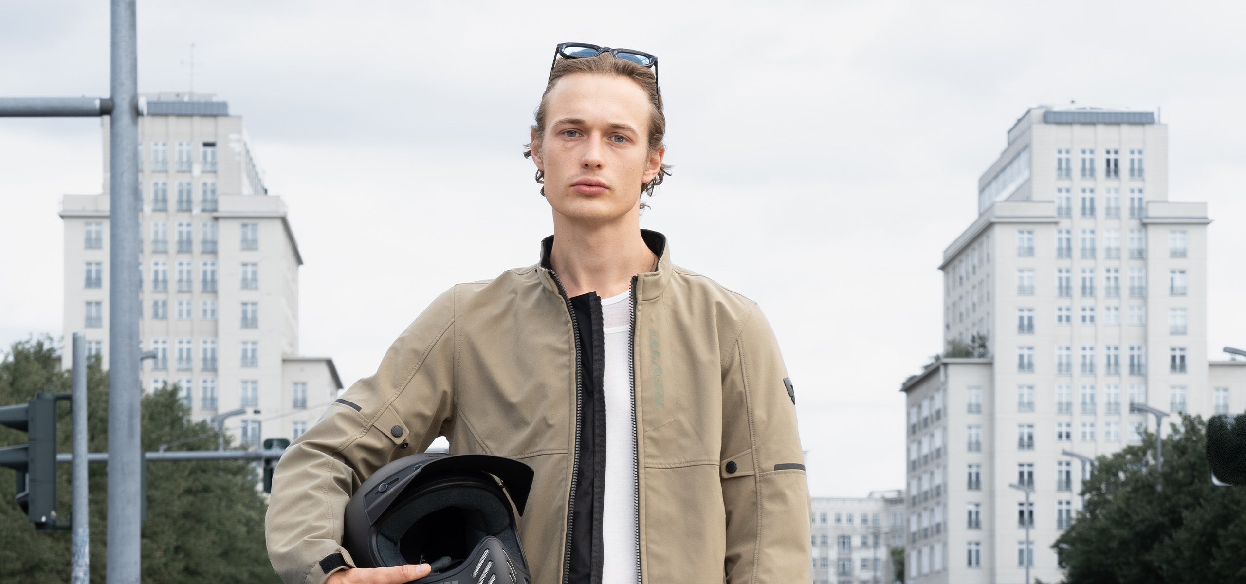 La poche arrière de ce blouson REV’IT! est conçue pour y insérer une protection dorsale SEESOFT CE-niveau 2 de type RV – un moyen simple de maximiser la sécurité.