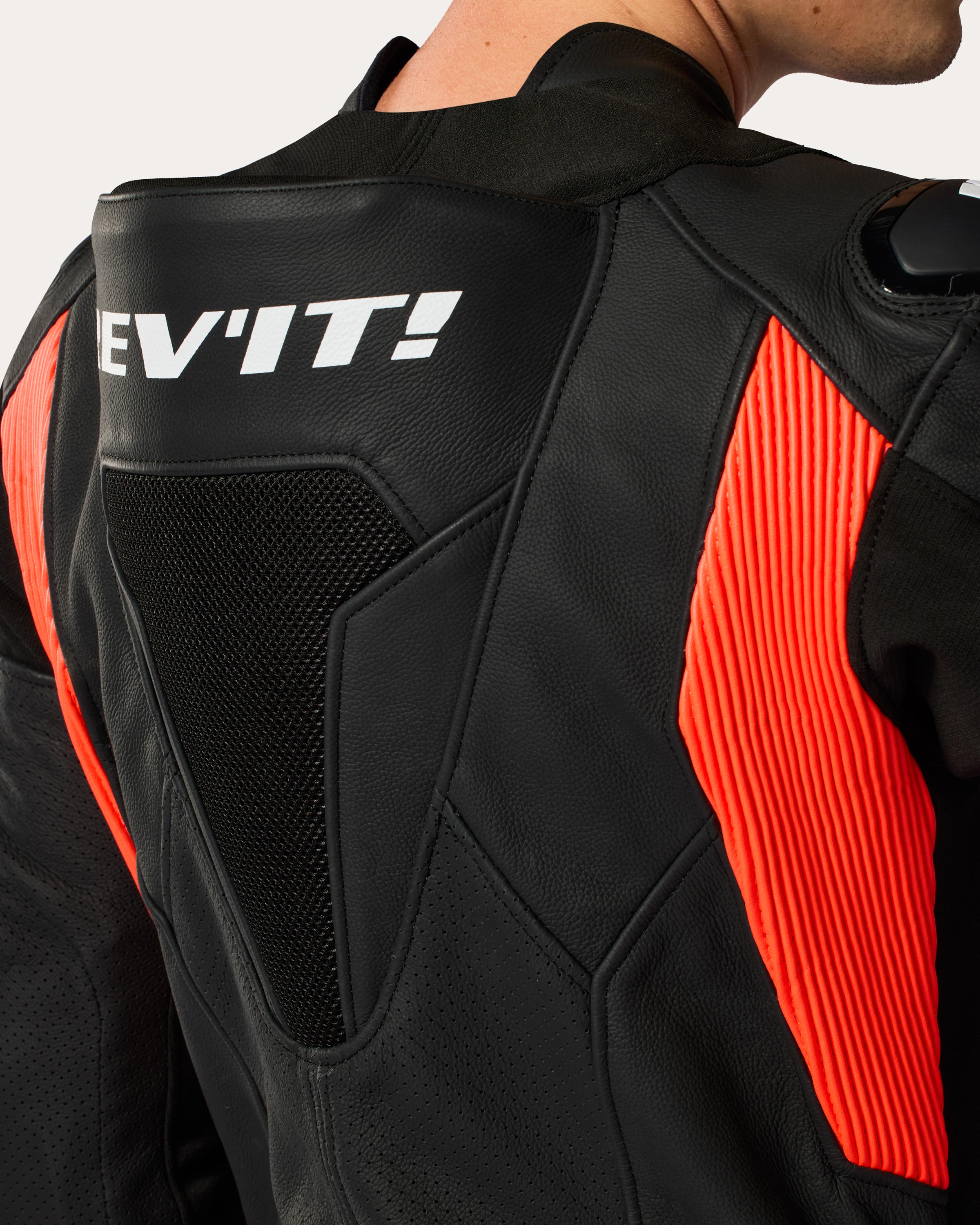 La poche arrière de ce blouson REV’IT! est conçue pour y insérer une protection dorsale SEESOFT CE-niveau 2 de type RV – un moyen simple de maximiser la sécurité.