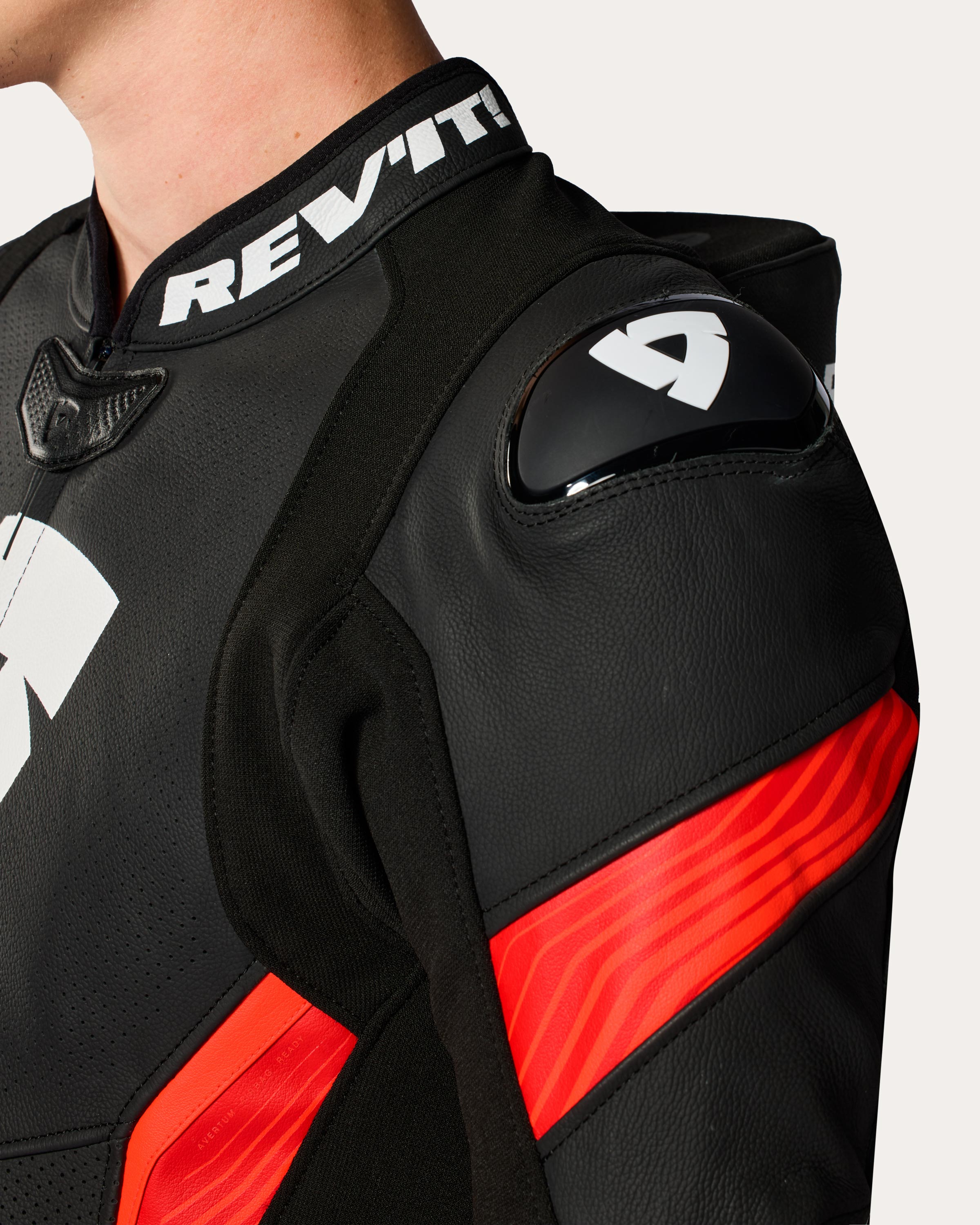 Sous ce vêtement vous avez la possibilité de porter notre Airbag REV'IT! Avertum Tech-Air® – ou un airbag Tech5 – si vous achetez le vêtement dans la taille au-dessus de votre taille habituelle. Si vous désirez porter un vêtement qui s'accompagne de la mention « Adapté au port du système d'airbag Avertum Tech-Air® », vous devez vous assurer que le vêtement peut supporter l'expansion de l'airbag et nous vous conseillons donc de suivre les instructions suivantes : 1. Mesurer le tour de poitrine et diviser la mesure par deux ; 2. Mesurer le vêtement à plat au niveau de la poitrine ; 3. Si la différence entre le point 2 et le point 1 est supérieure ou égale à 12 centimètres, alors le vêtement peut être porté par-dessus l'airbag. Remarque : Veuillez garder à l'esprit que le vêtement doit être acheté dans une taille adaptée de façon à ce que les protections des épaules et des coudes soient bien ajustées et qu'elles vous protègent efficacement en cas d'accident. Pour créer de la place pour l'expansion de l'airbag, vous pouvez retirer toutes les doublures amovibles (thermiques ou imperméables) qui peuvent restreindre l'expansion de l'airbag en cas d'accident. Retirez la protection dorsale de votre vêtement, s'il en est équipé, dès que vous portez l'airbag (une dorsale est intégrée à l'airbag) et réglez toutes les sangles du corps au plus large.