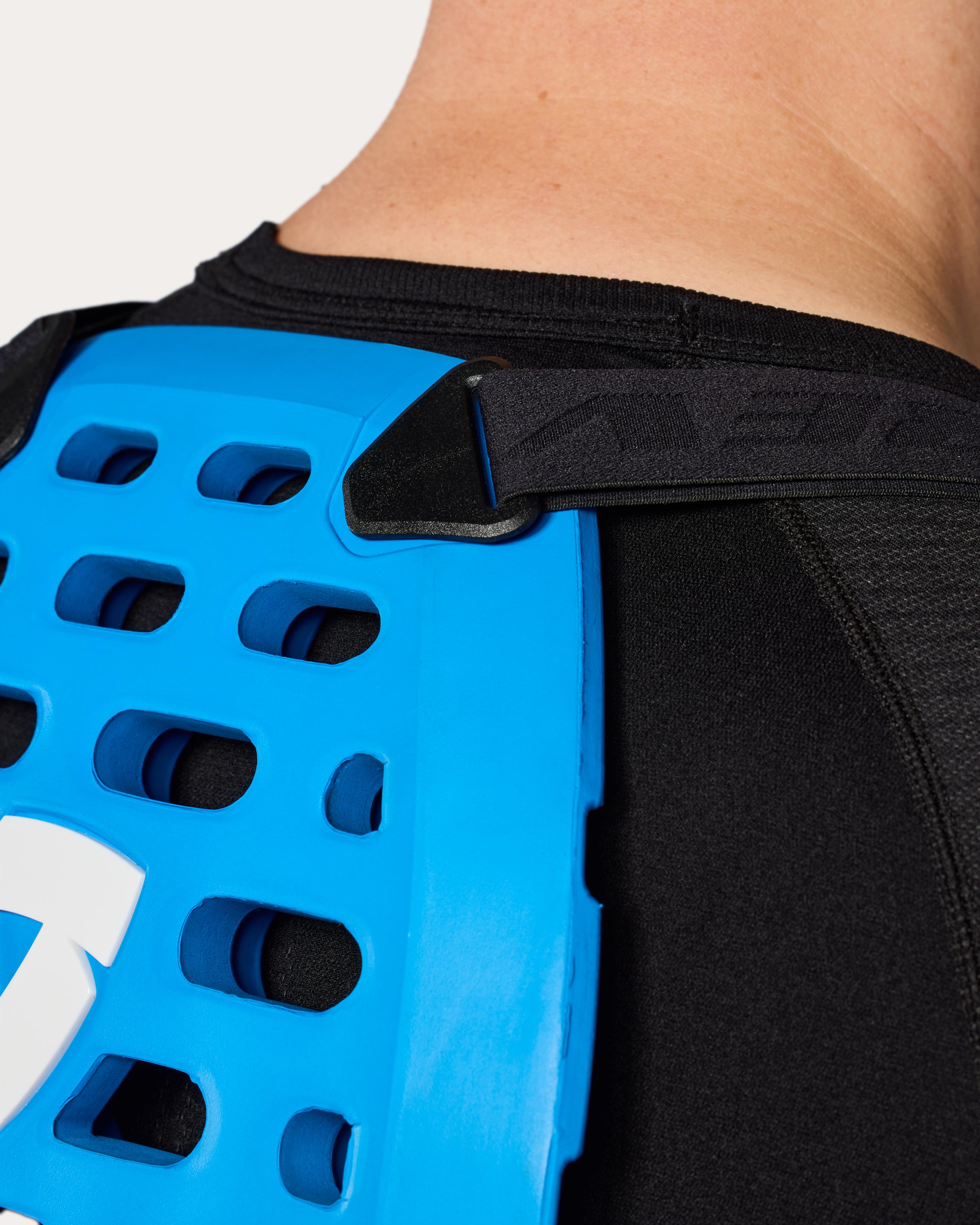 Au cœur de la protection dorsale Spina se trouve le matériau SEESOFT 3D Fit, dont l'élément de protection repose directement contre votre dos. Les sangles multi-réglables au niveau des épaules et des lombaires se fixent uniquement à la protection SEESOFT, sans aucun point de fixation en contact avec le corps. Cela permet de conserver un design aussi léger que possible tout en garantissant que le matériau de protection reste bien en place, sans gêner les mouvements.