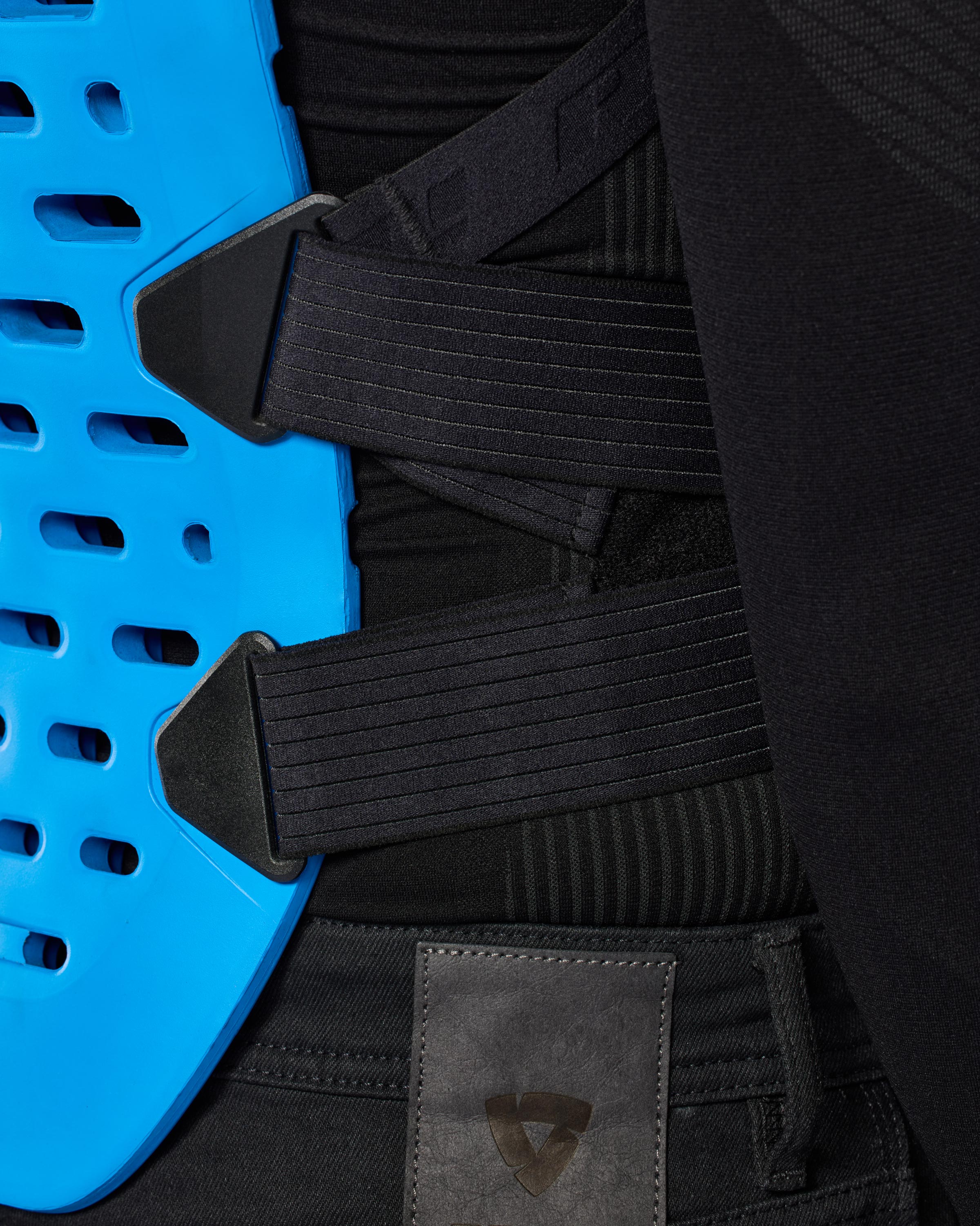 Pour un confort tout au long de la journée, le matériau SEESOFT 3D Fit s'adapte à votre corps, tandis que la conception à structure ouverte avec des treillis internes entrelacés en forme de nœud papillon permet à l'air de circuler librement. Cela évite la sensation de moiteur, tandis que la protection souple, mais très résistante aux chocs, épouse parfaitement les formes du corps et suit vos mouvements sur la moto.