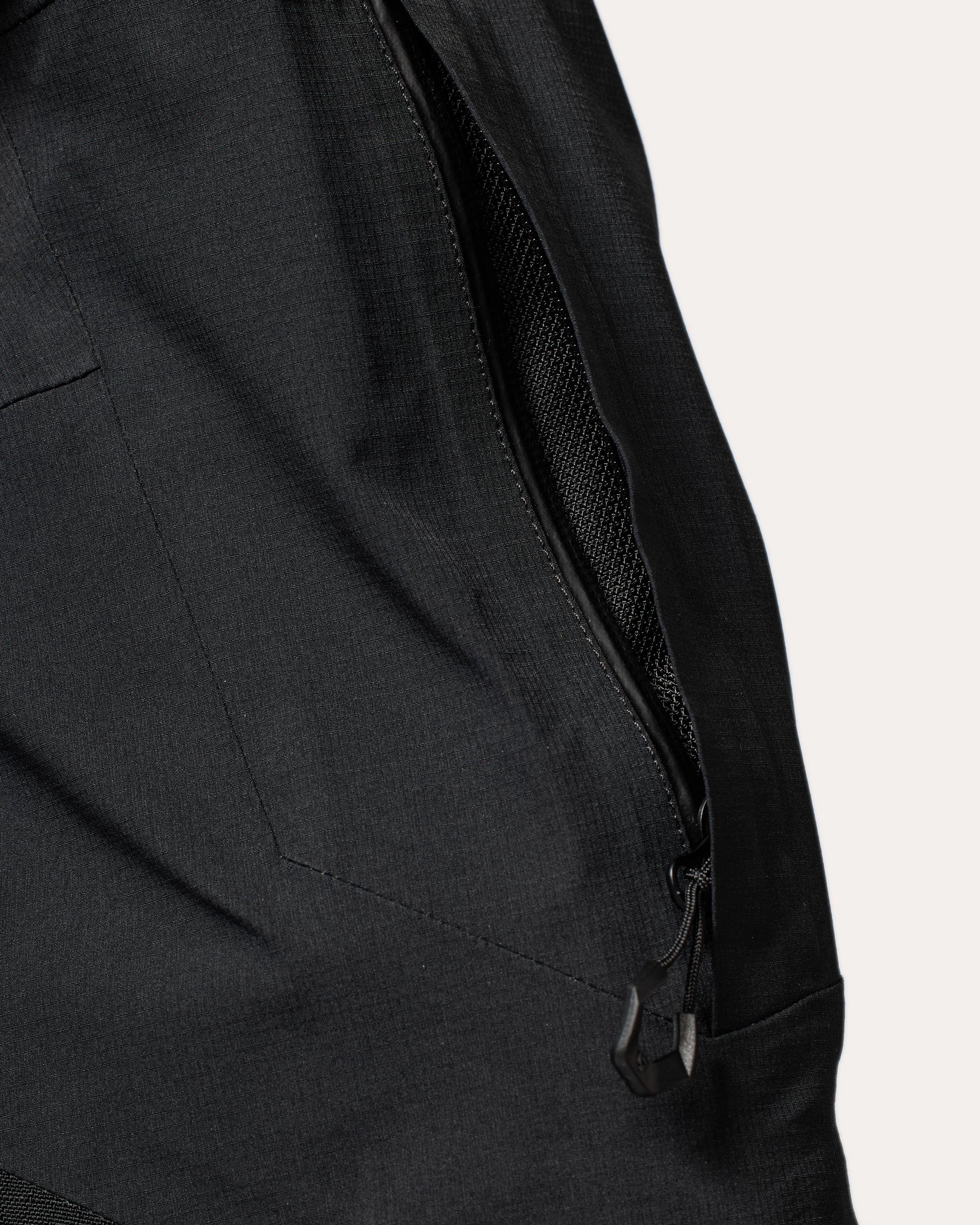 Longévité et grande résistance à l'abrasion sont les principales qualités du PWR|Shell, ici complété par un tissage anti-déchirure. Des épais fils de renfort s'entremêlent à intervalles réguliers pour former un quadrillage caractéristique connu sous le nom de Ripstop.