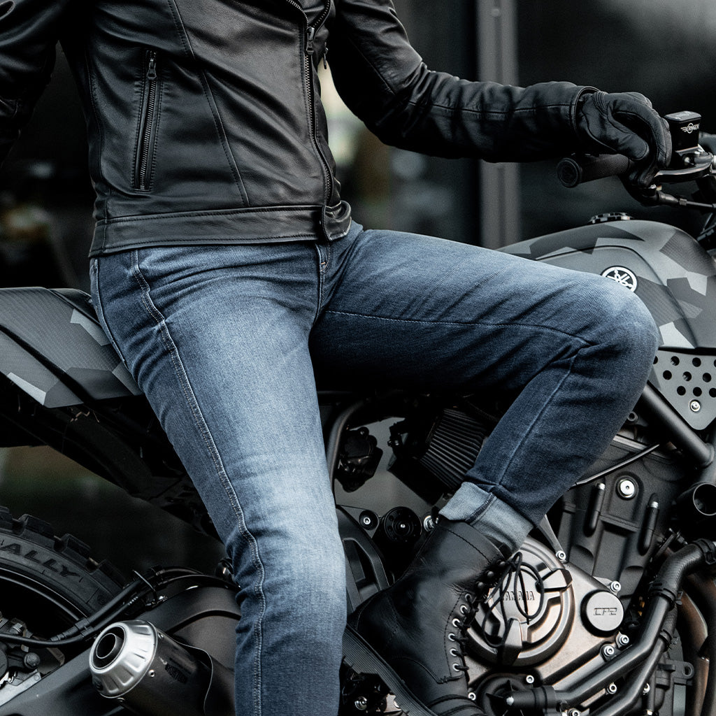 Un paio di jeans protettivi da moto con taglio slim per la giungla urbana.
