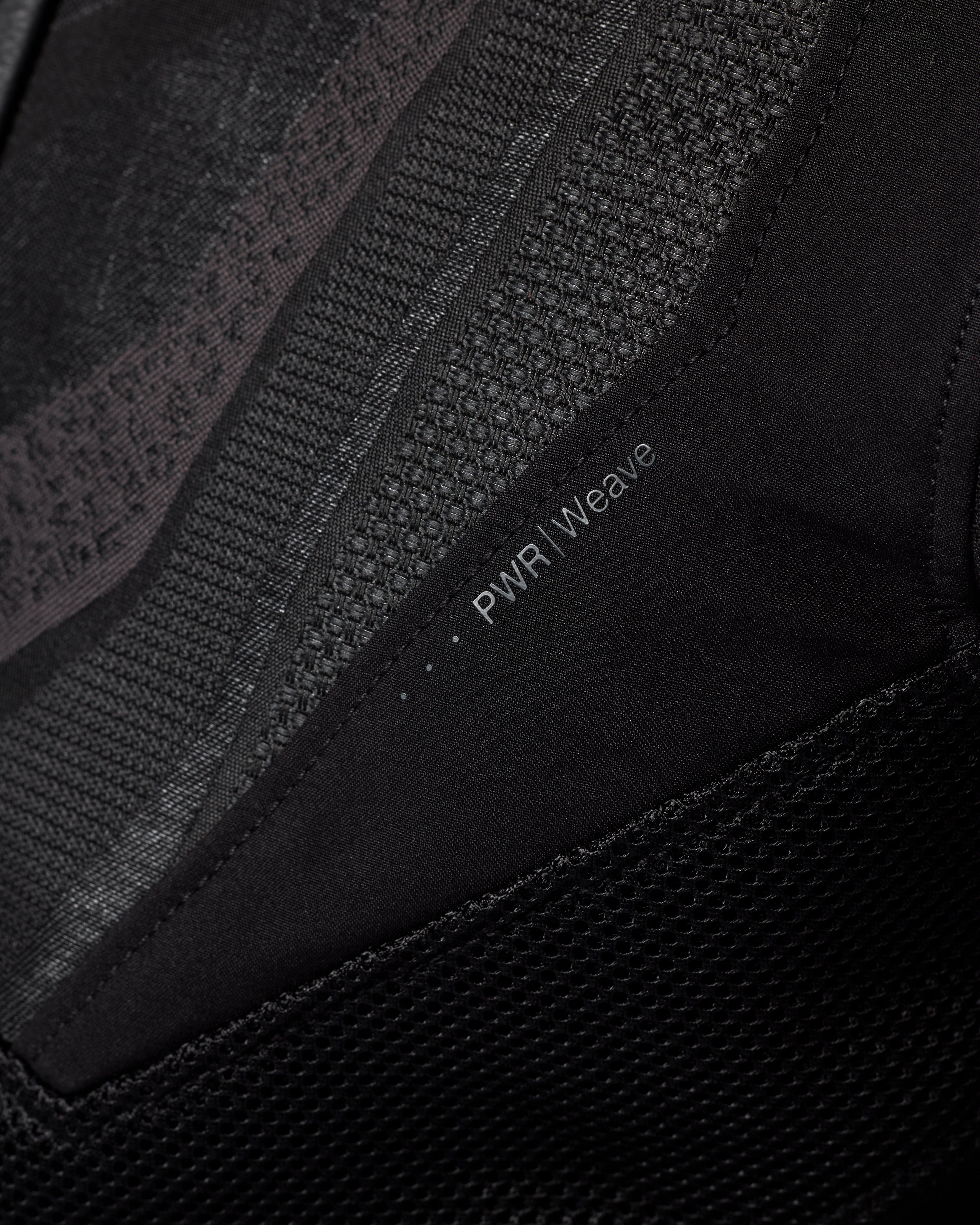 Questo PWR|Shell ha una maglia aperta che consente traspirablità e flessibilità, mantenendo sia il comfort che la sicurezza.