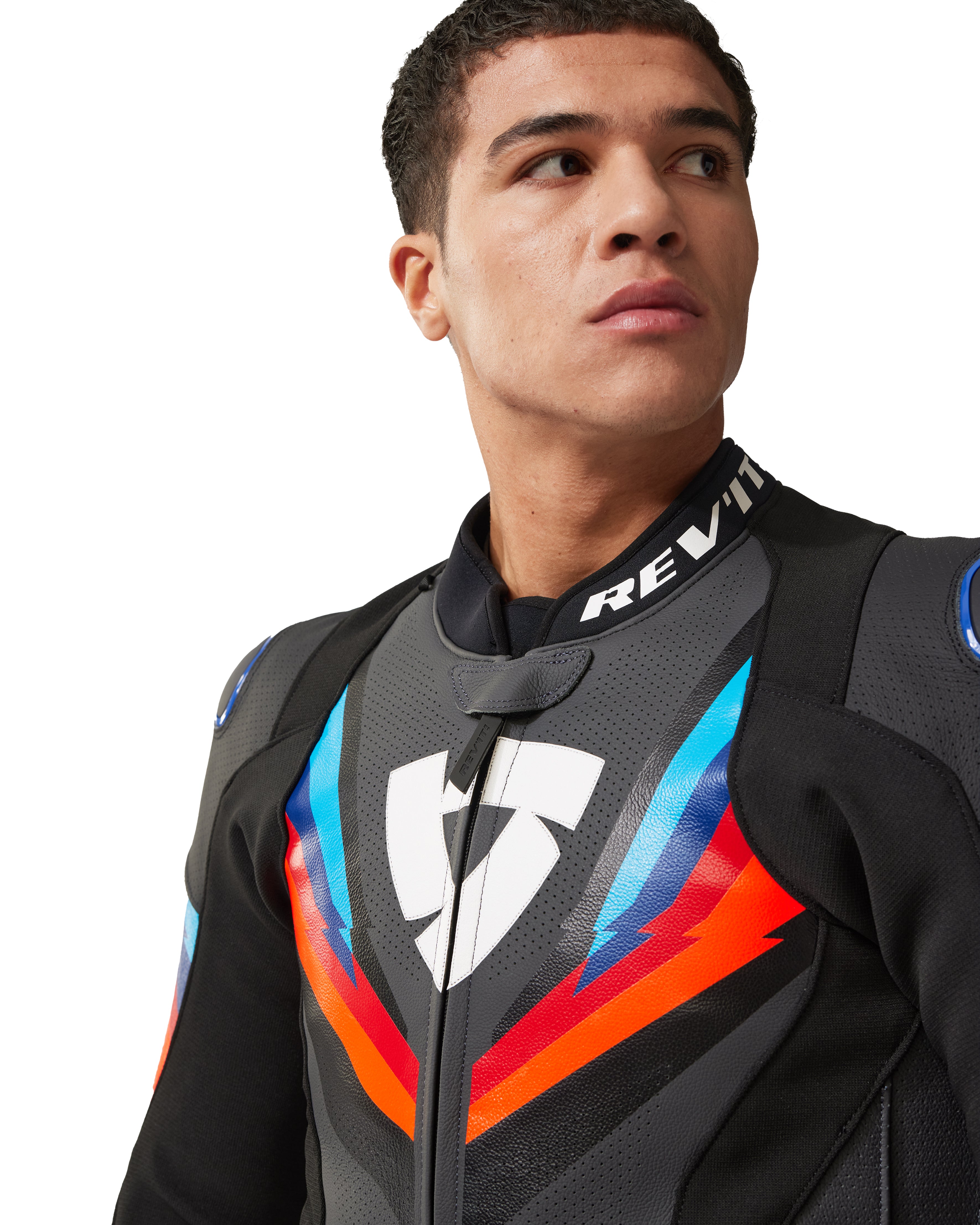 Creata con un mix simbiotico di pelle bovina Monaco performance, 3D Air Mesh, PWR|Shell stretch, neoprene (sul colletto) e materiali sintetici: elementi che lavorano insieme per migliorare le prestazioni e il comfort. Grazie alla vestibilità aderente e sportiva, sembra una seconda pelle e ti regala la sicurezza necessaria per affrontare la vita sempre in sella.