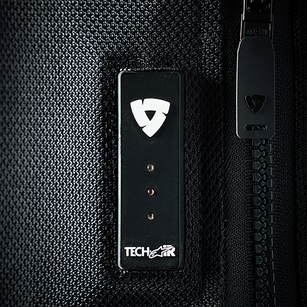 De Avertum Tech-Air® airbag is ontworpen met praktisch dagelijks gebruik in gedachten. Alle elektronica is waterbestendig en het LED-display aan de voorkant van de airbag geeft duidelijk de operationele status en het batterijniveau aan. Na volledig opladen biedt de lithium-ion batterij ongeveer 30 uur gebruikstijd. Voor snel en eenvoudig opladen is de airbag uitgerust met een magnetische micro-USB-oplader.