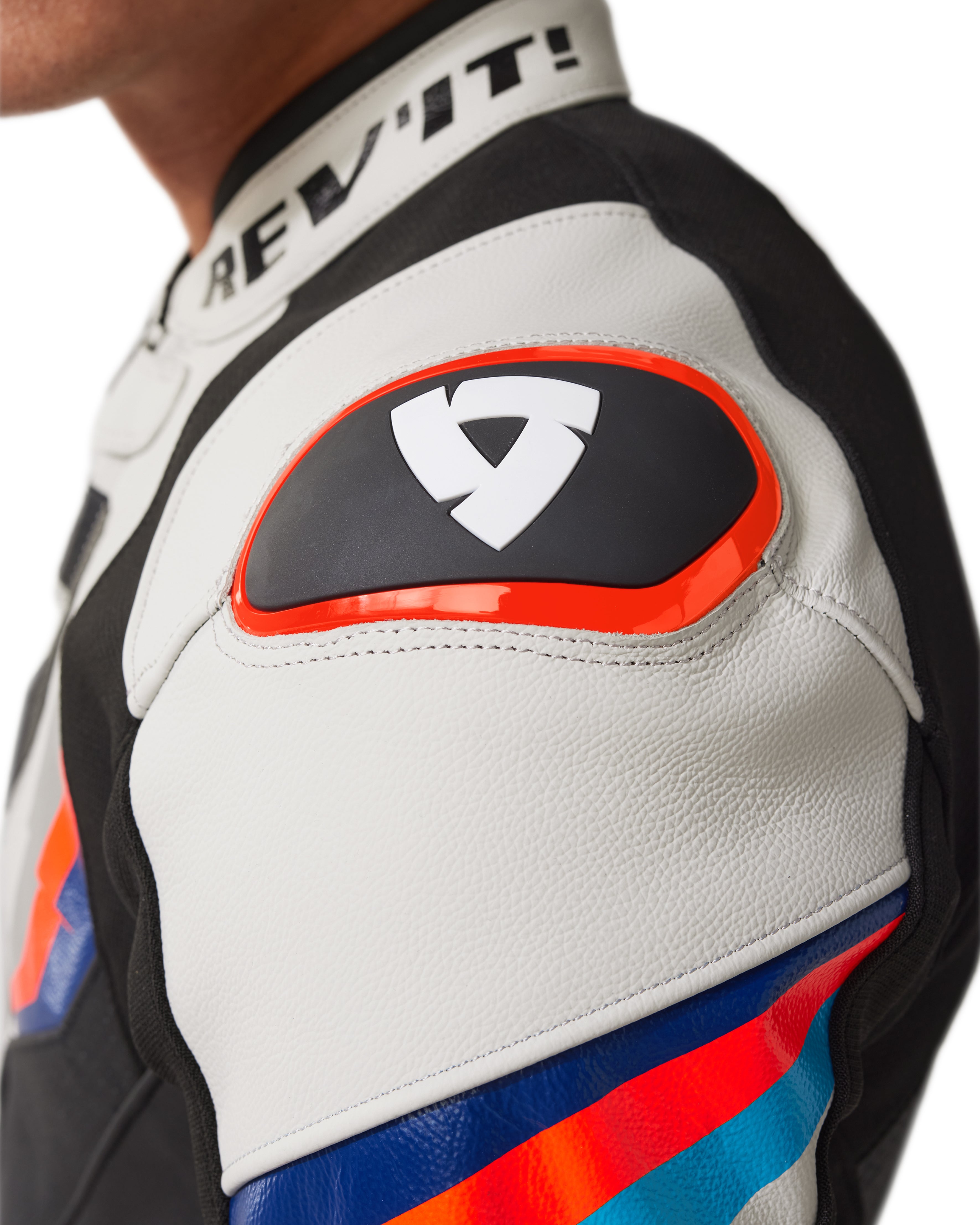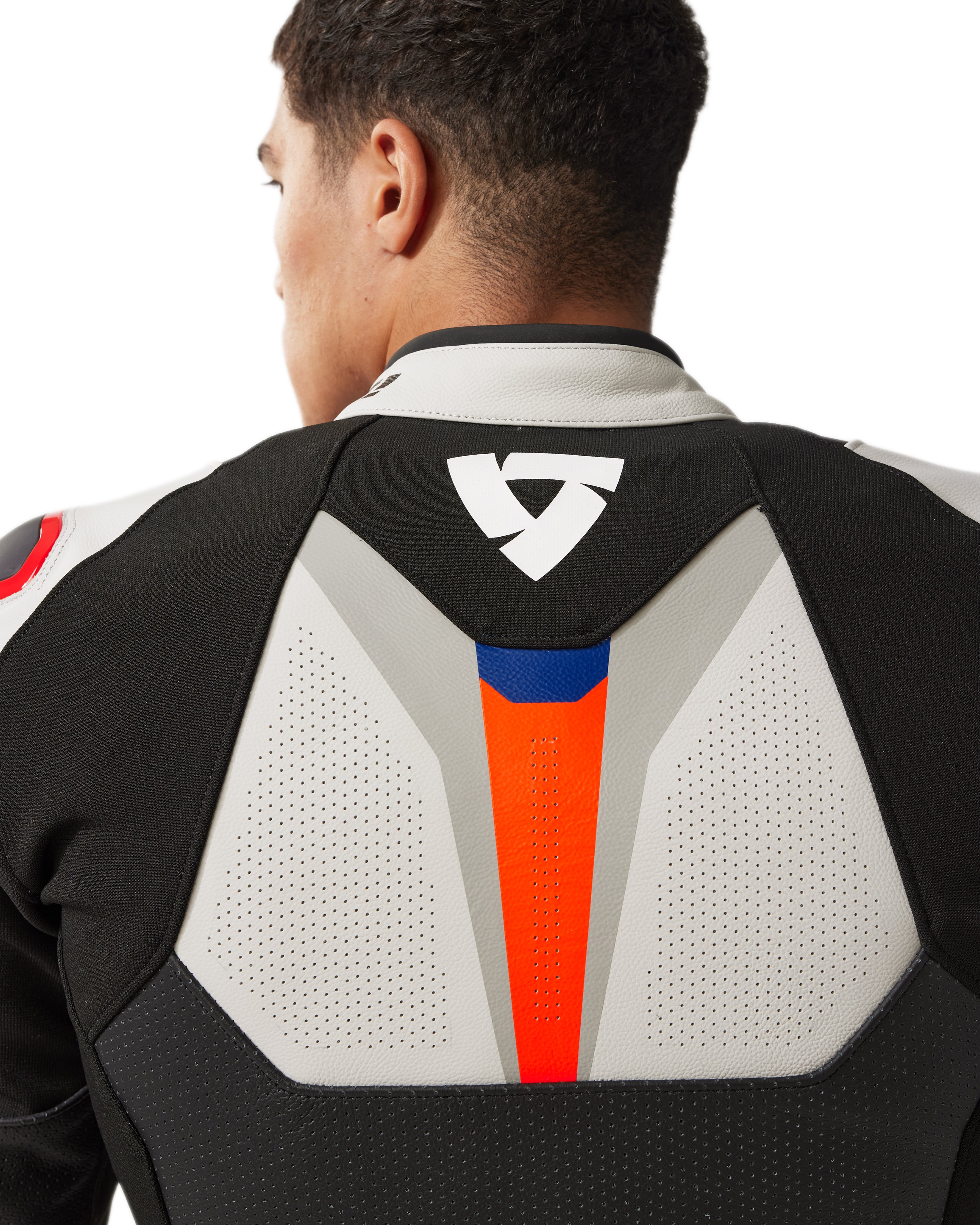 Geperforeerd leer aan de voorkant, de onderarmen en op de rug laat verkoelende rijwind binnen tijdens warmere ritten, terwijl de uitneembare thermische bodywarmer een ideale extra dosis comfort biedt voor koelere ochtenden of ritten later in het seizoen.