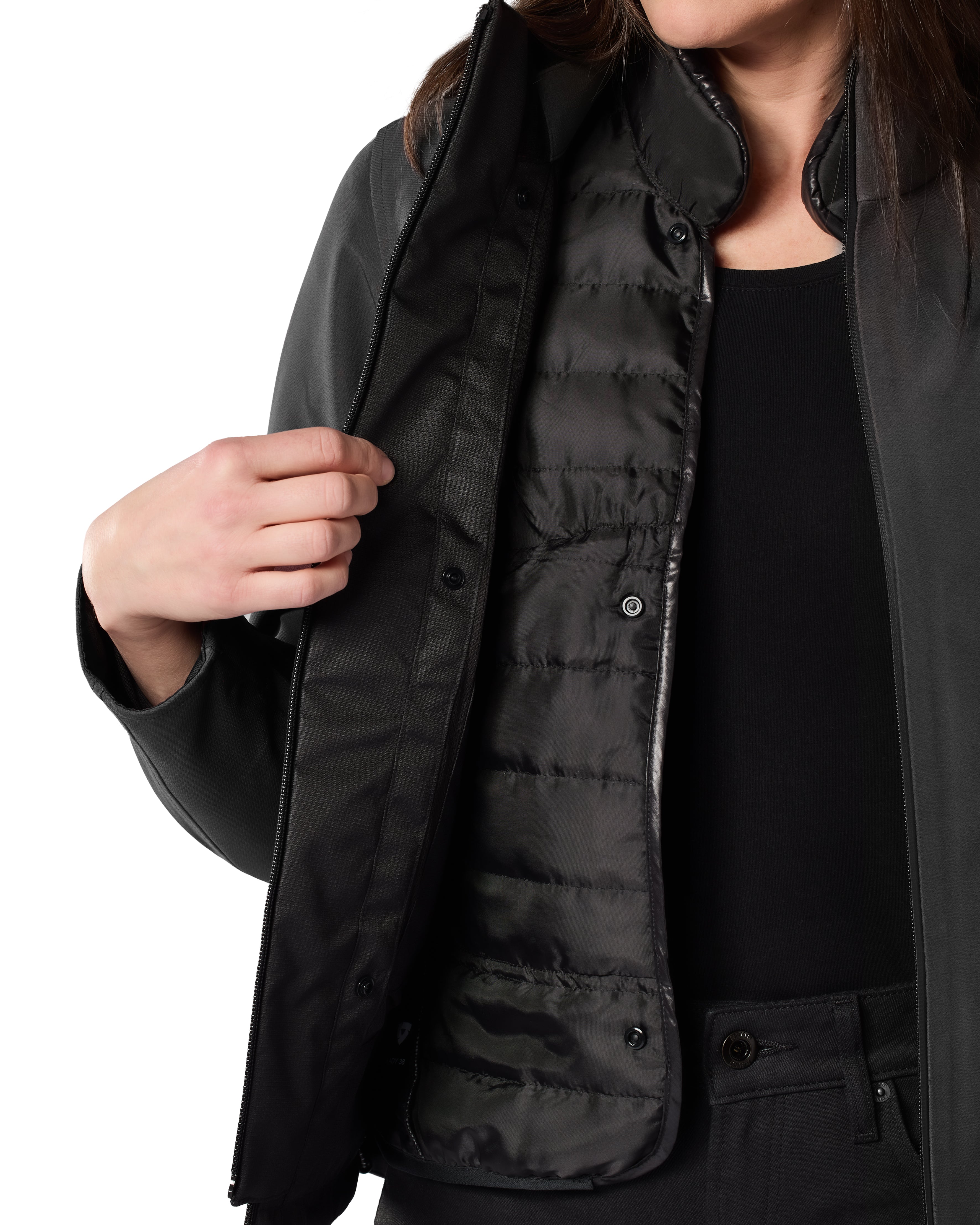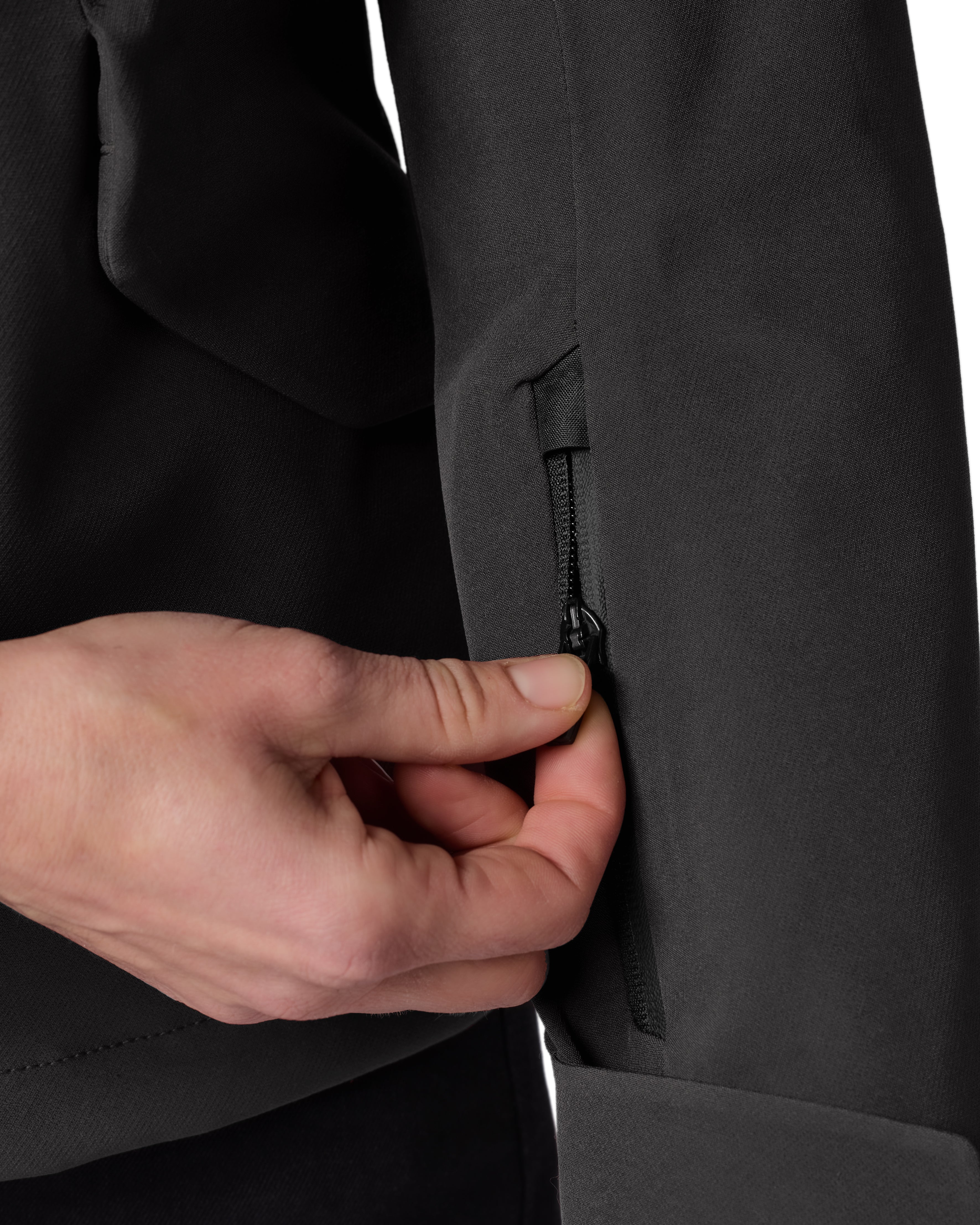 Houd je pasjes binnen handbereik dankzij een vakje met ritssluiting op de linkermouw, zodat je niet in je tas of rugzak hoeft te graaien om je bankpas tevoorschijn te halen. Je vindt ook twee grote waterdichte zakken in de taille, een binnenkraag met een zachte fleecevoering, een regenvanger achter de rits aan de voorkant en reflectie op de bovenrug om beter zichtbaar te zijn bij weinig licht.