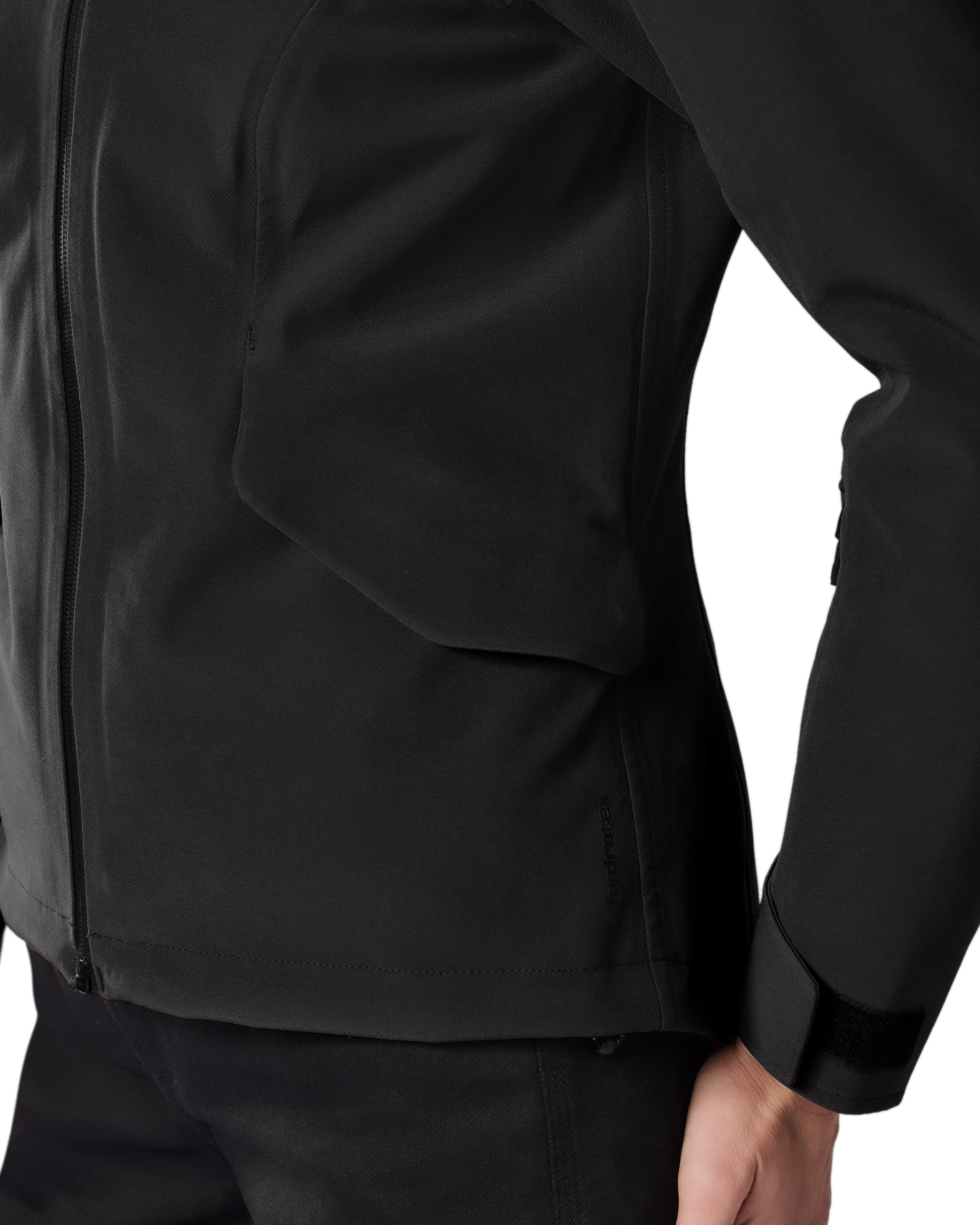 De rijke tinten van het neutrale kleurenpalet van de Rosier H2O Ladies weerspiegelen de subtiele maar toch uitgesproken aanwezigheid op de weg. Deze minimalistisch-chique maar toch luxe forenzenjas heeft een getailleerd silhouet dat net boven de heupen valt en zich mooi naar het lichaam vormt. Omdat we rekbaar materiaal hebben gebruikt (komen we zo op terug), konden we de pasvorm dichter bij het lichaam laten aansluiten, wat helpt om te voorkomen dat toch zich een weg naar binnen werkt.