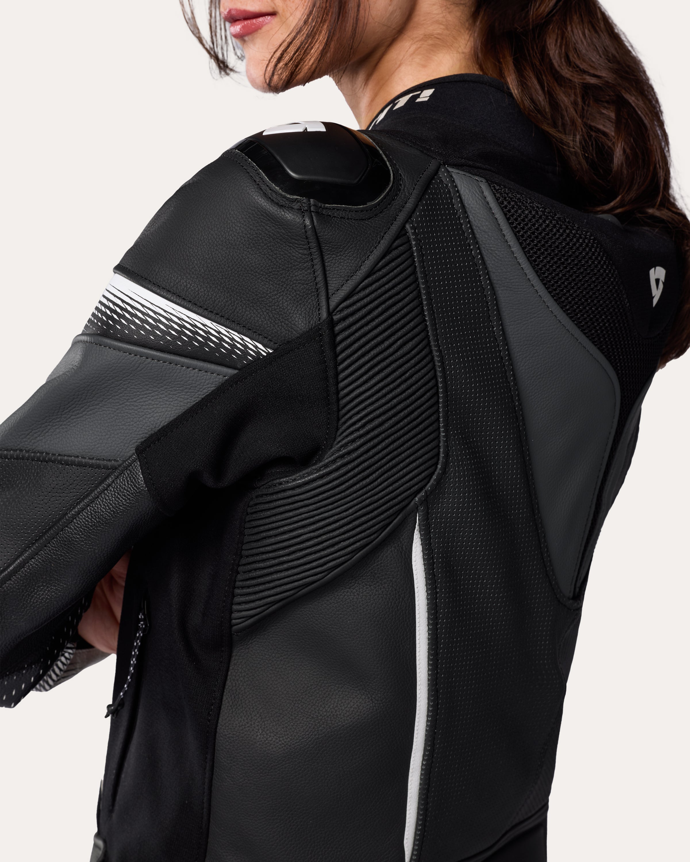Samen met de kennis van onze race- en maatwerkdivisie REV'IT! TAILORTECH hebben we gewerkt aan het perfectioneren van de pasvorm en deze te combineren met alle nieuwe beschikbare innovaties. Het resultaat is een jas in volledige racestijl met alle vergelijkbare toeters en bellen van de herenmodellen. Bovendien is het de eerste keer dat we een sportieve damesjas hebben ontwikkeld die te combineren is met het Tech-Air® airbagsysteem. Dit konden we doen door het toepassen van extra stretch panelen over de hele linie. Niettemin raden we bij airbaggebruik aan een maat groter te kiezen om ruimte te bieden aan een opgeblazen airbag. De pasvorm is dus nog vrouwvriendelijker, het comfortniveau verder uitgebouwd en de techniek op raceniveau standaard aanwezig.