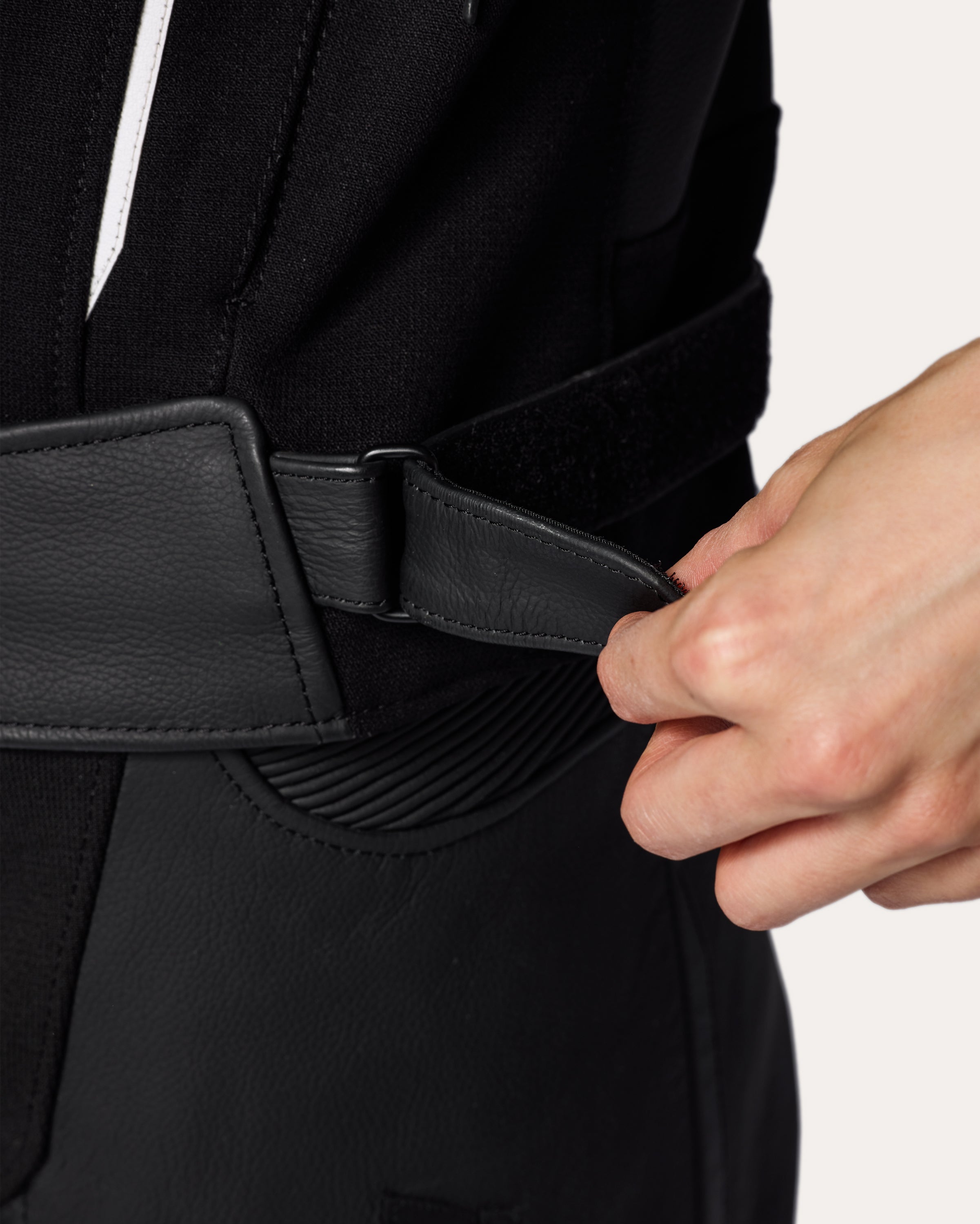 De lange verbindingsrits is de langere, veiligere keuze van onze twee verbindingsritsopties. Hiermee kun je het motorjas en de motorbroek als één geheel aan elkaar ritsen. Voor comfort en veiligheid.