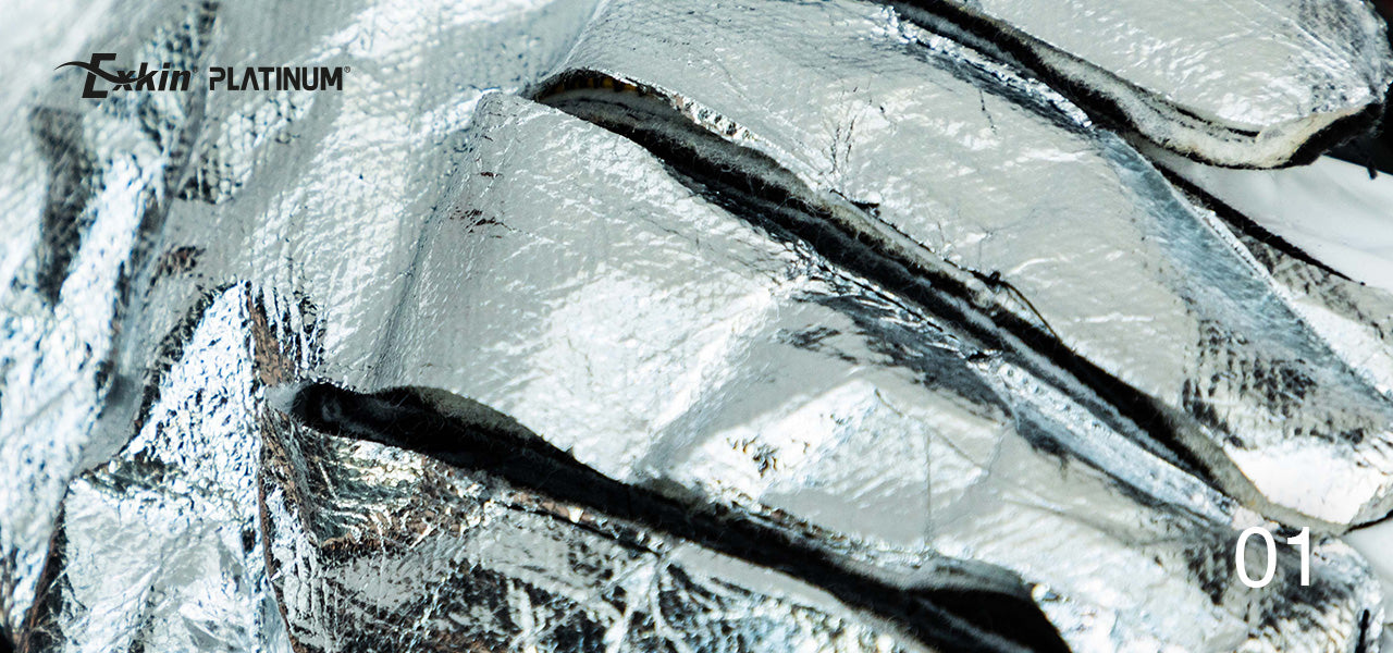 Exkin Platinum® is een extreem lichtgewicht, zachte, warme, ongeweven structuur uit meerdere lagen die stralingswarmte weerkaatst naar de handen van de gebruiker, zonder toevoeging van hinderlijk gewicht.