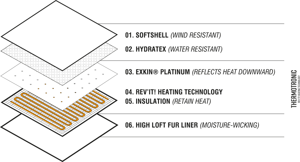A waterproof layer is laminated onto a carrier to construct the REV’IT! hydratex|Z-liner membrane. The carrier, in turn, protects the membrane against wear-and-tear damage, and the seams of the membrane are taped to ensure waterproofing. The Z- liner is constructed between the lining and the outer shell. The REV’IT! hydratex|Z-liner membrane is used in garments that demand a high level of all-weather protection.