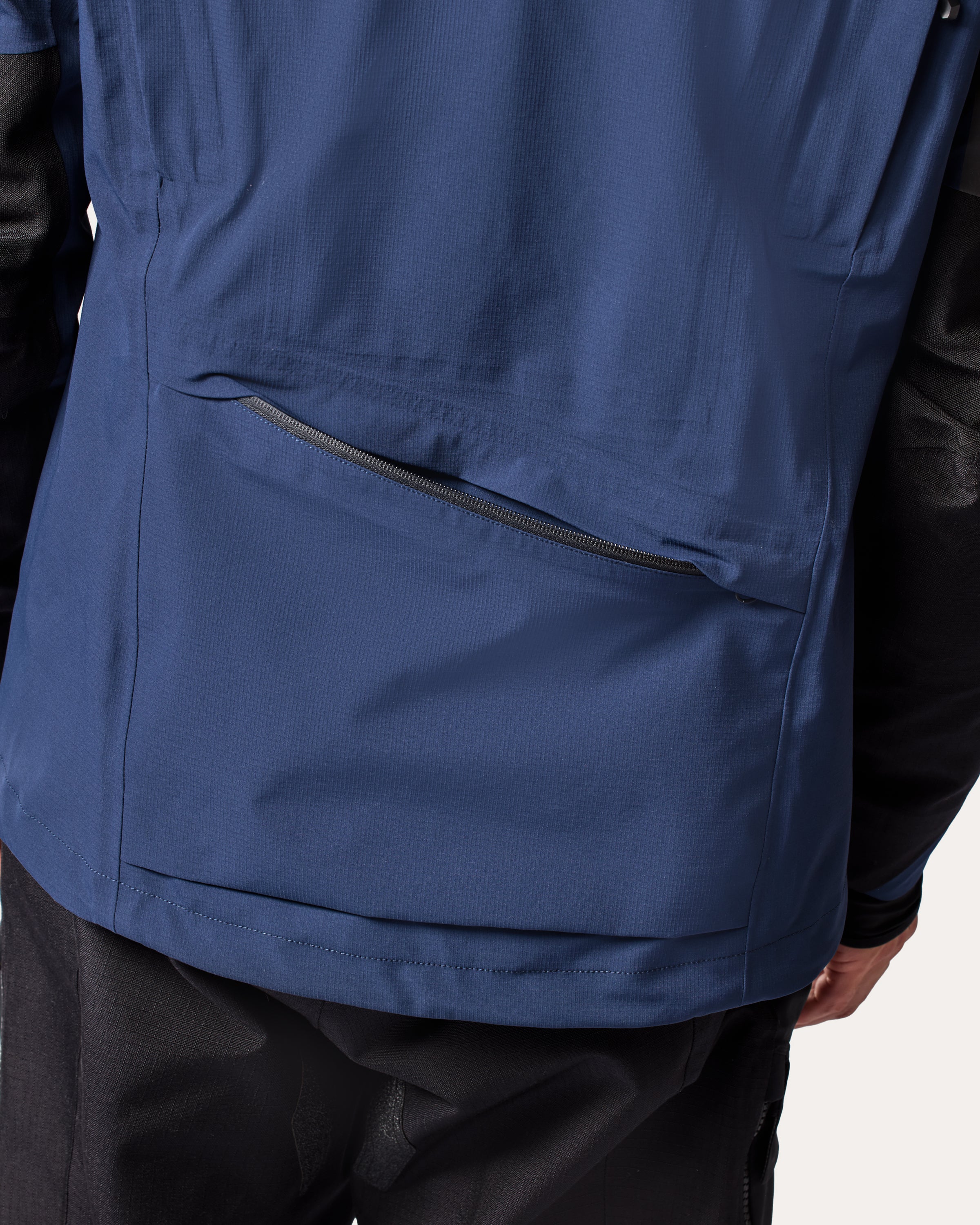 A slit pocket at the lower back allows for easily accessible storage of personals where it doesn't interfere with the rider.