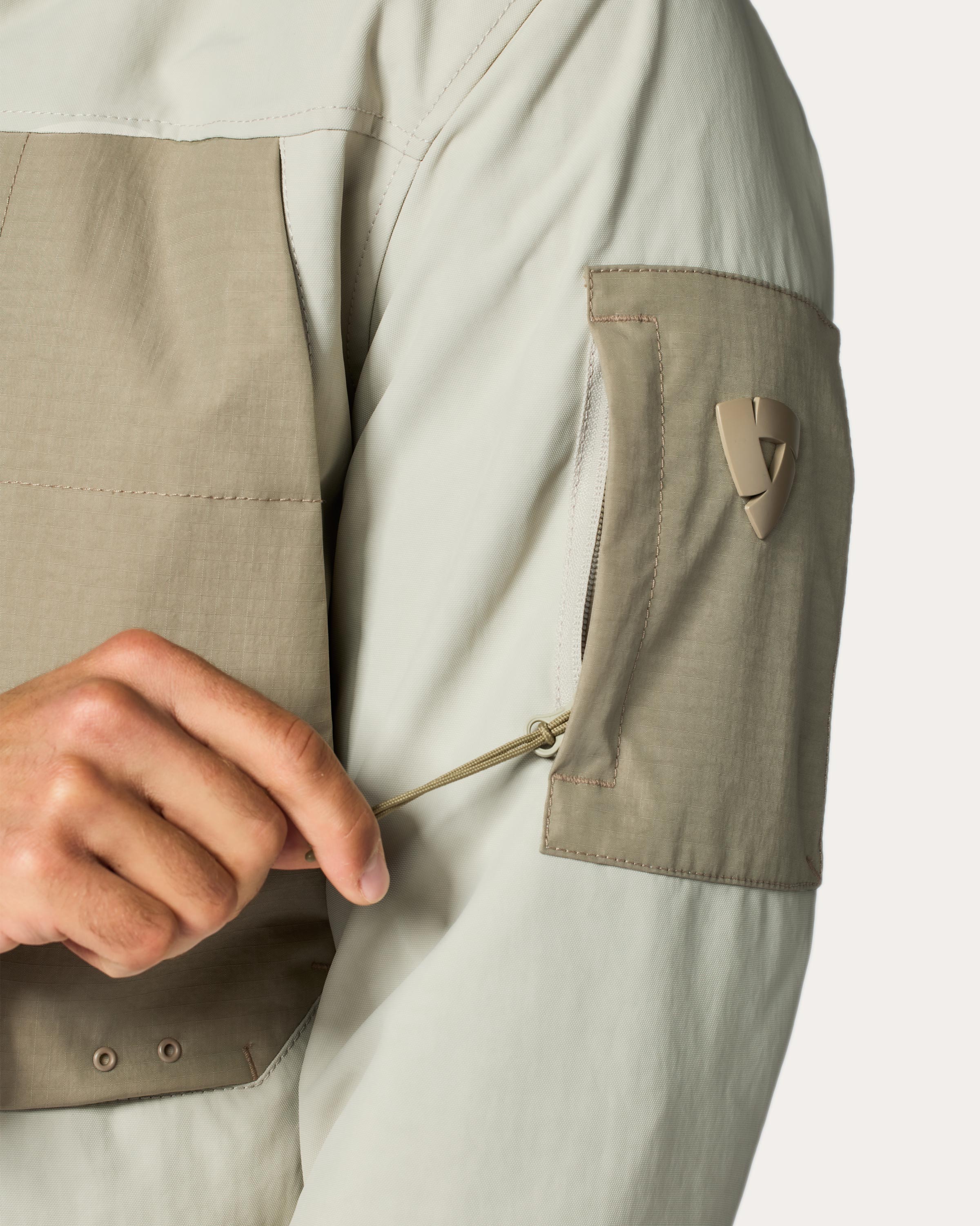 Additional storage includes a bicep-mounted pocket and a waterproof inner pocket, ensuring that the Danforth H2O is as fashion-forward as it is functional - ready to accompany you on any ride. Even off the bike, it never feels out of place, thanks in part to an adjustable hood with a snap button to keep it secure when you're back on two wheels. And to ensure confidence in every ride, the Danforth H2O comes equipped with comfortably thin CE-level 1 SEESMART impact protection at the shoulders and elbows, with the option to upgrade to a CE-level 2 SEESOFT back protector.