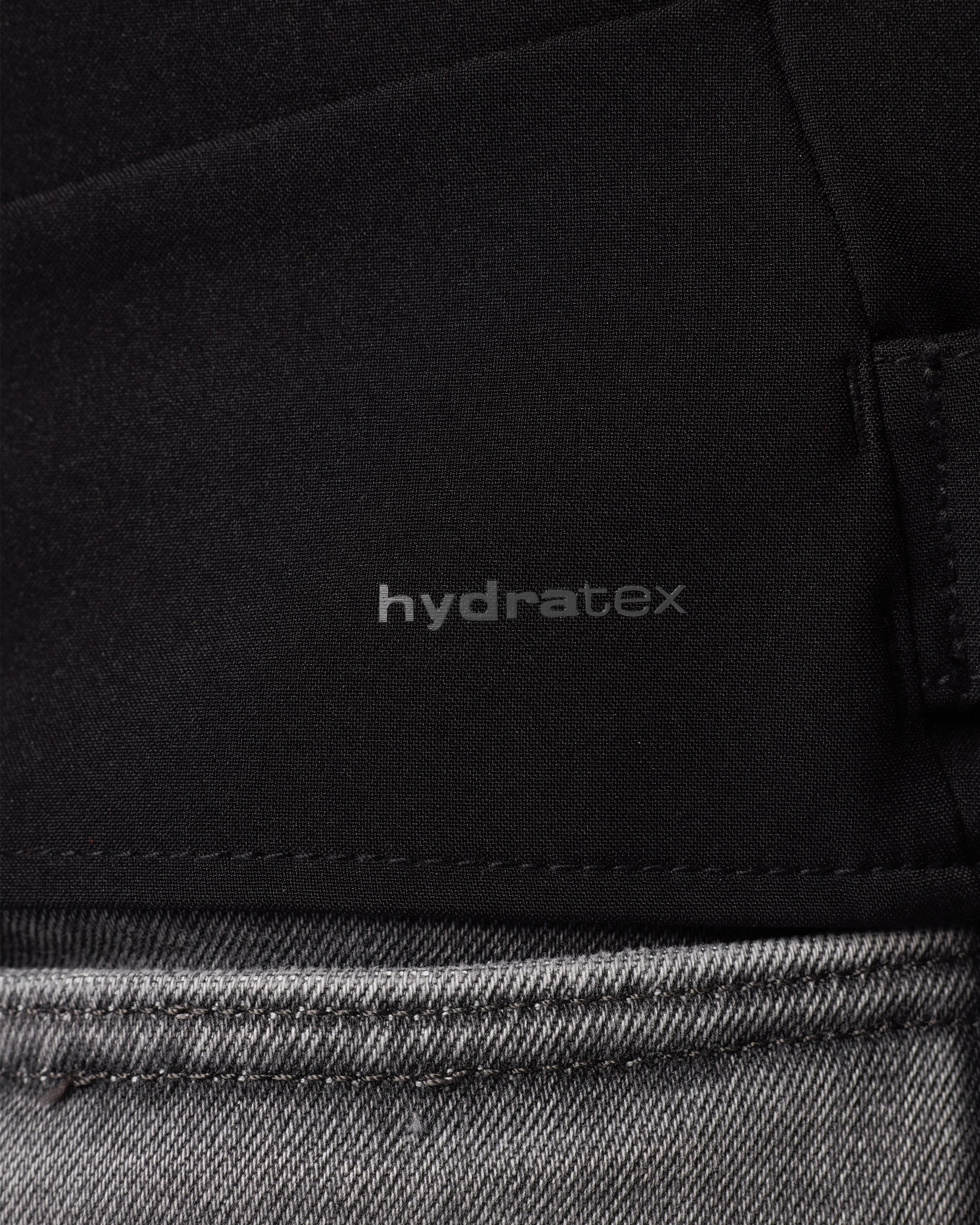 The 100% waterproof hydratex|G-liner coating is applied to the mesh inner lining of the garment. The seams are sealed for maximum waterproofness. This makes the wearing comfort optimal, while the functional properties of the G-liner construction are preserved.