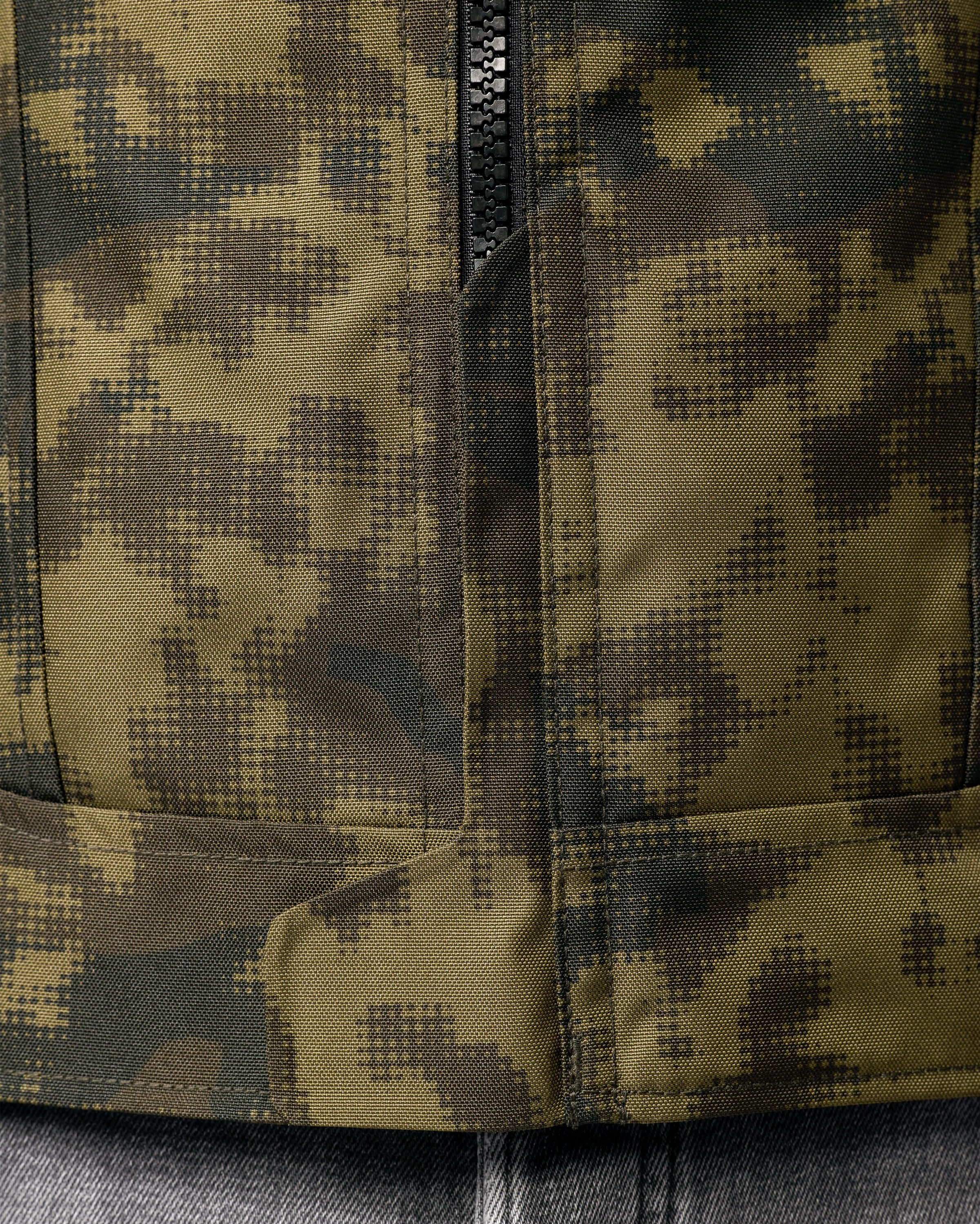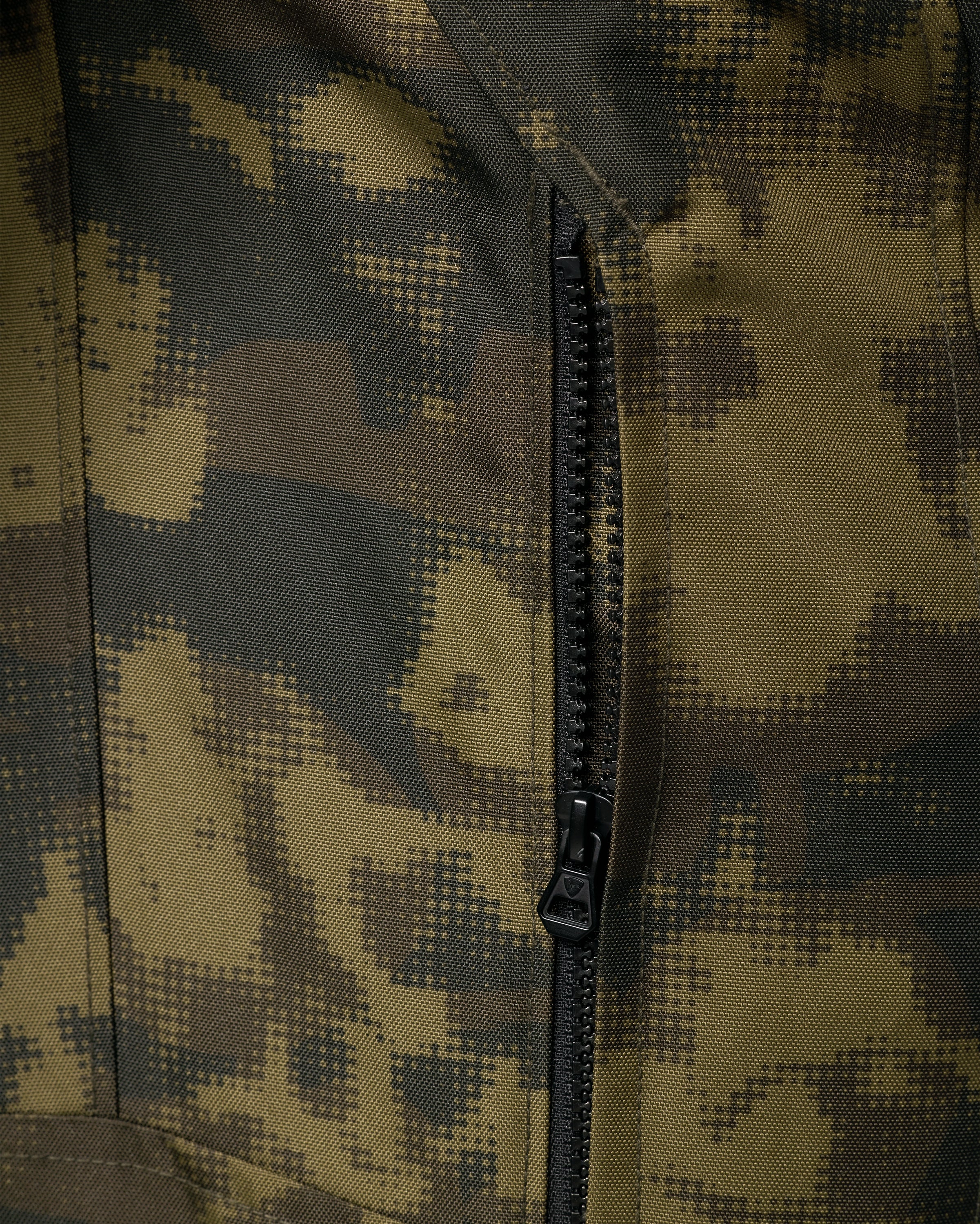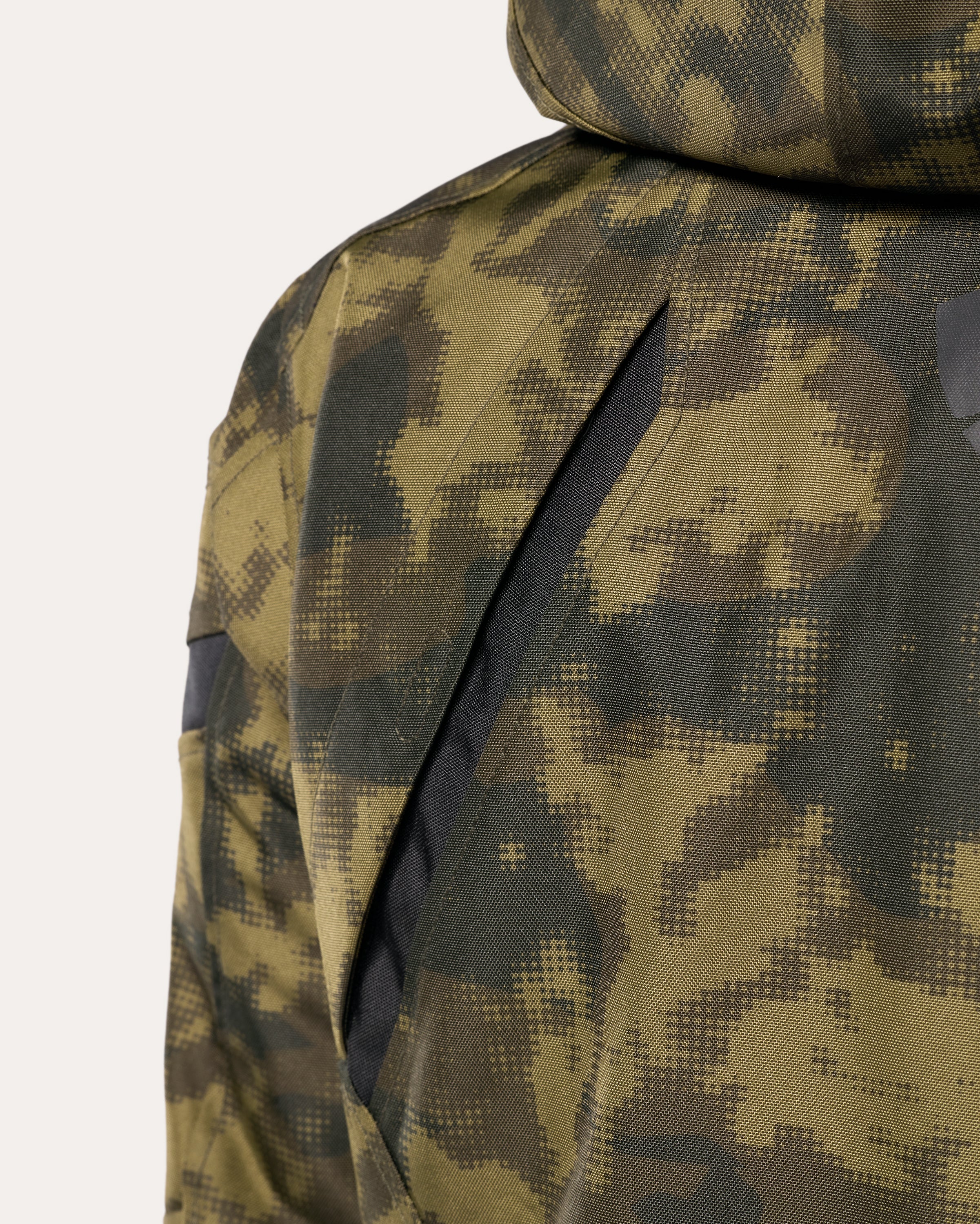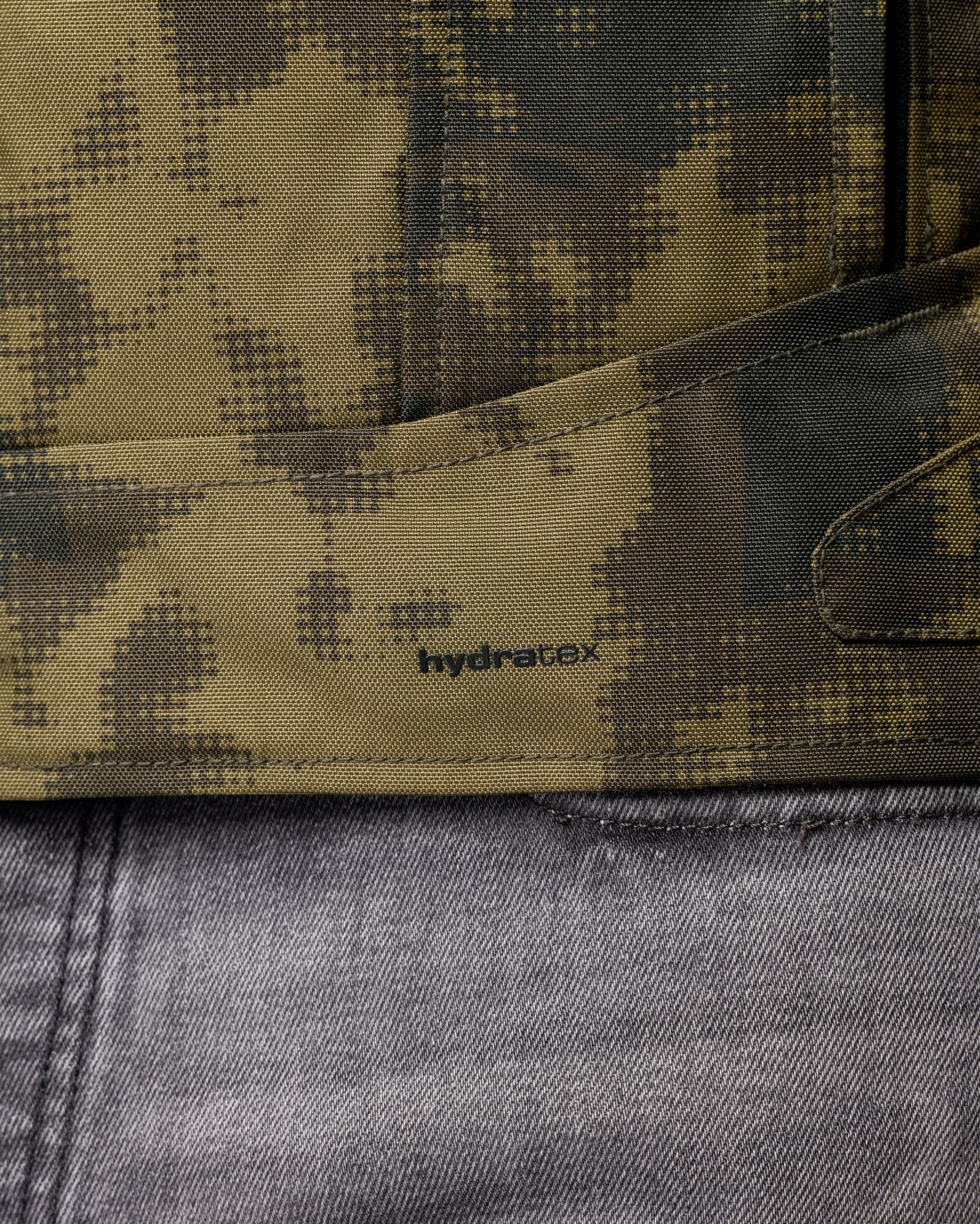 Look at the lines of the Flare 3 H2O jacket. Now take a closer look. Hidden in plain sight amongst the backdrop of a modernized camo print, we’ve cleverly worked coated ventilation zippers into the design lines from the collarbone along the chest. The adjustment tab along the upper arm also follows the flow of the seams for a more tailored look. Hook-and-loop adjustments at the writs and waist make sure you get the perfect fit every time.