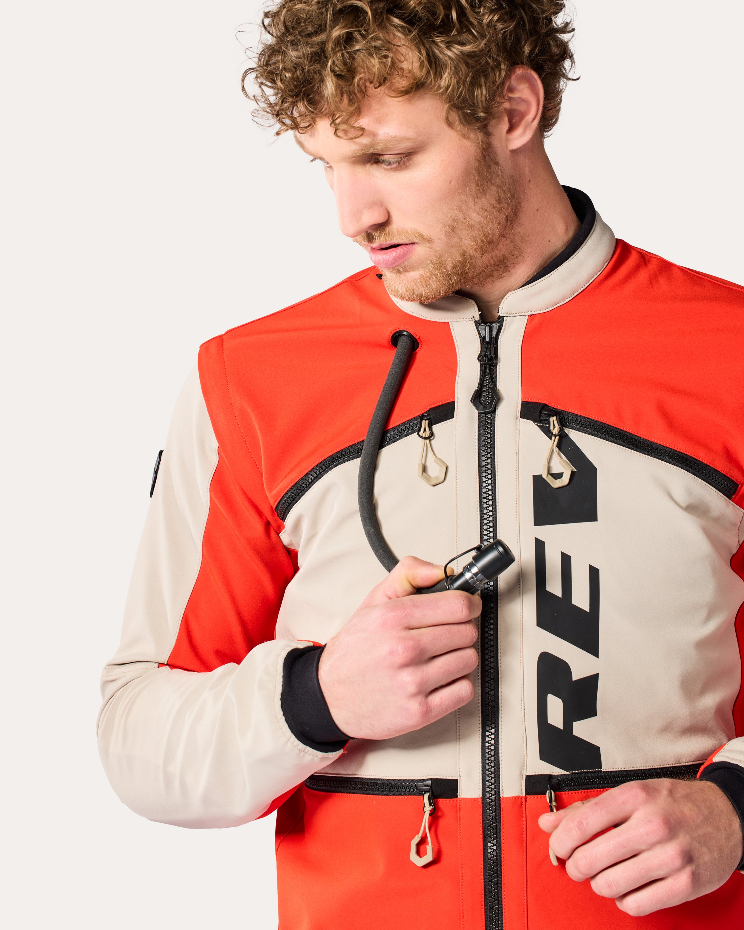 Under this garment you can wear our REV'IT! Avertum Tech-Air® Airbag - or a Tech5 airbag - if you purchase the garment one size bigger than your usual size. If you wish to wear a garment that is marked as ""Ready for Avertum Tech-Air® airbag system"", you must be sure that the garment can accommodate the expansion of the airbag and therefore we recommend following below fit equation: 1. Measure chest circumference and divide the measurement by two; 2. Measure garment flat on chest line; 3. If the difference between point 1 and point 2 is 12 centimeters or bigger the garment is suitable to wear on top of the airbag. Note: Please keep in mind that the garment should be purchased in the correct size in order for the shoulder and elbow protection to fit properly and best protect you in case of a crash. In order to create space for the expansion of the airbag, you can remove all separate layers (thermal liners, water proof liners) that can restrict the expansion of the airbag in the event of a crash. Remove the separate back protector in your garment, if any, when wearing the airbag (a back protector is included in the airbag) and adjust all adjustment straps on body to the widest position.