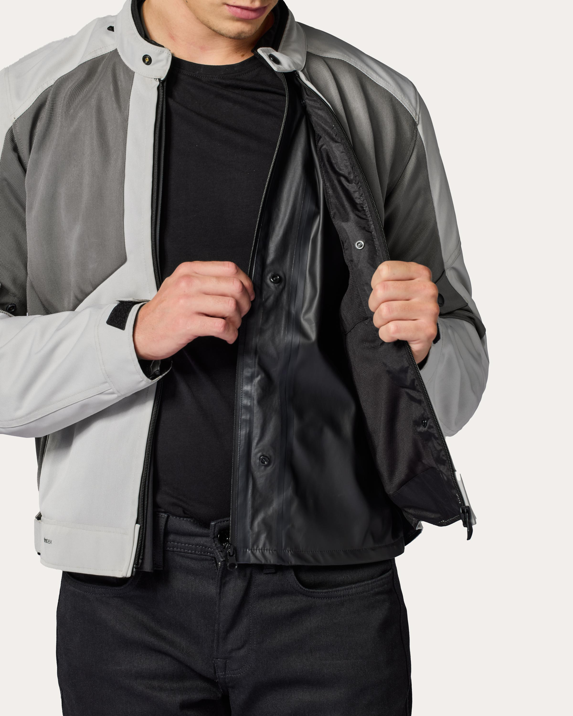 Waterproof hydratex|G-liner coating is applied to the inside of the garment’s inner lining, and the seams are taped to ensure that the garment is waterproof. The REV’IT! hydratex|G-liner coating is used in the construction of products that demand a basic level of all-weather protection. For most products, the G-liner can not be removed. But now we made the G-liner detachable, and in some cases we add a mesh lining, to prevent the material from sticking to your skin. This maximizes comfort, while preserving the properties of the G-liner construction.