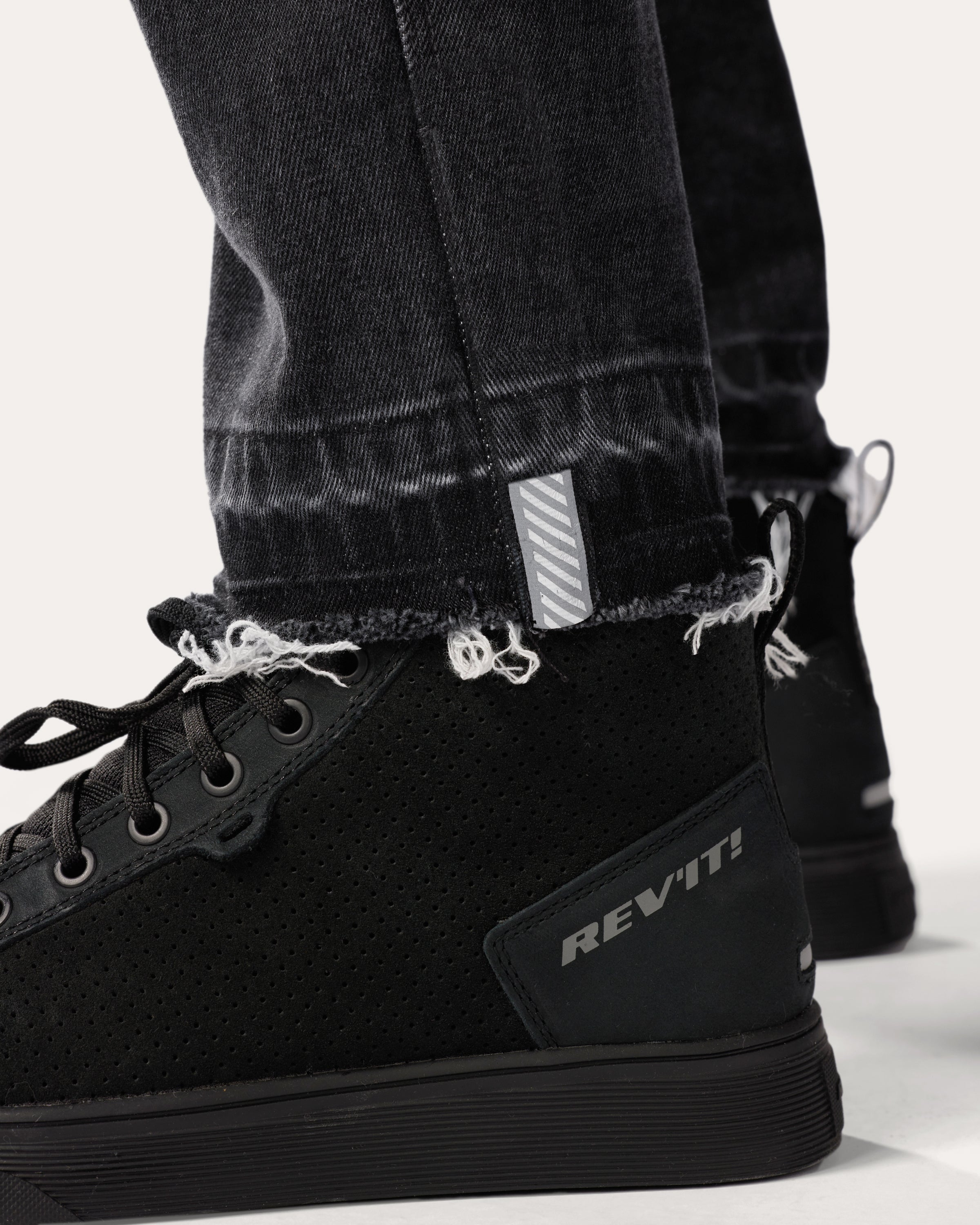 Building upon the popularity and momentum of our already established men’s Moto jeans, we bring you the Moto 2 Slim Ladies. Sleek and sophisticated riding denim. The Moto 2 Slim Ladies are characterized by a slim fit style, higher waist, and a 5-pocket construction—complete with slanted front pockets instead of the traditional curved pocket intake, and a depth-creating print on the coin and back pockets. The “destroyed” finish at the hem also ups the ante in terms of uniqueness. Furthermore, around back, a block-print pattern is added to the 2-part rear pockets and coin pocket.