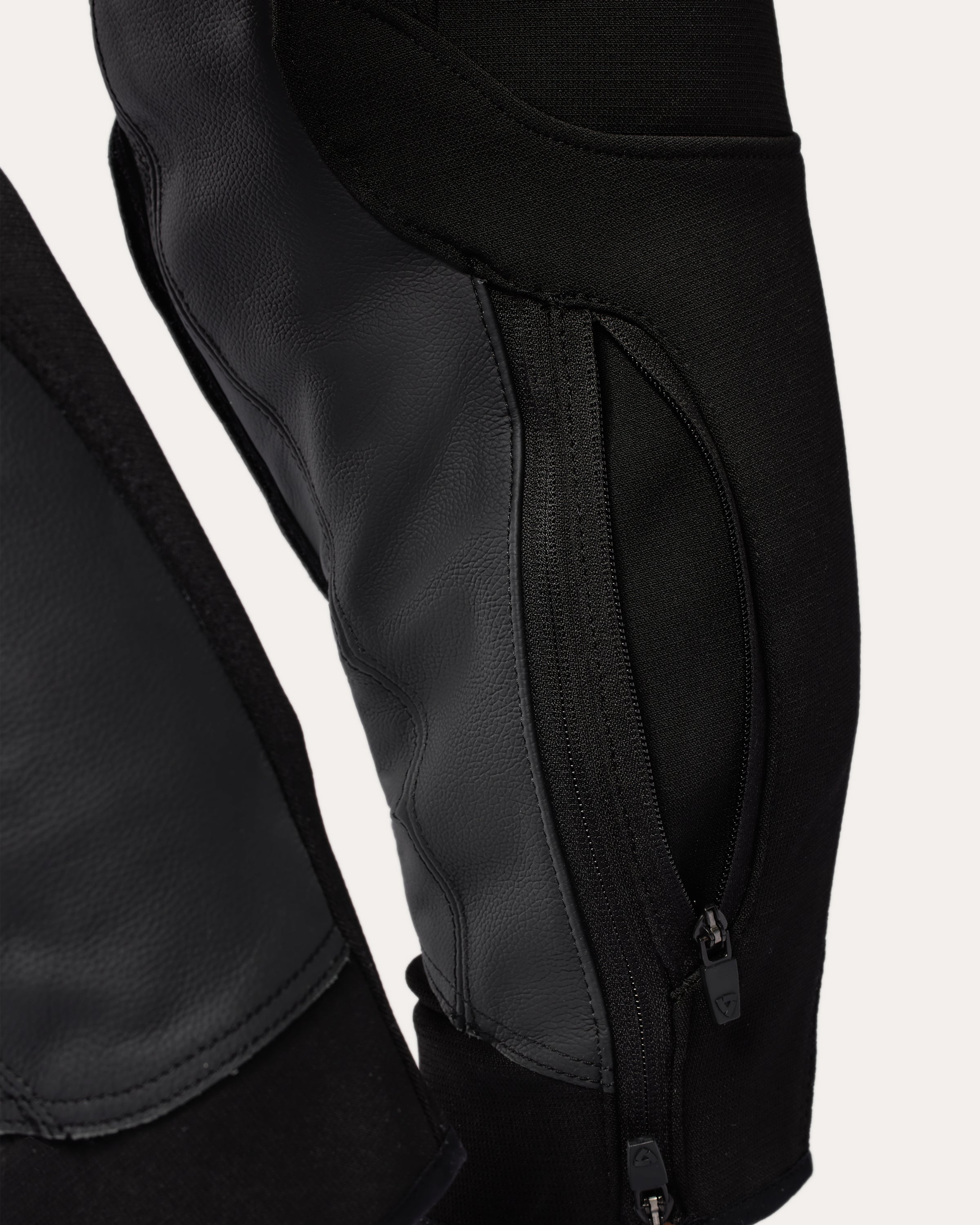The stitching in motorcycle garments contributes greatly to the abrasion resistance of the total gear. This is why REV'IT! uses safety seams on garment areas at increased risk of impact. Safety seams have a visible as well as an invisible seam. This construction keeps the material of the outer shell together, even when the visible seam is thorn.