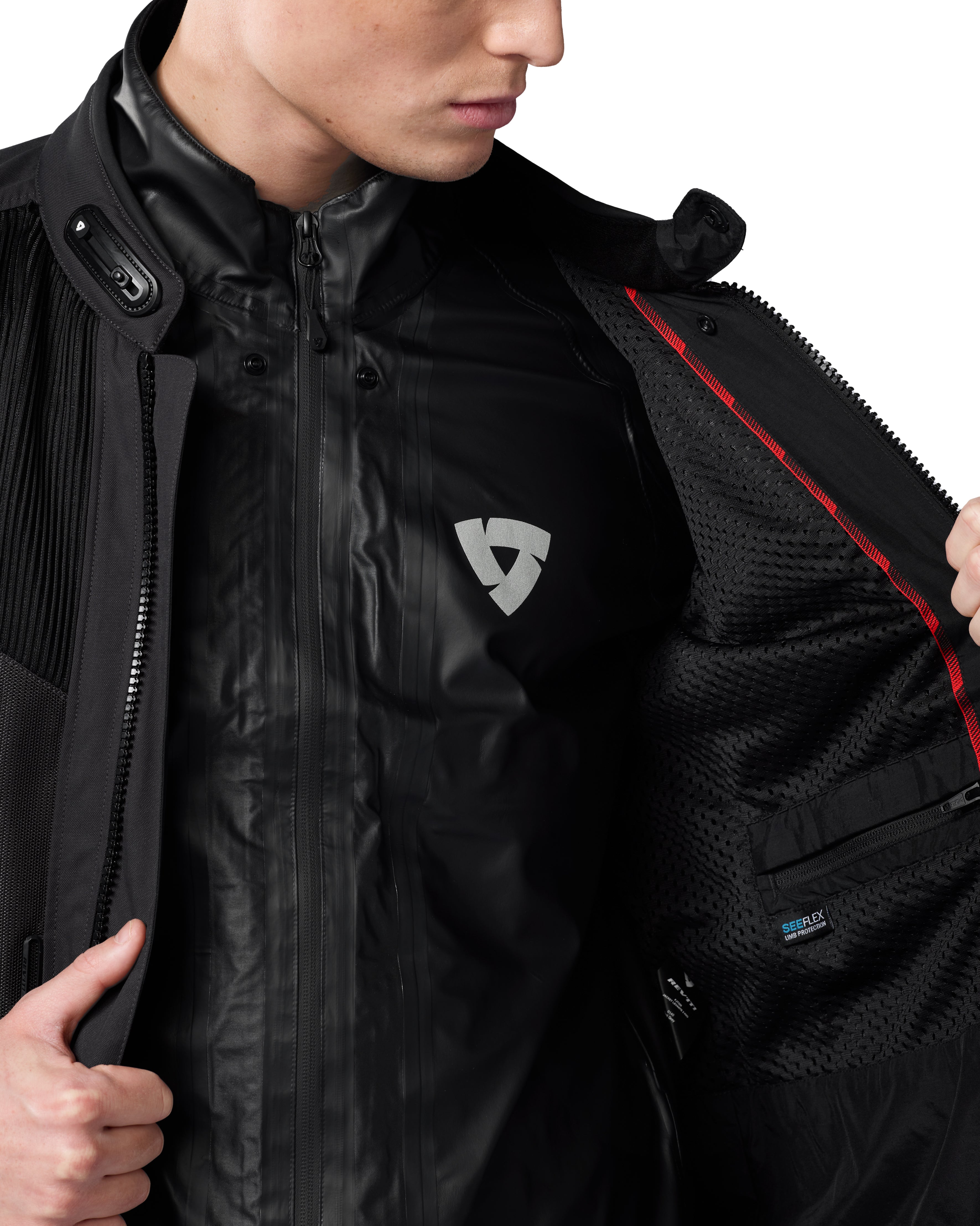 The protector pocket in this REV'IT! garment is tailor-made to accommodate the Divided Chest Protector SEESOFT CE-level 1 - an easy upgrade to maximize safety.