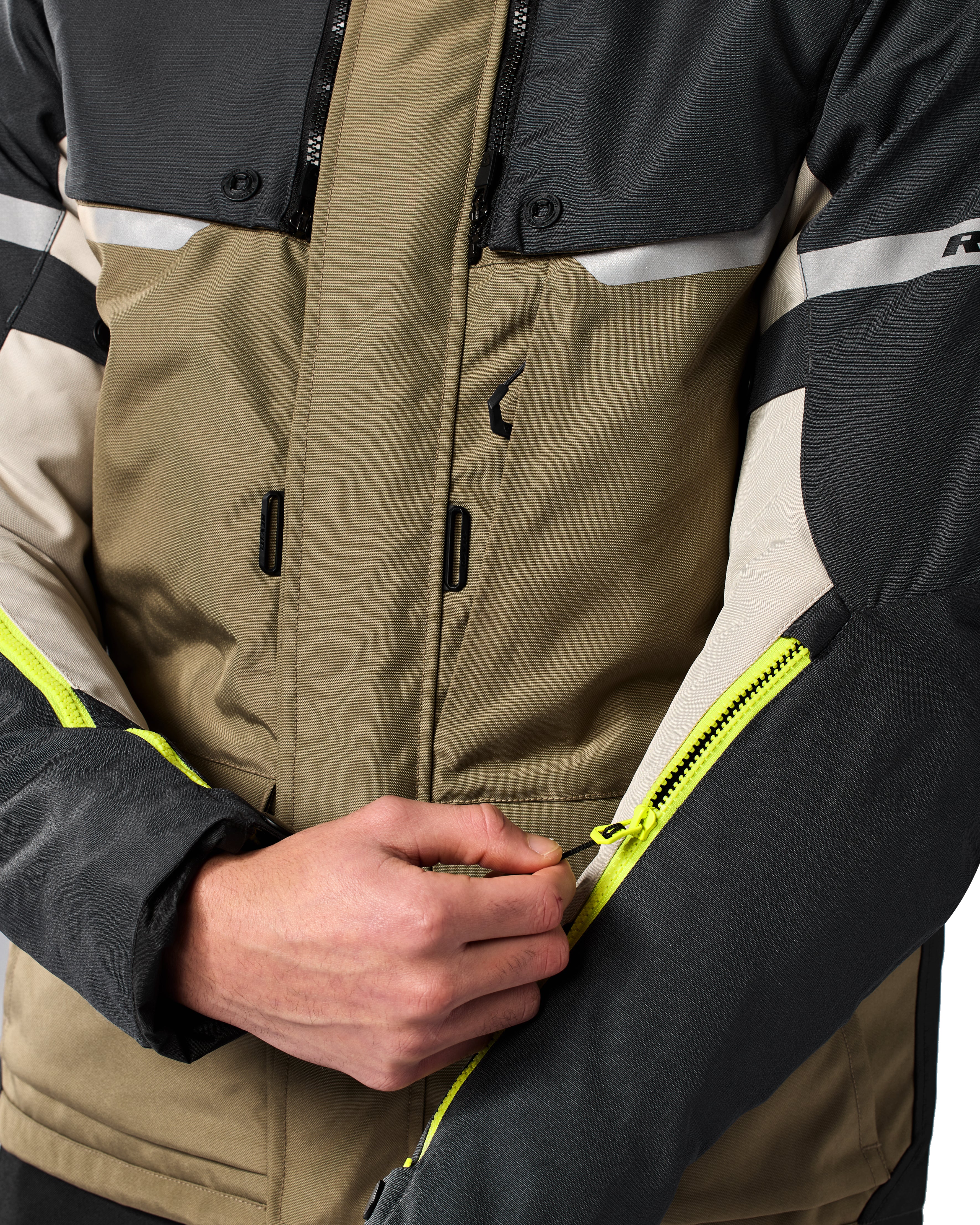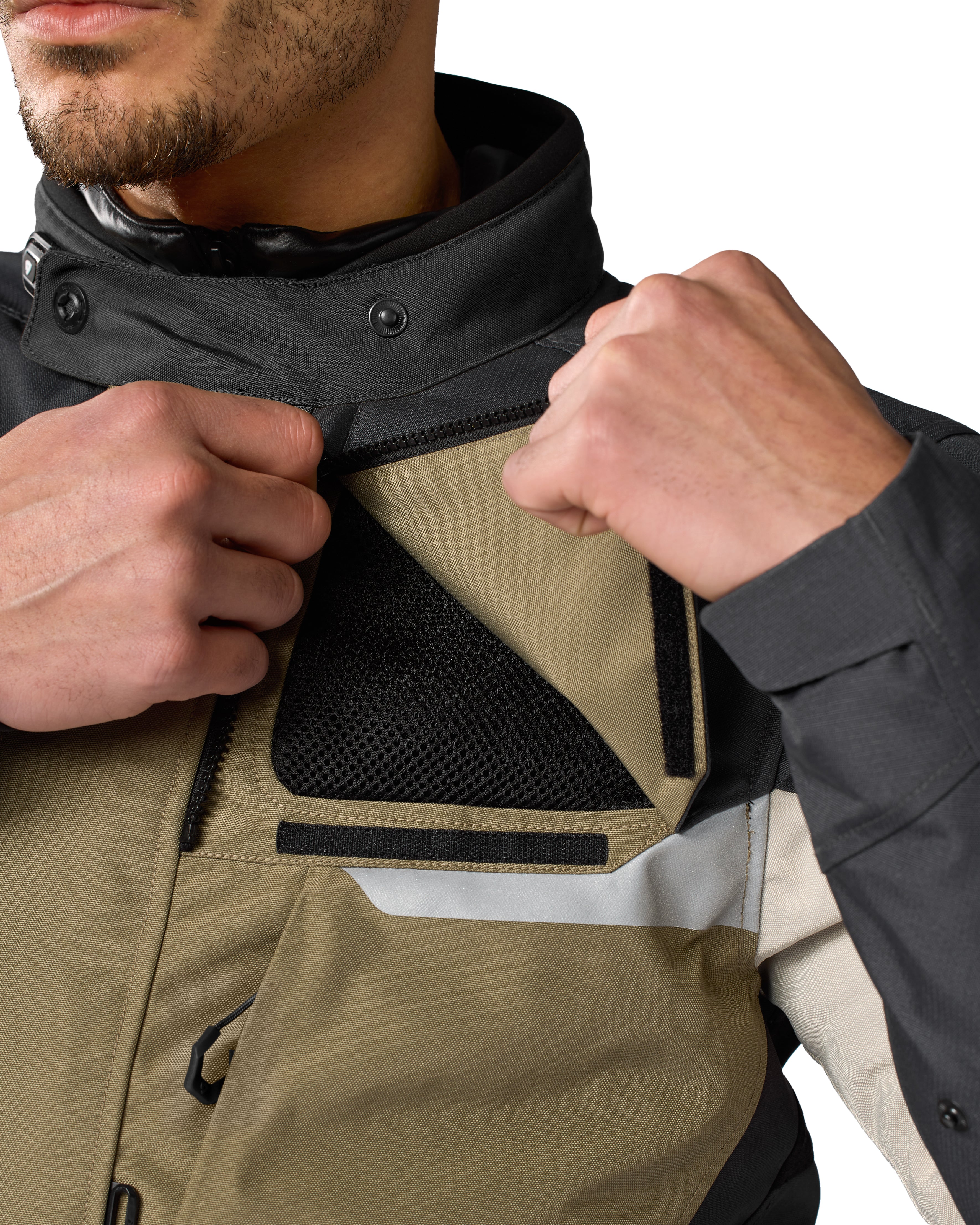 The REV’IT! flexisnap makes it possible to adjust the collar circumference easily and personalize its fit to each rider. A jacket is often worn in more then one season, and the flexisnap makes it possible to adjust the collar within seconds. During winter a wider collar circumference accommodates combining the jacket with a balaclava or wind collar, while during summer, a wider circumference lets an all-important cooling wind into the collar.