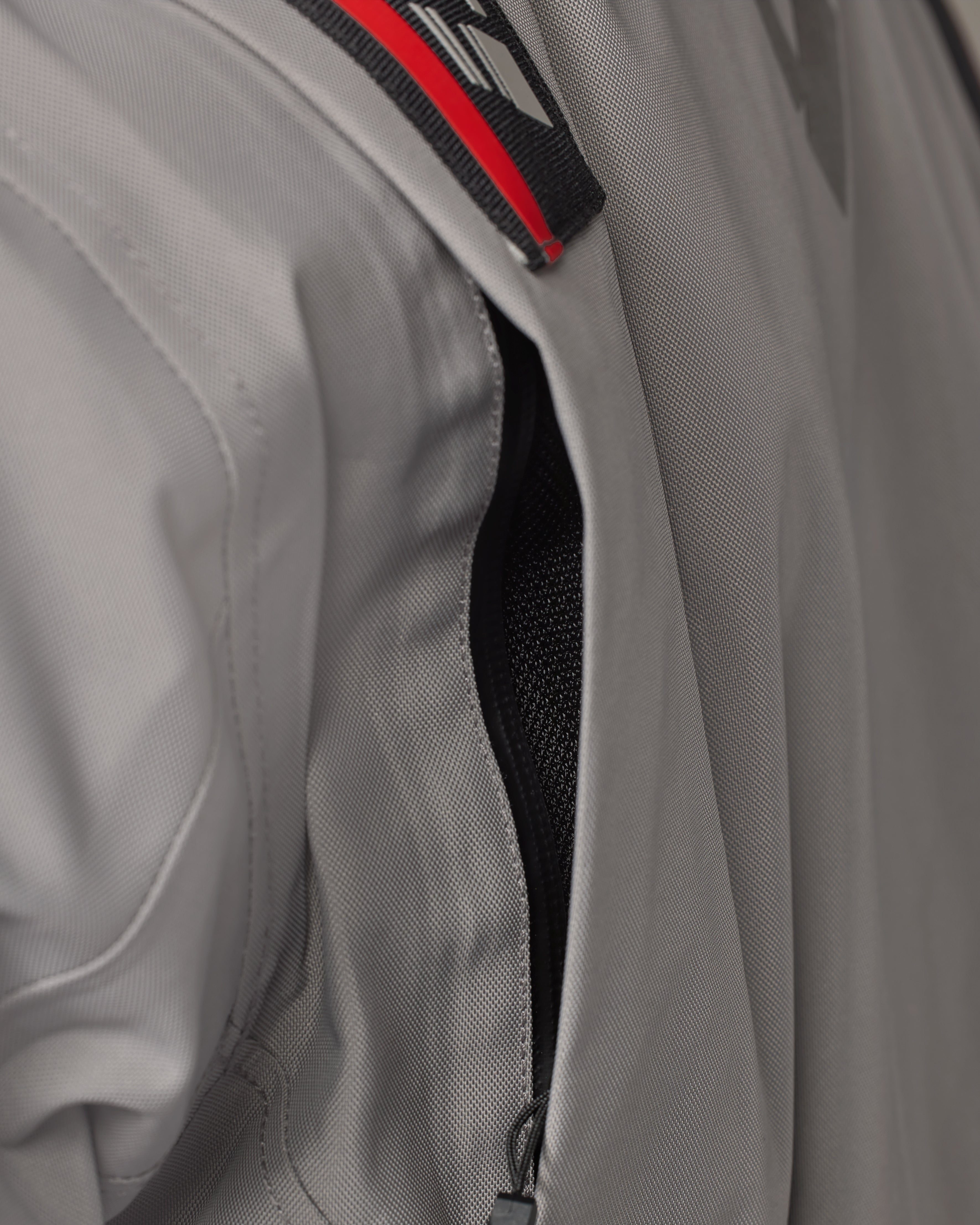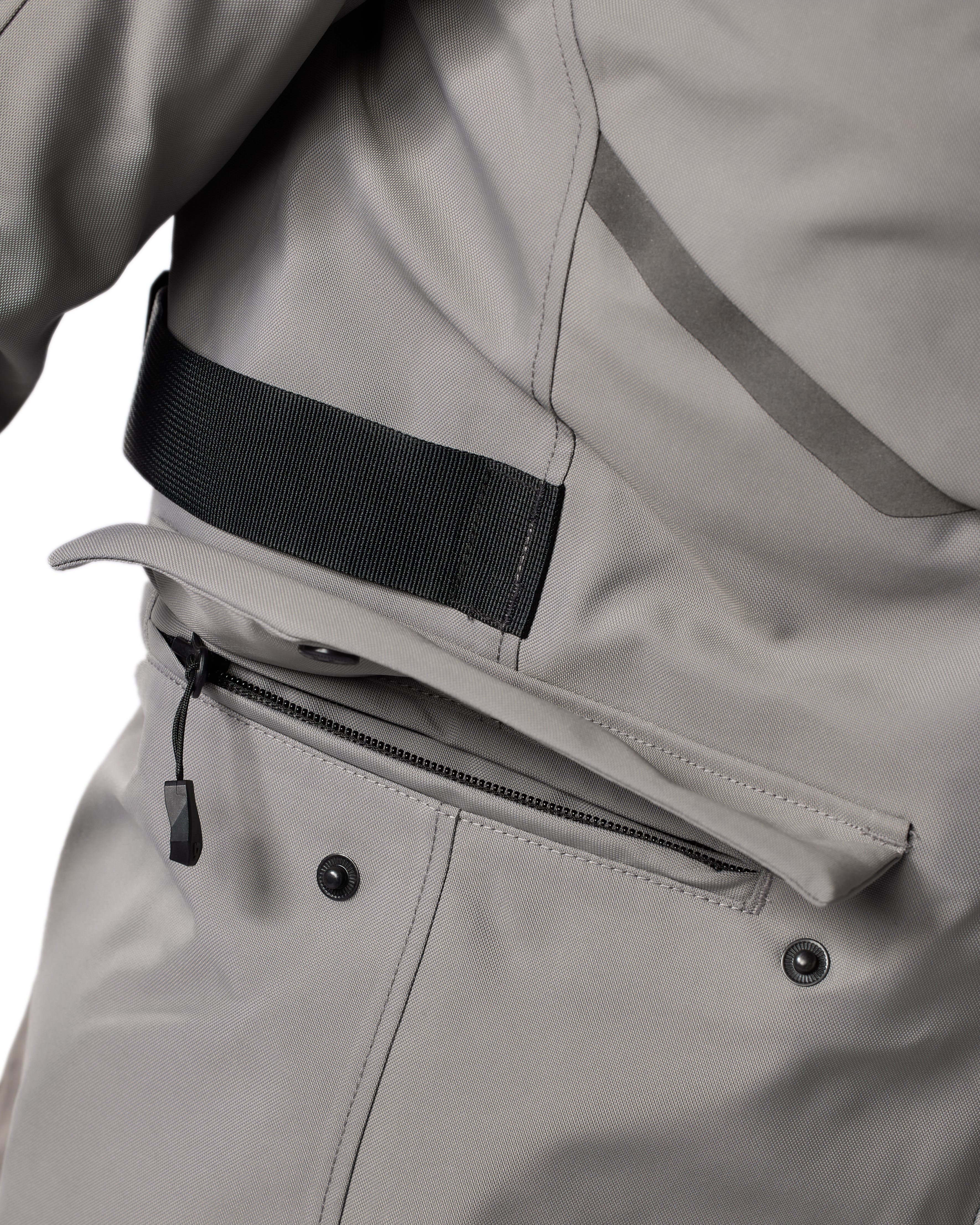 On hotter days, on-demand airflow is provided by our patented VCS|Aquadefence ventilation system with magnetic Fidlock® closure. This system makes it very easy to regulate the flow of air to your upper body. Combined with the air vents around back, the air flows through the motorcycle jacket and will help keep your upper body cool. The highest level of protection is provided by SEEFLEX CE-level 2 armor at the elbows and shoulders, and the motorcycle jacket is also prepared for the SEESOFT CE-level 2 back protector along with our SEESOFT CE-level 1 divided chest protectors. Next to the two waterproof front pockets, we enhanced the carrying capacity of the motorcycle jacket by adding a waterproof slit pocket to the back and a waterproof lower-left sleeve pocket for easy access to payment cards or toll tickets without taking your gloves off.