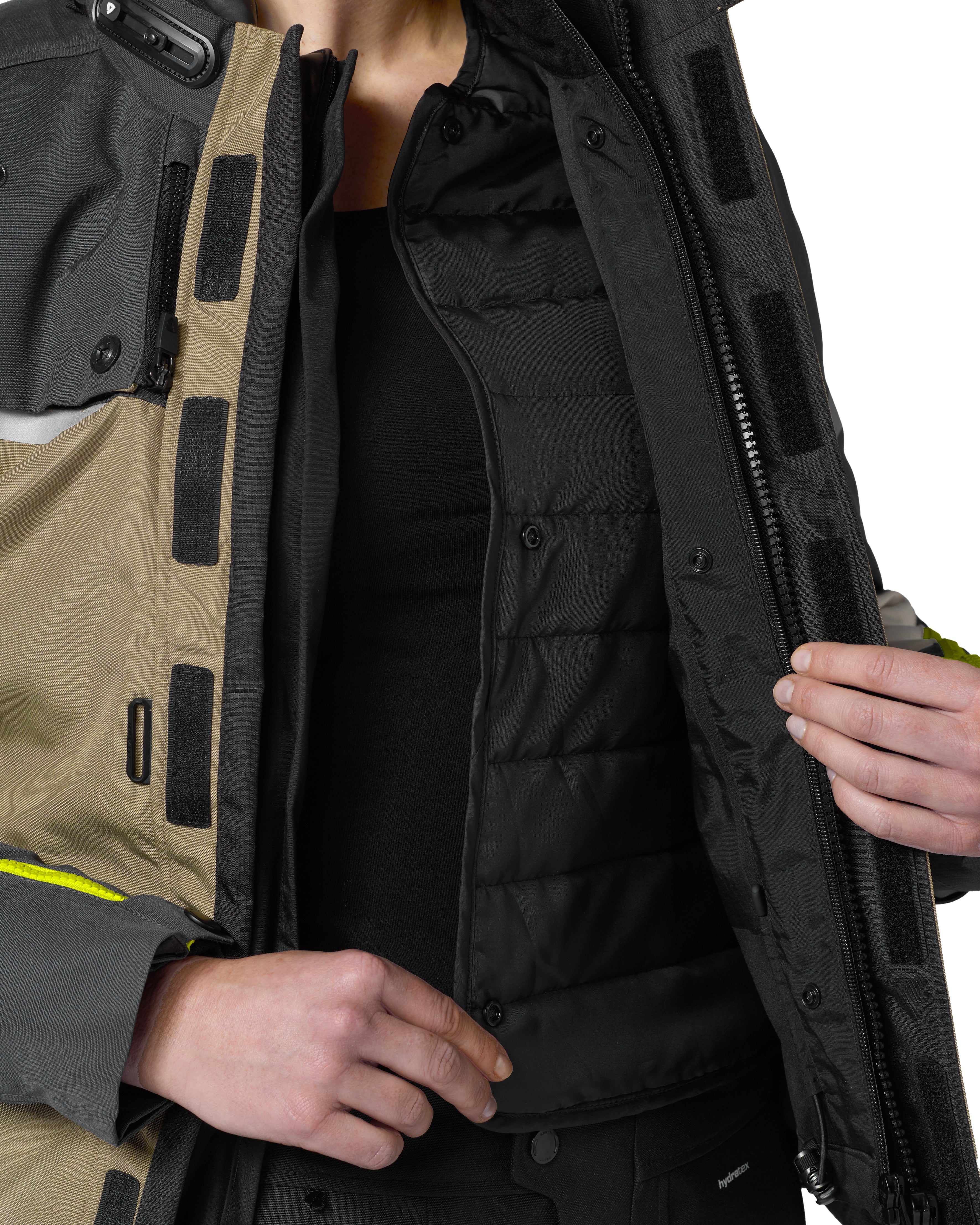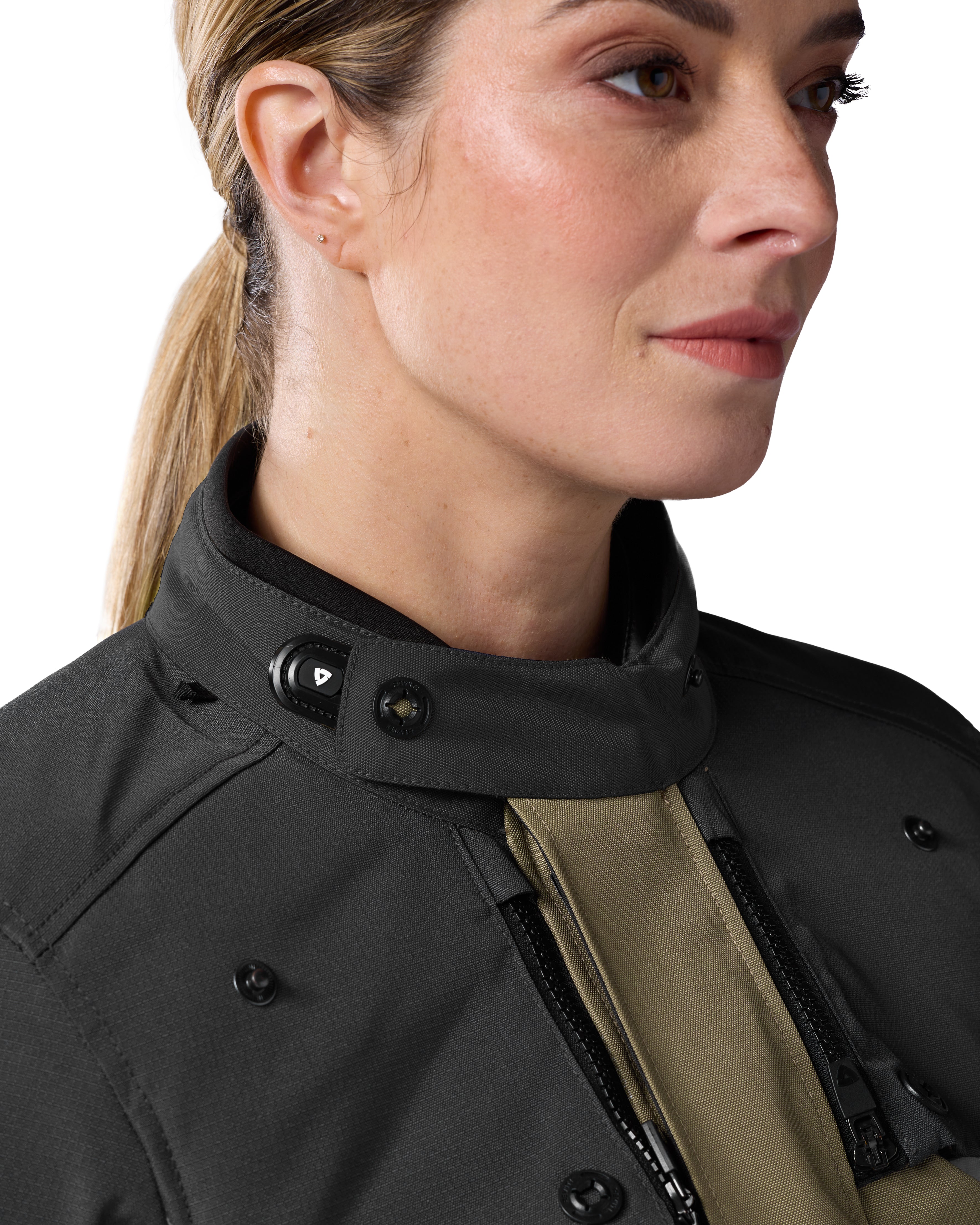 The REV’IT! flexisnap makes it possible to adjust the collar circumference easily and personalize its fit to each rider. A jacket is often worn in more then one season, and the flexisnap makes it possible to adjust the collar within seconds. During winter a wider collar circumference accommodates combining the jacket with a balaclava or wind collar, while during summer, a wider circumference lets an all-important cooling wind into the collar.